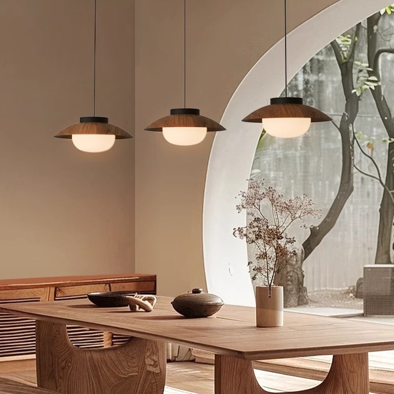 중간 고대 스타일의 레스토랑 교수형 램프, 조용한 바람 호두 나무 곡물 식탁 바 램프 led 복고풍 홈스테이 찻집 작은 샹들리에