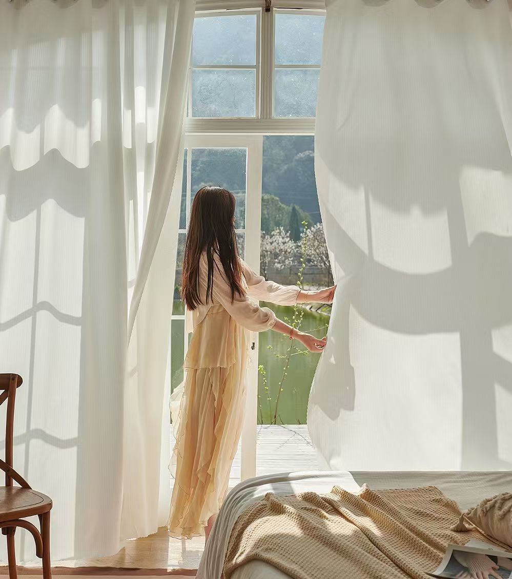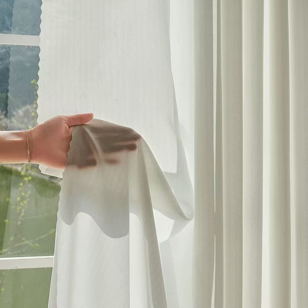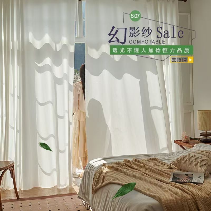 절강 소흥 Keqiao 커튼 팬텀 원사 스크래치 방지 광 전송 불가 거실 발코니 화이트 원사 커튼 간단한 북유럽스토어 가기