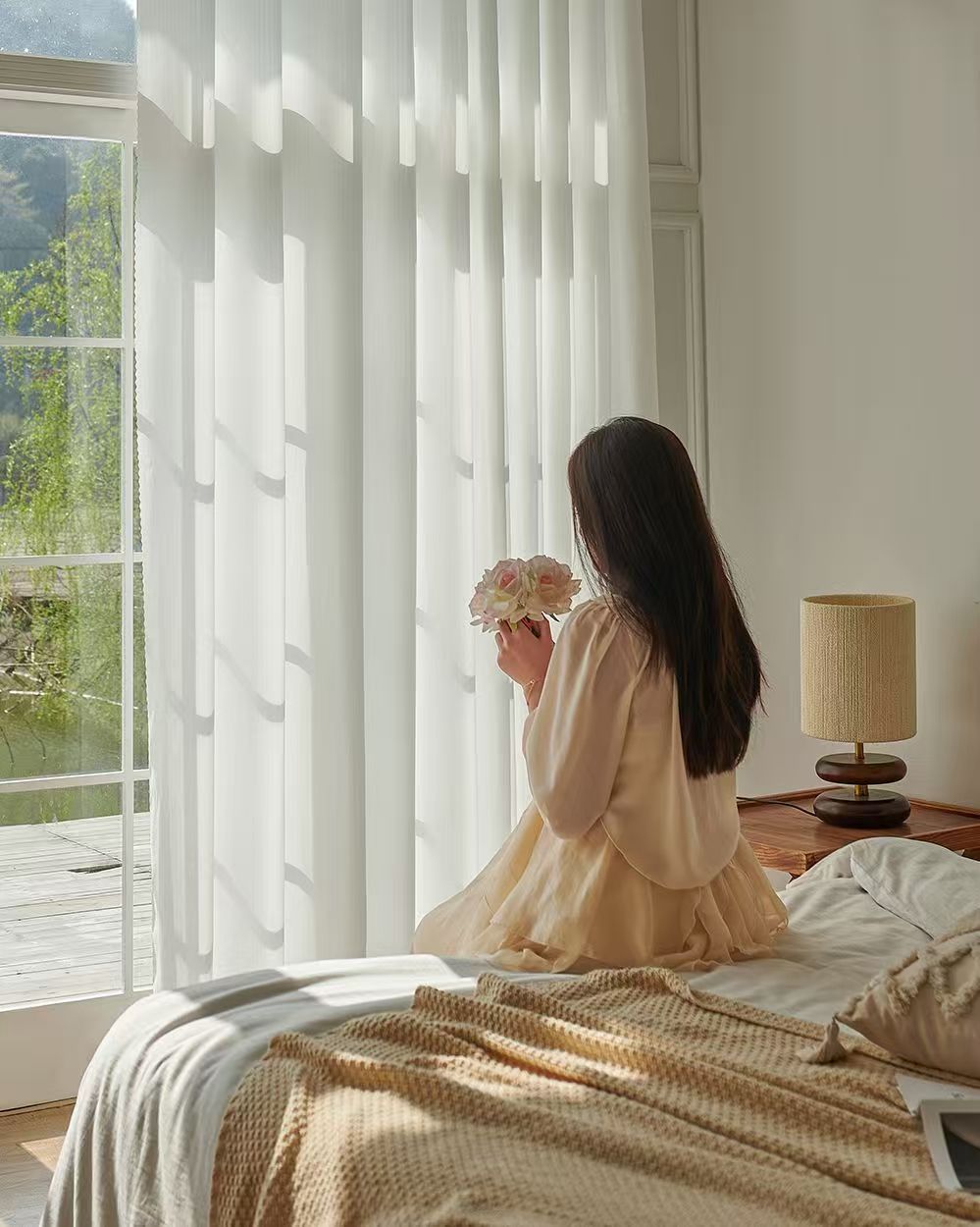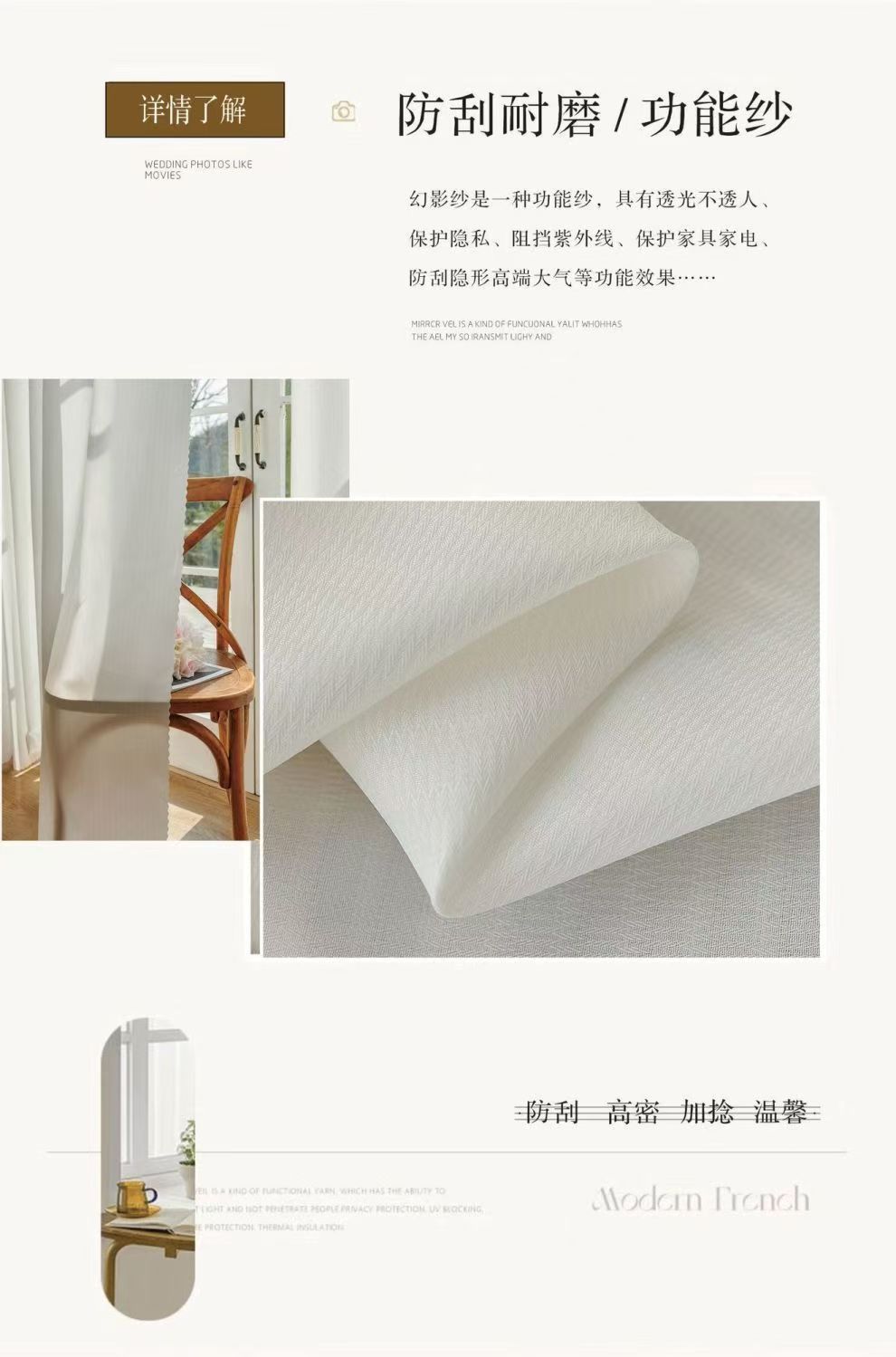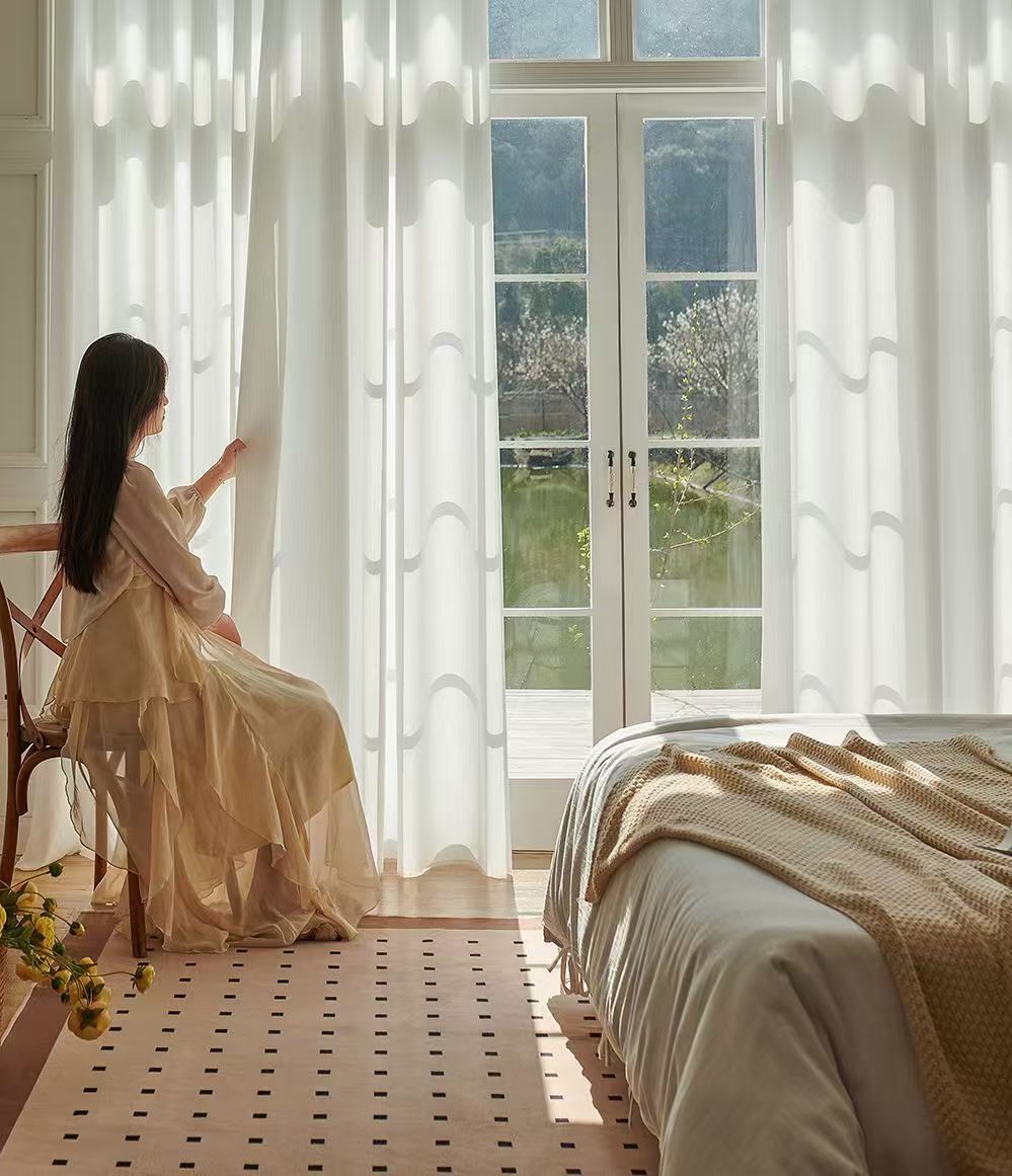 절강 소흥 Keqiao 커튼 팬텀 원사 스크래치 방지 광 전송 불가 거실 발코니 화이트 원사 커튼 간단한 북유럽스토어 가기