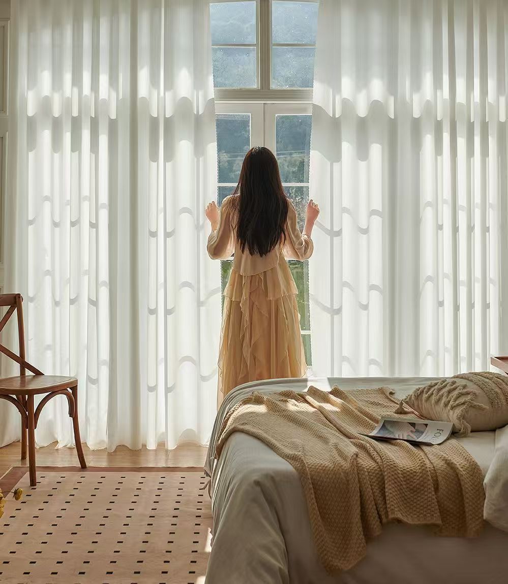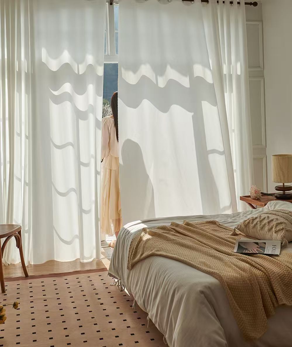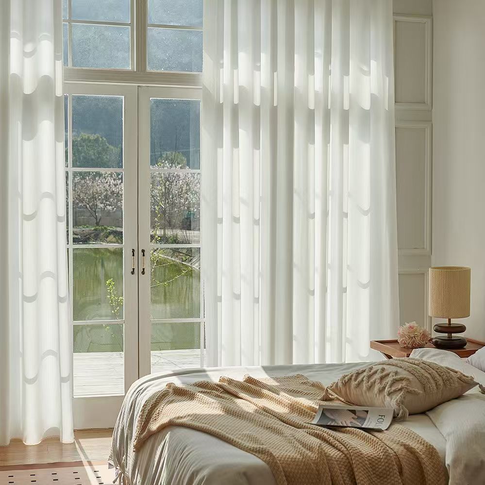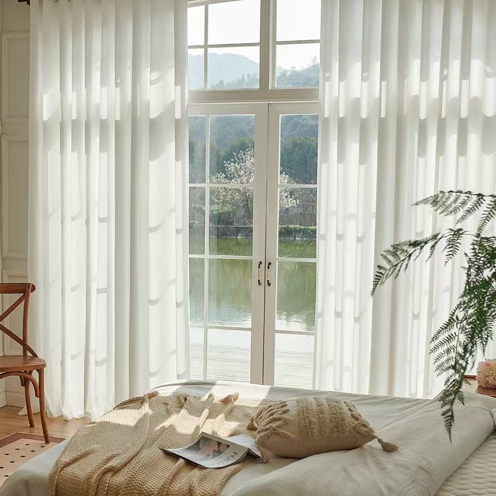 절강 소흥 Keqiao 커튼 팬텀 원사 스크래치 방지 광 전송 불가 거실 발코니 화이트 원사 커튼 간단한 북유럽