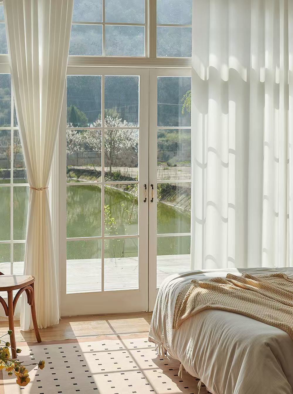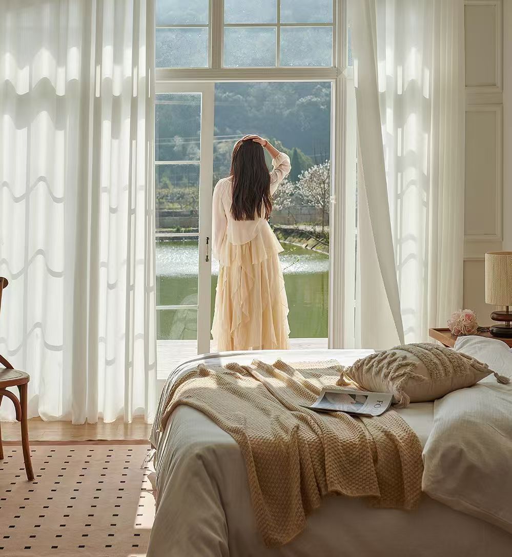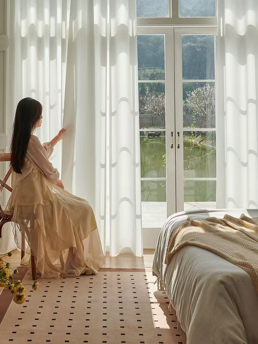 절강 소흥 Keqiao 커튼 팬텀 원사 스크래치 방지 광 전송 불가 거실 발코니 화이트 원사 커튼 간단한 북유럽