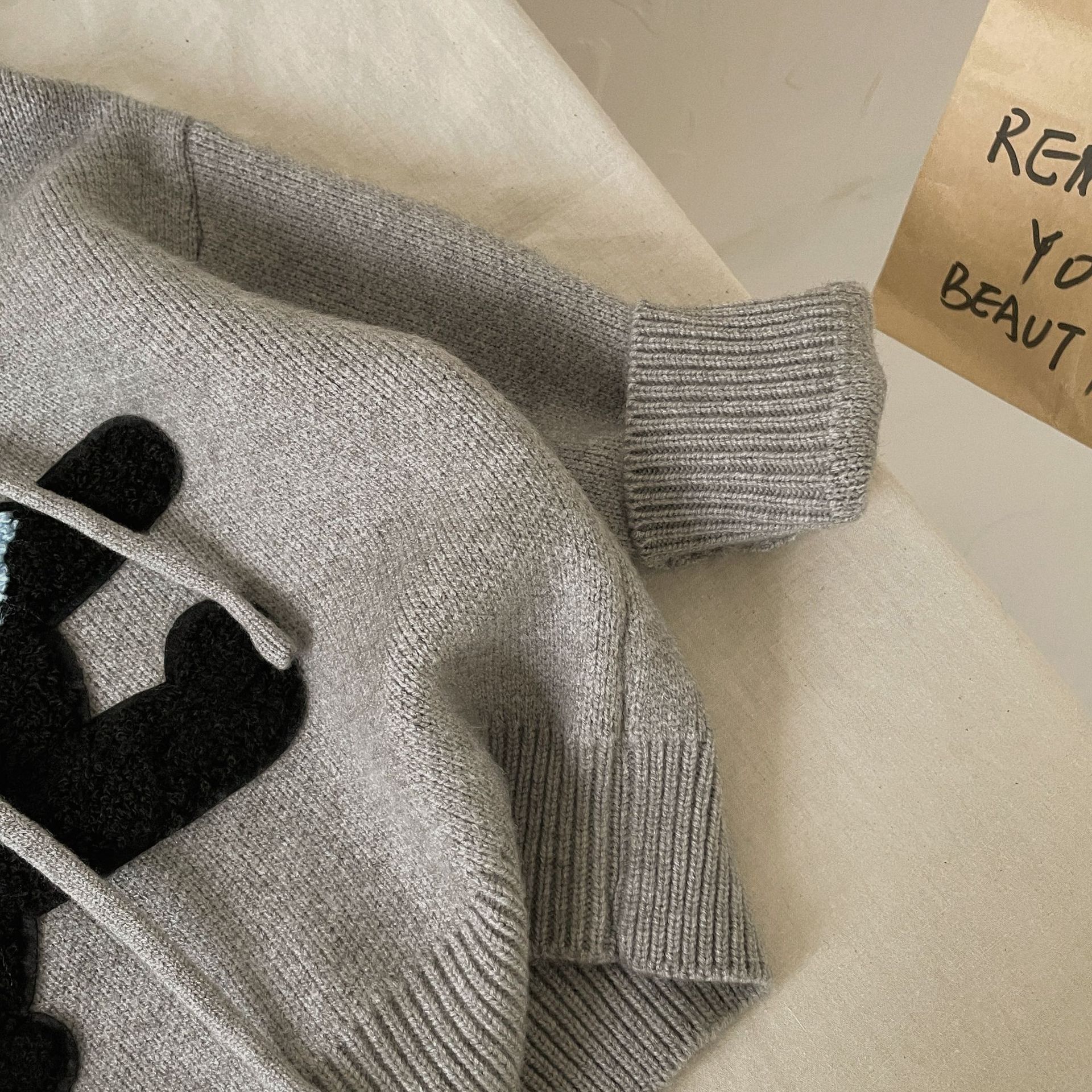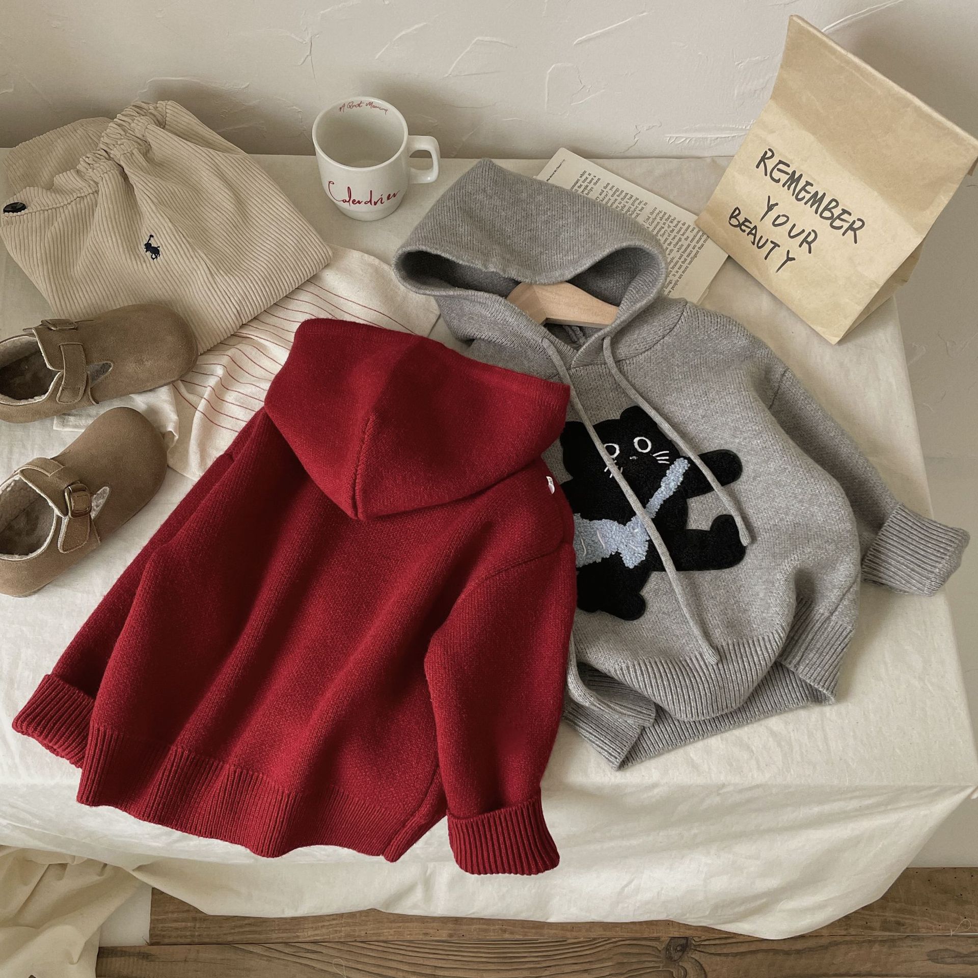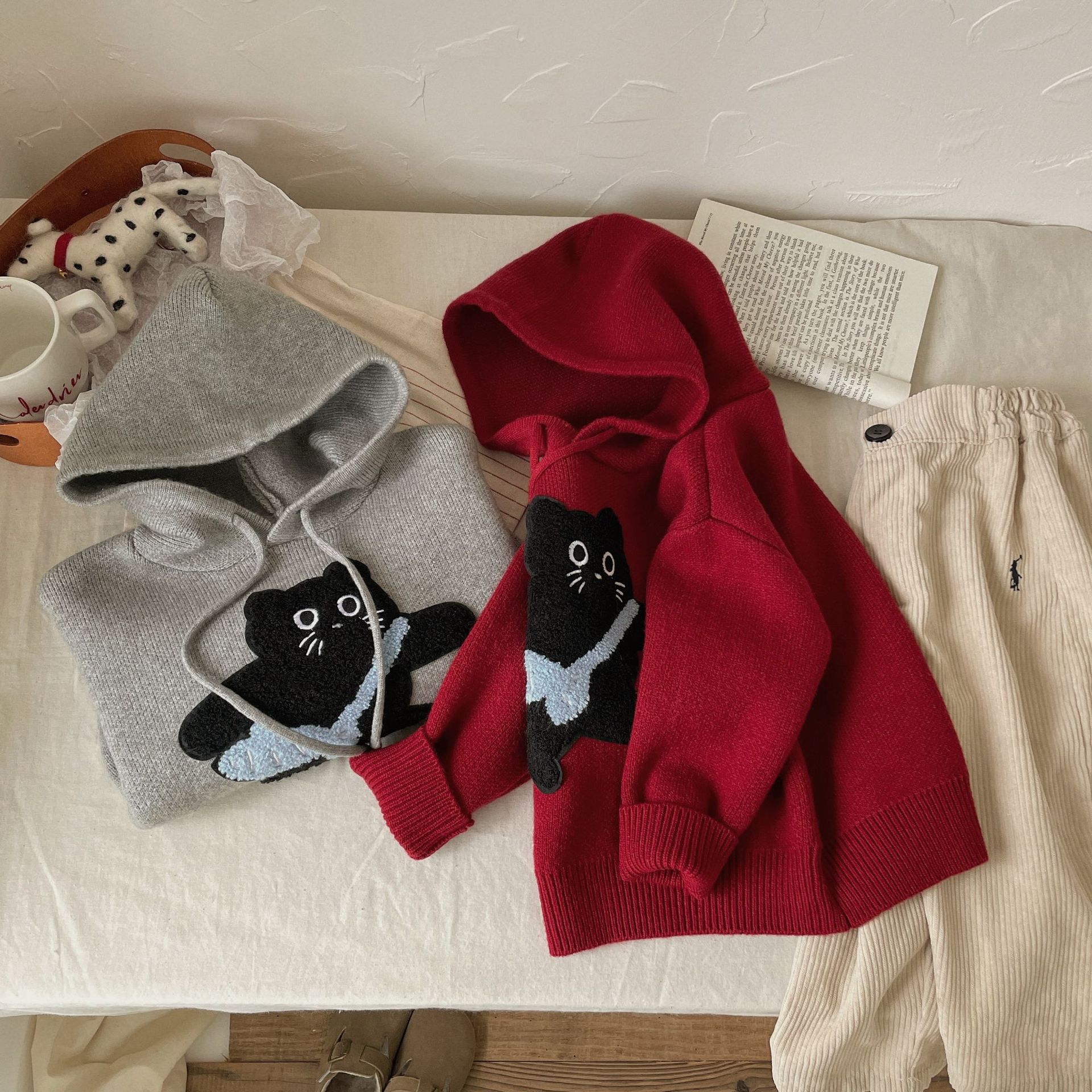 Benshu Shu 가을 및 겨울 소년과 소녀를위한 새로운 두꺼운 스웨터 웨스턴 스타일 올 매치 패딩 고양이 니트 후디 스웨터