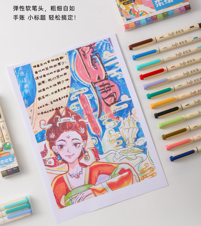부드러운 머리 부드러운 그림 펜 24 색 아름다운 펜 학생 그림 손 계정 펜 대용량 아트 후크 라인 수채화 펜