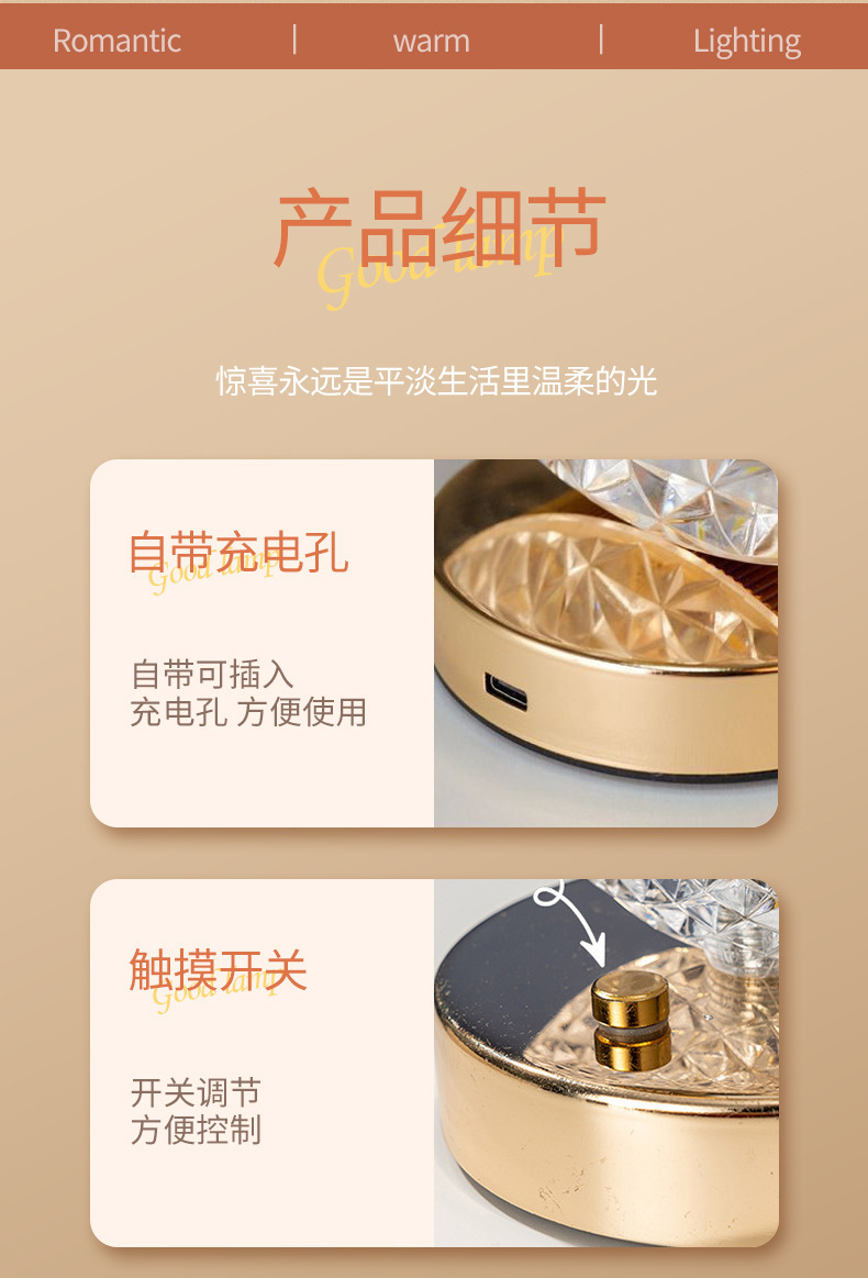 라이트 럭셔리 크리스탈 테이블 램프 침실 느낌 침대 옆 테이블 램프 활주로 장식 테이블 램프 창조적 인 거실 터치 나이트 라이트스토어 가기
