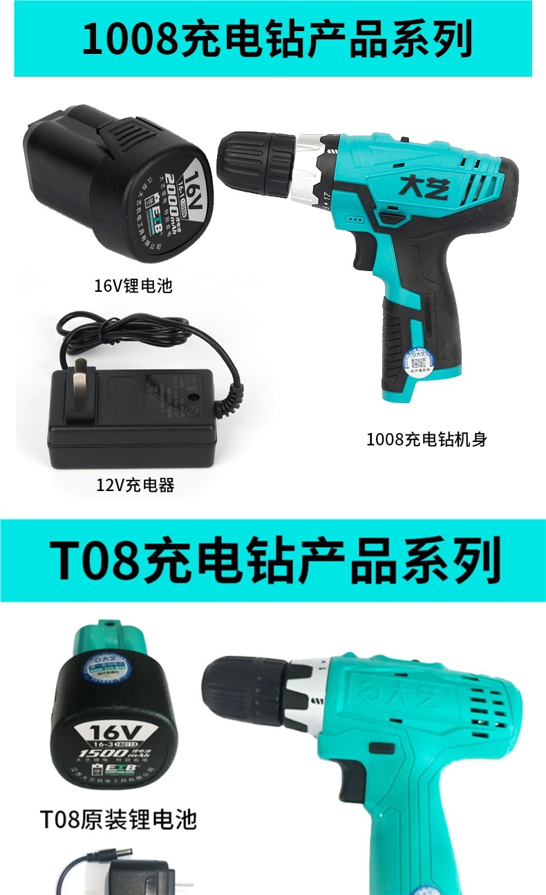 Dayi 충전 핸드 드릴 12/16/20V 오리지널 액세서리 100628 리튬 배터리 2000 충전기 맨몸 머리