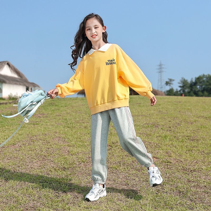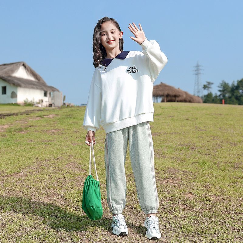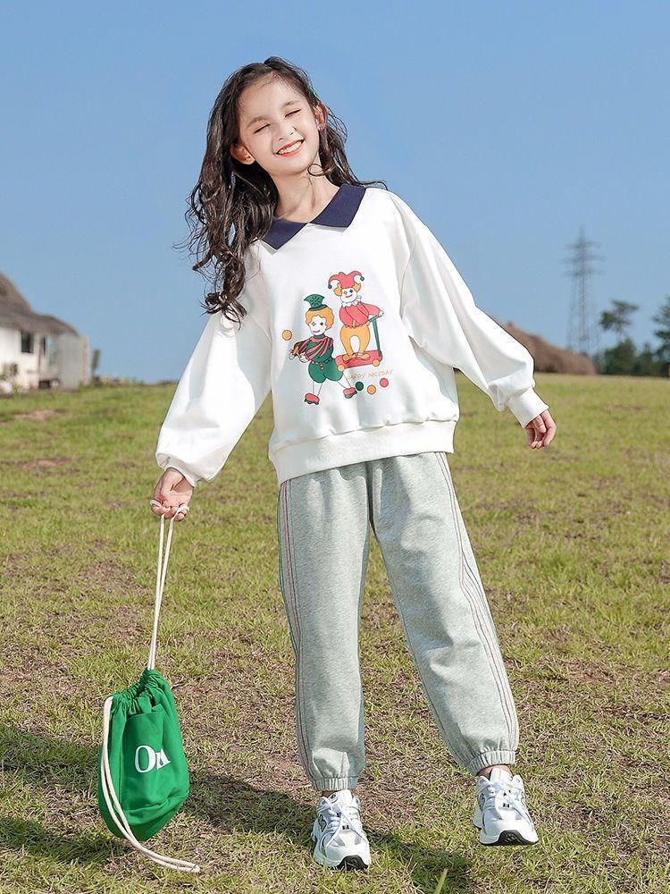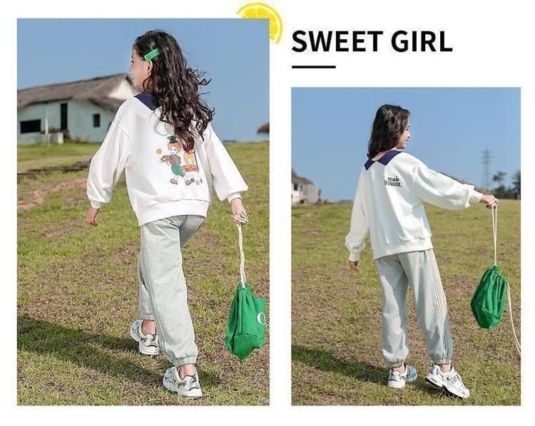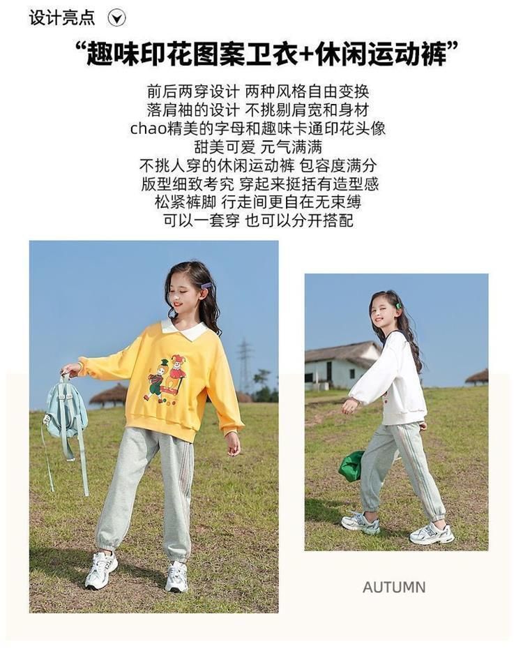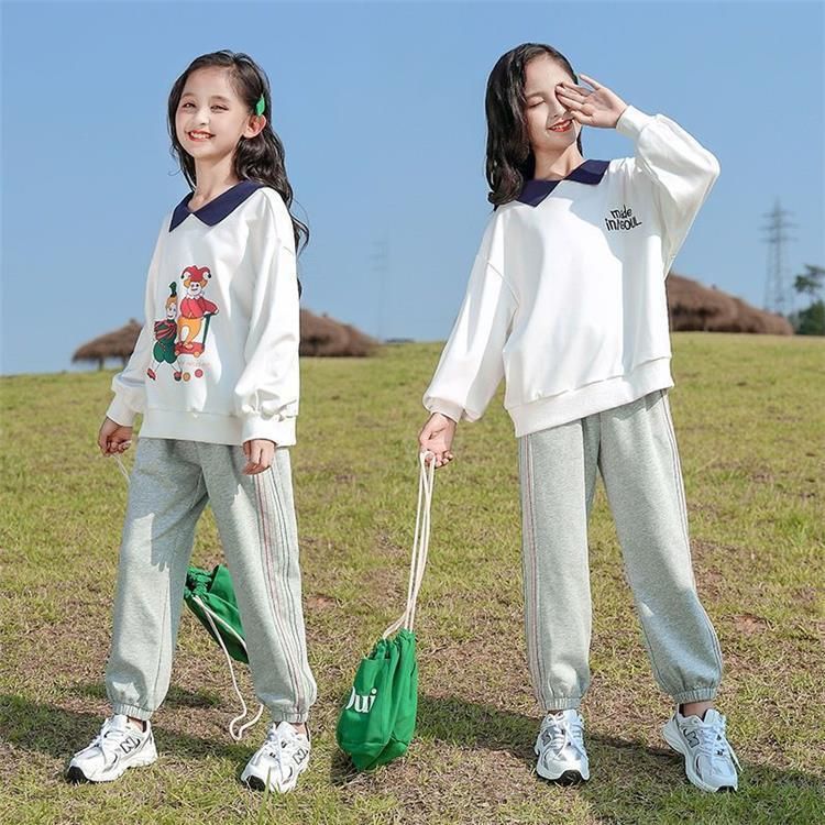소녀들의 봄과 가을 두 조각 세트 2024 서양식 새로운 CUHK 어린이 인터넷 축하 어린 소녀들을위한 스포츠 가을 원피스 캐주얼 세트