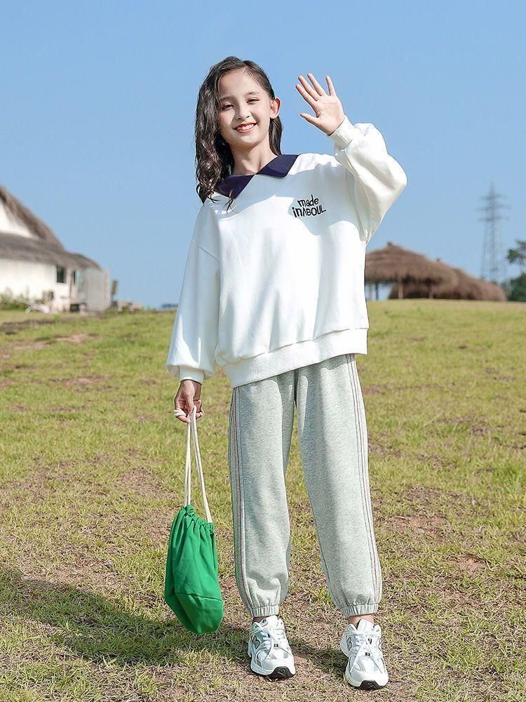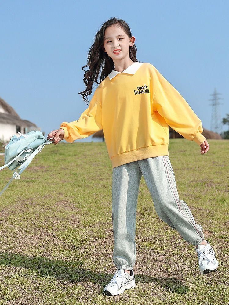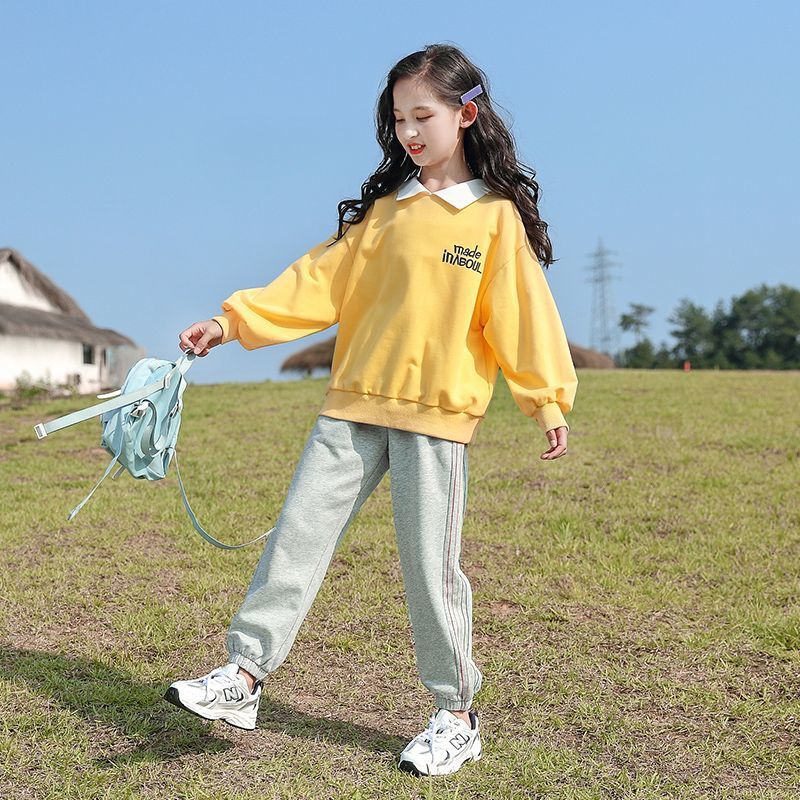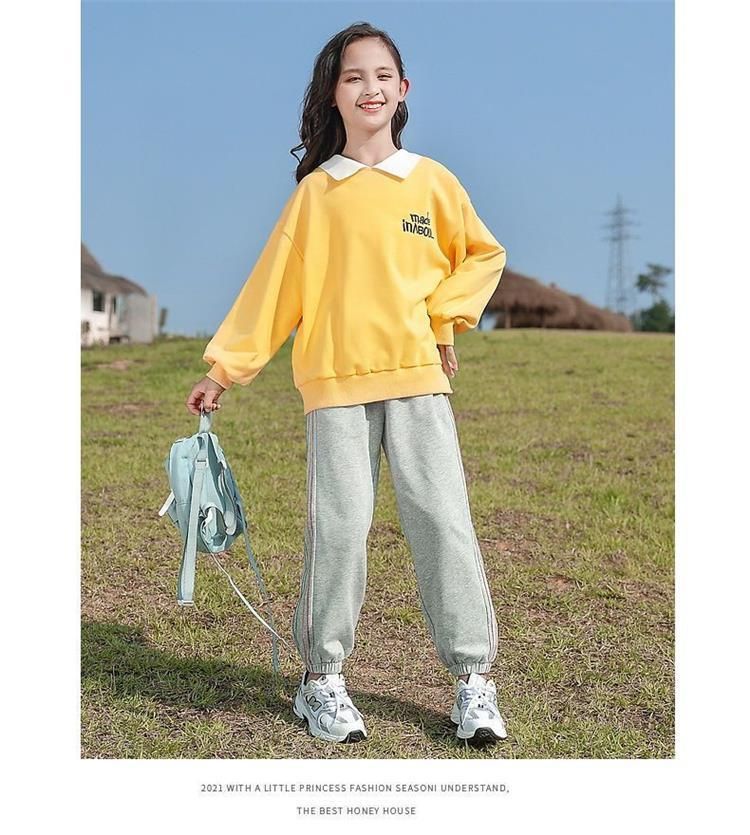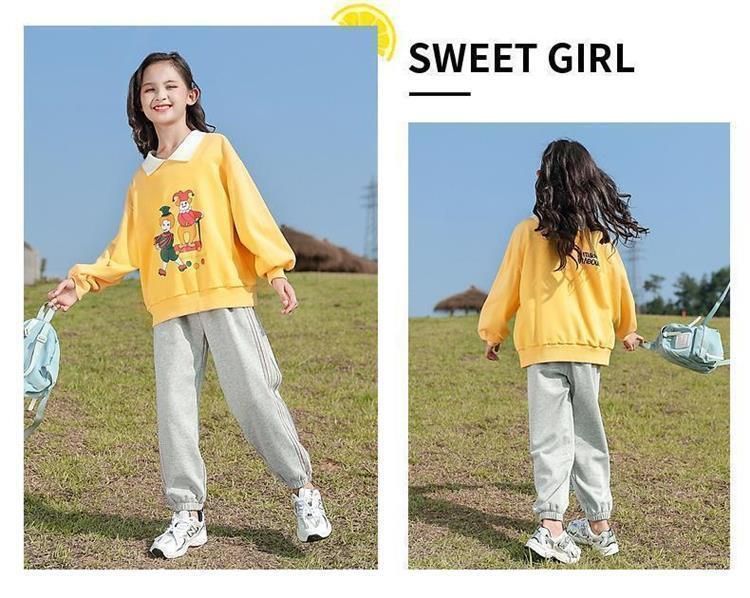 소녀들의 봄과 가을 두 조각 세트 2024 서양식 새로운 CUHK 어린이 인터넷 축하 어린 소녀들을위한 스포츠 가을 원피스 캐주얼 세트