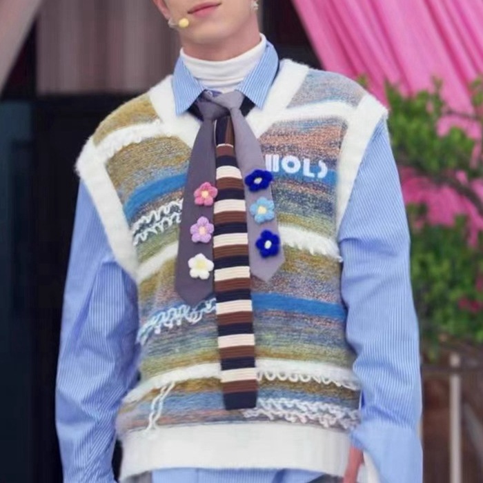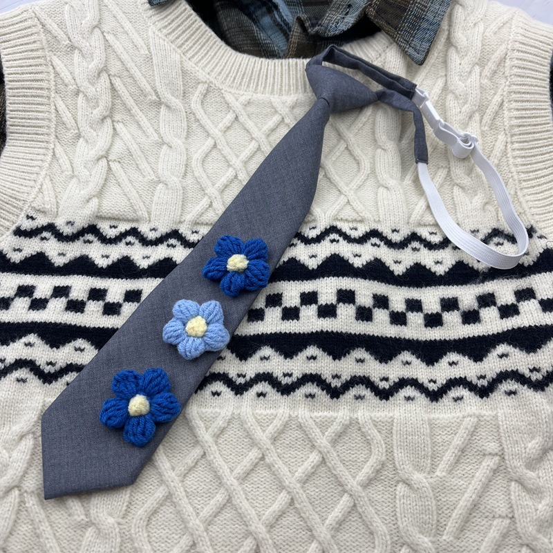 3 차원 꽃 넥타이 복고풍 양모 아카데미 스타일 셔츠 비 히트 단색 회색 독특한 꽃 장식