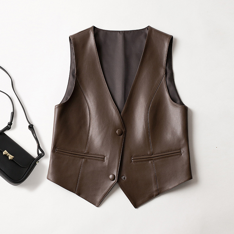 2025 봄, 가을 신상 여성용 정품 가죽 조끼, 양가죽 슬림핏 짧은 민소매 조끼, 캐주얼하고 다용도 조끼스토어 가기