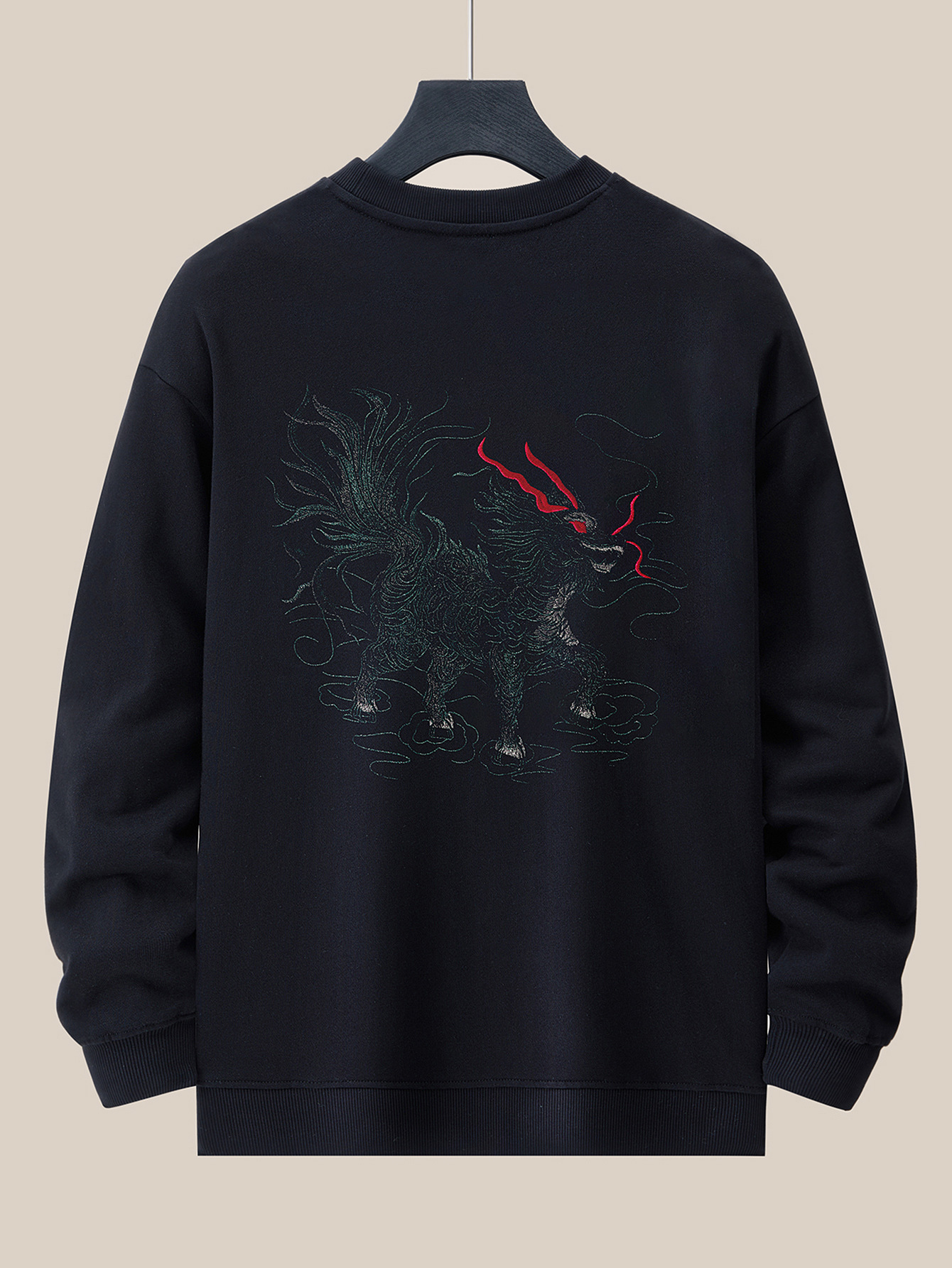 가을과 겨울 새로운 남성 라운드 넥 스웨트 셔츠 플러스 사이즈 남성 코트 전국 트렌디 키린 탑 코튼 루즈 트렌디 브랜드