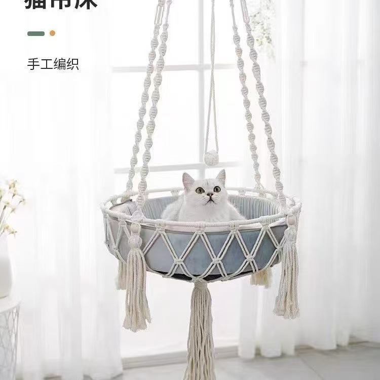 손으로 짠 교수형 고양이 둥지 애완 동물 그물 가방 매달려 고양이 바구니 보헤미안 스타일 고양이 둥지 해먹