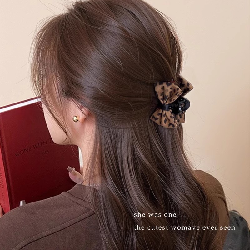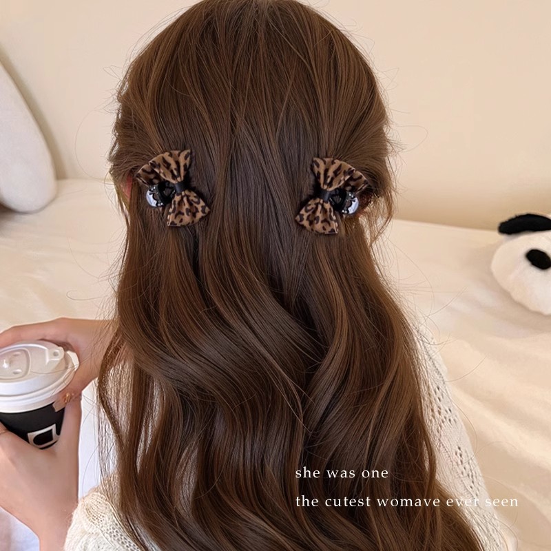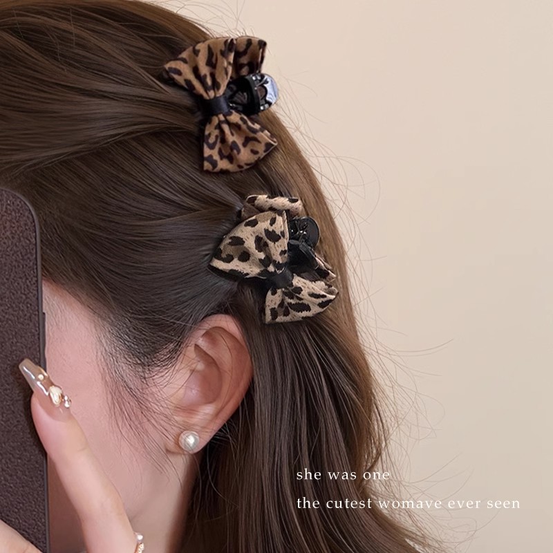 귀여운 레오파드 활 작은 잡아 클립 여성용 하이 엔드 센스 새로운 공주 헤어 클립 사이드 뱅 클립 클립 헤어 액세서리 2024