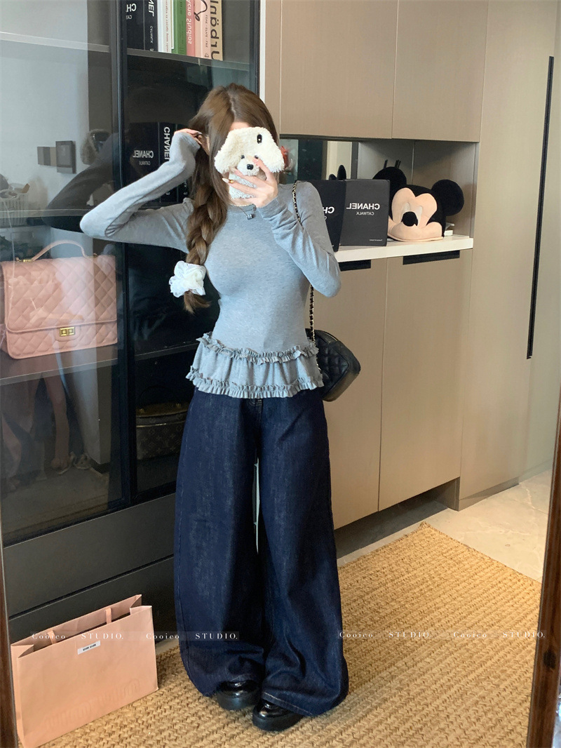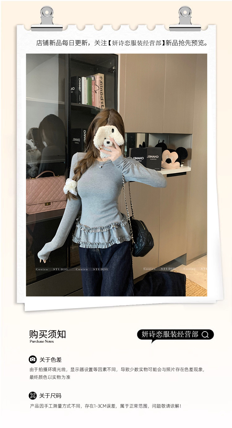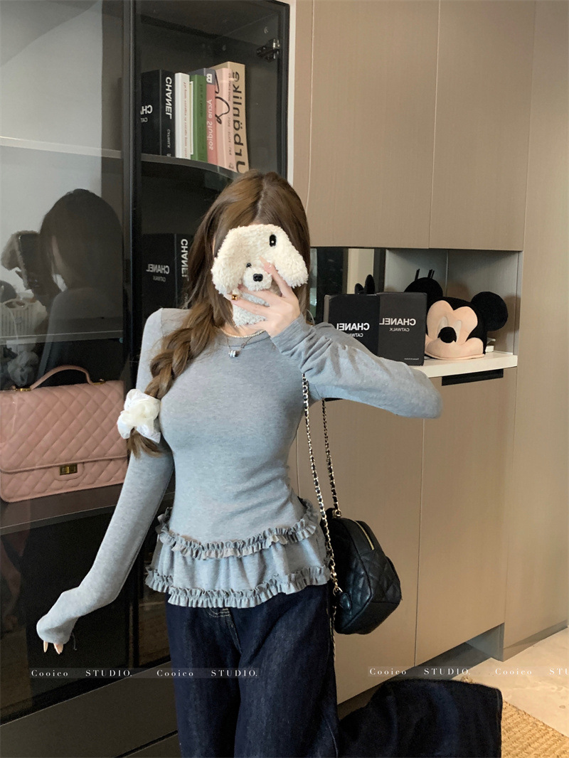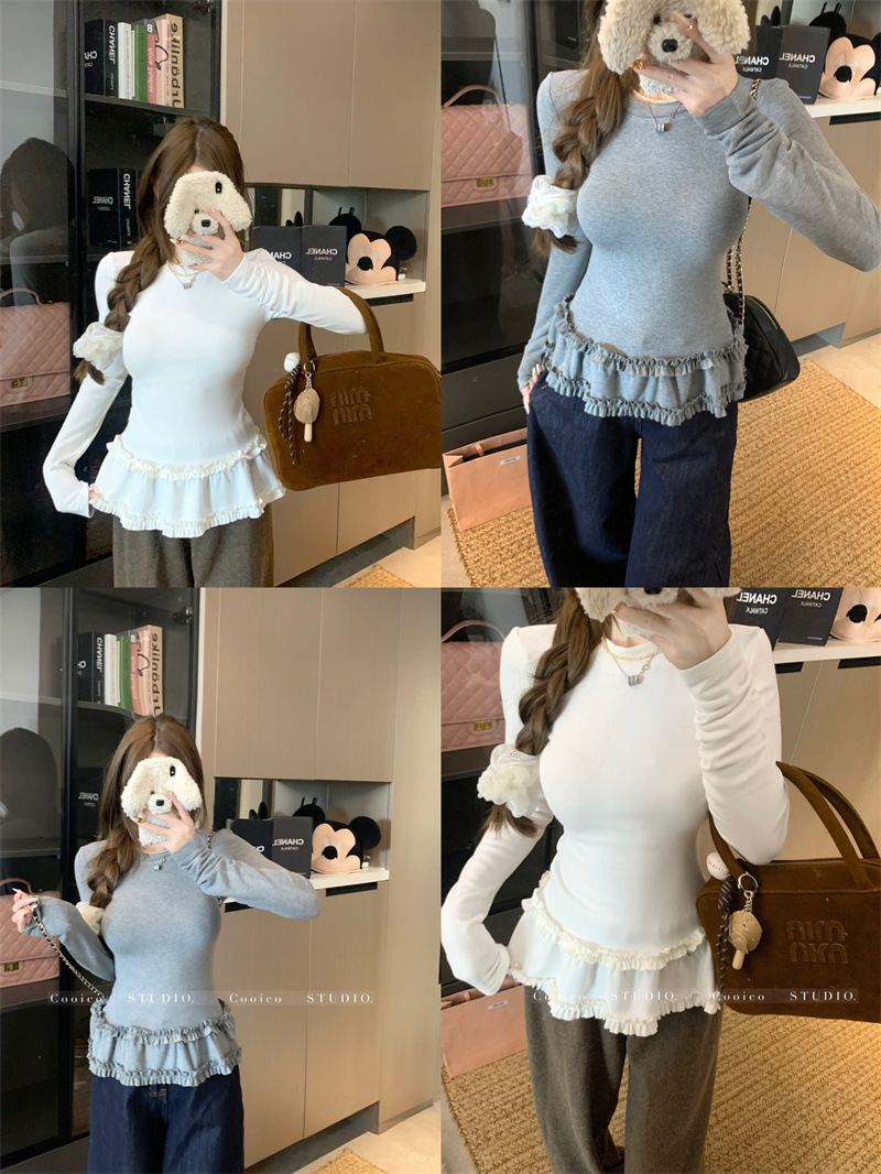 발레 스타일 레이스 브러쉬 티셔츠 여성용 가을과 겨울 새로운 슬림 핏 슬리밍 기모 두꺼운 내베이스 셔츠 탑스토어 가기