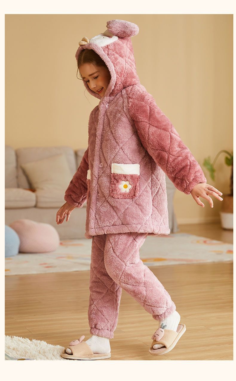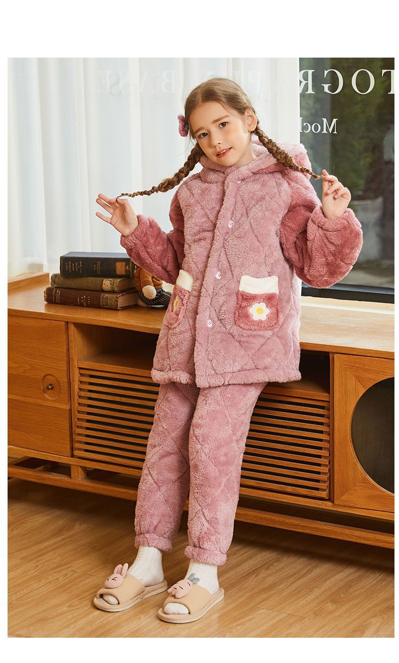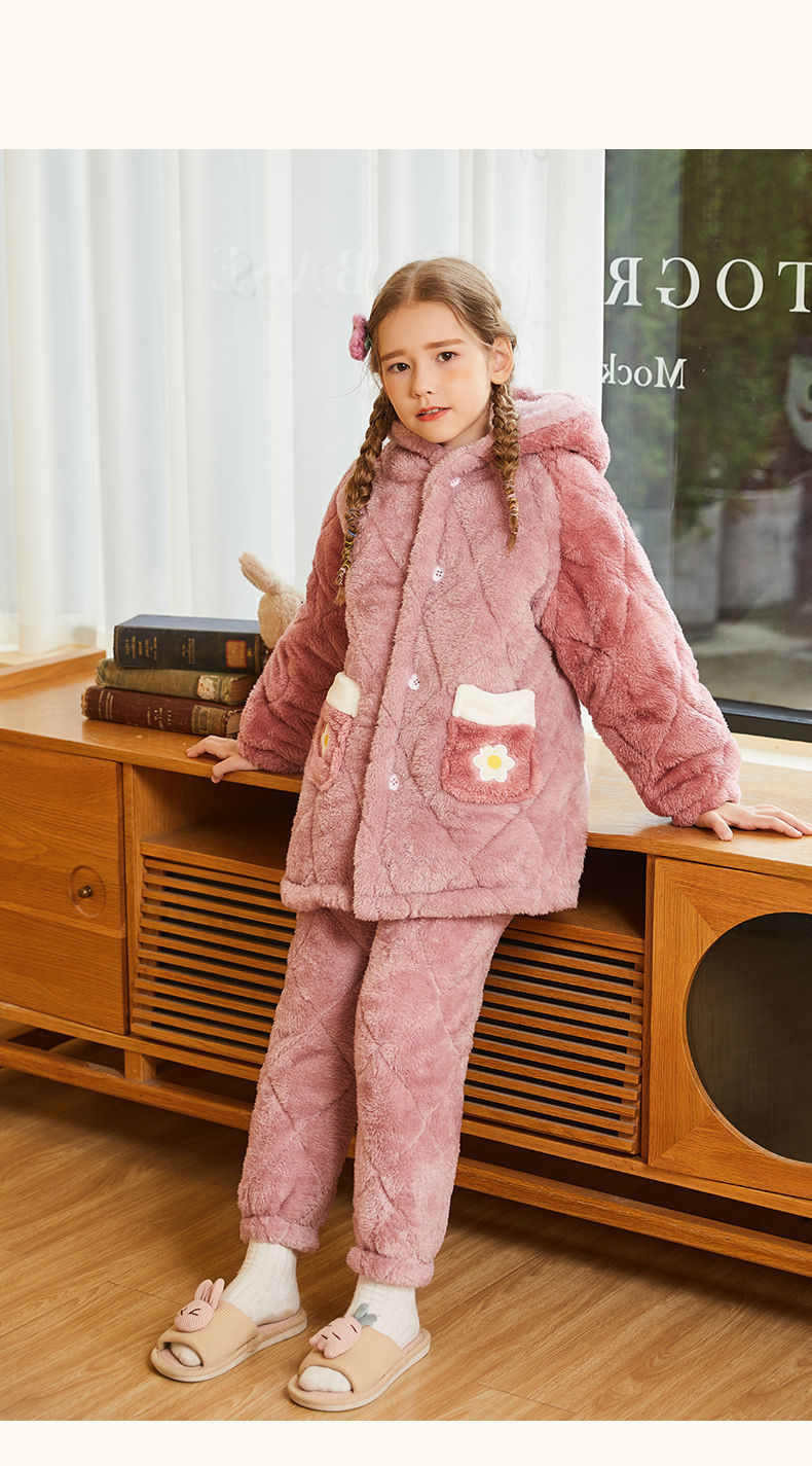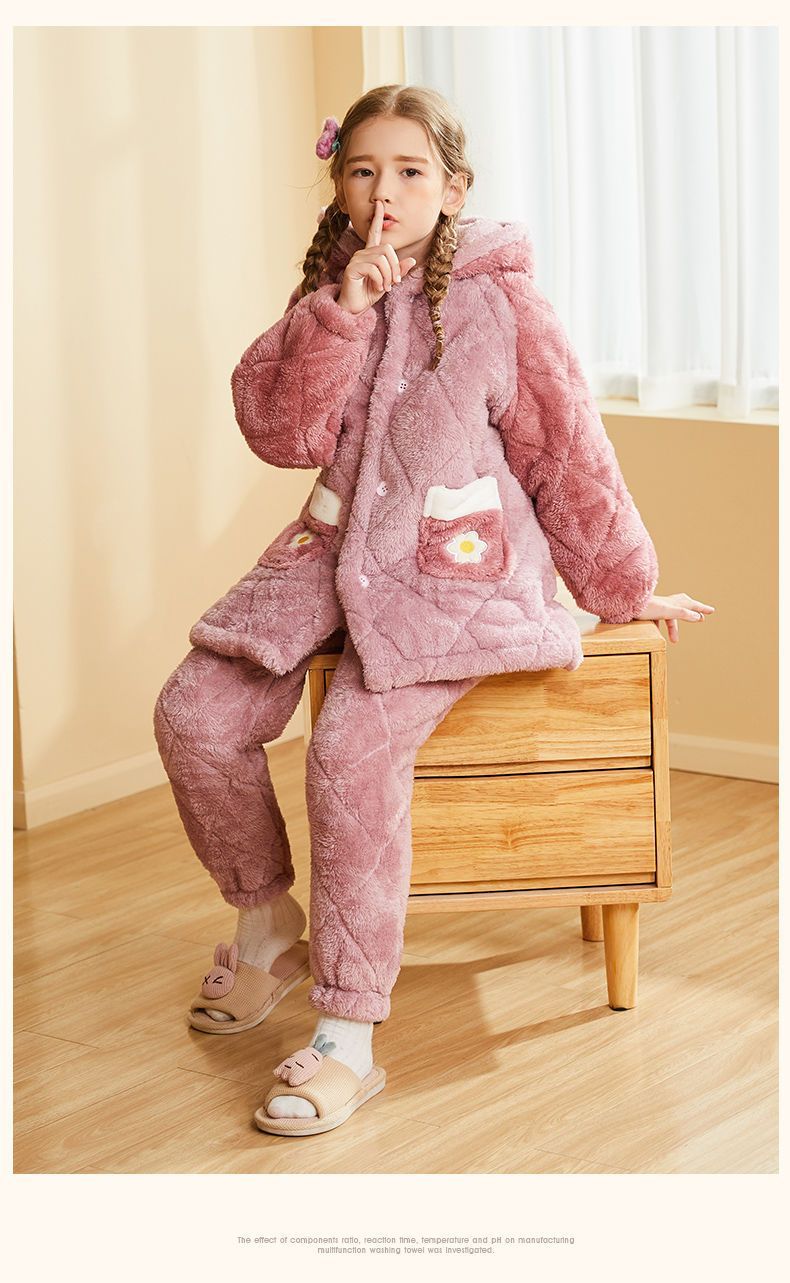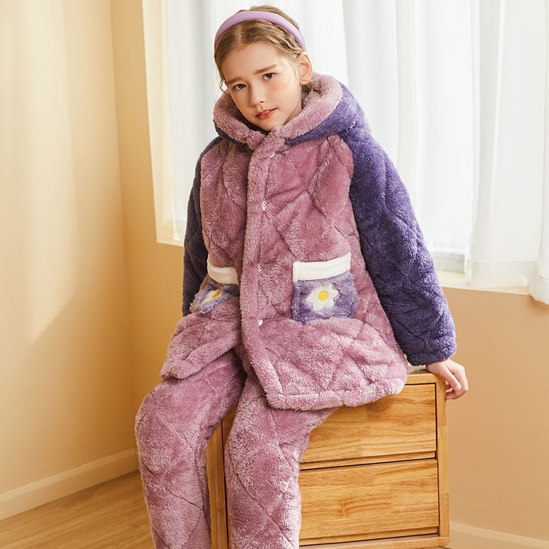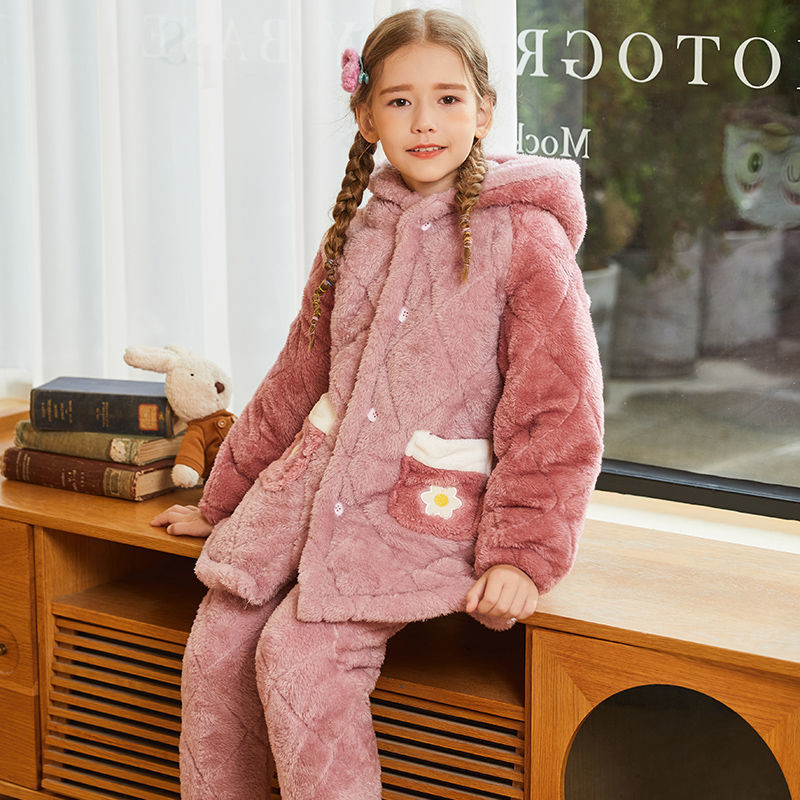 어린이 잠옷 2024 겨울 새 여학생 3 층 퀼트 산호 양털 홈웨어 따뜻한 긴 외모스토어 가기