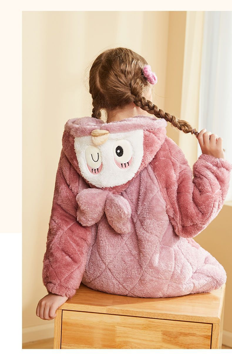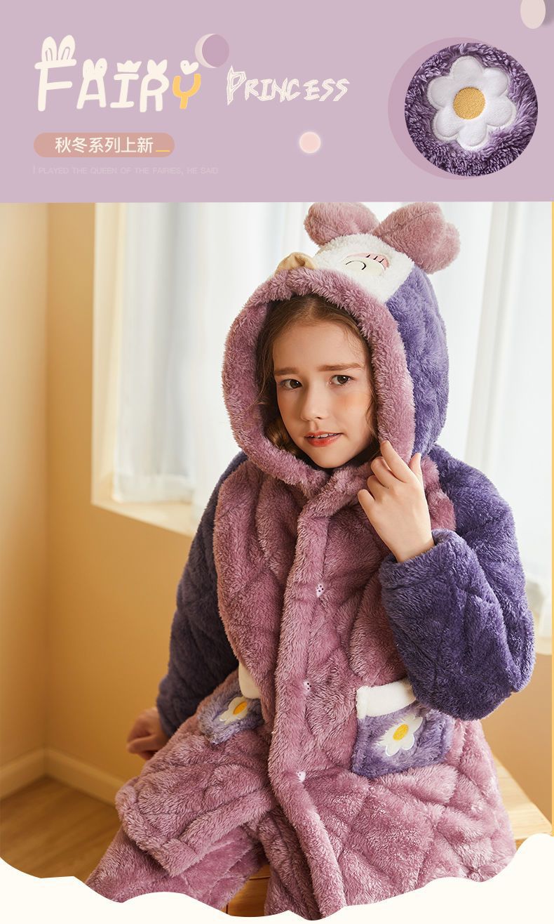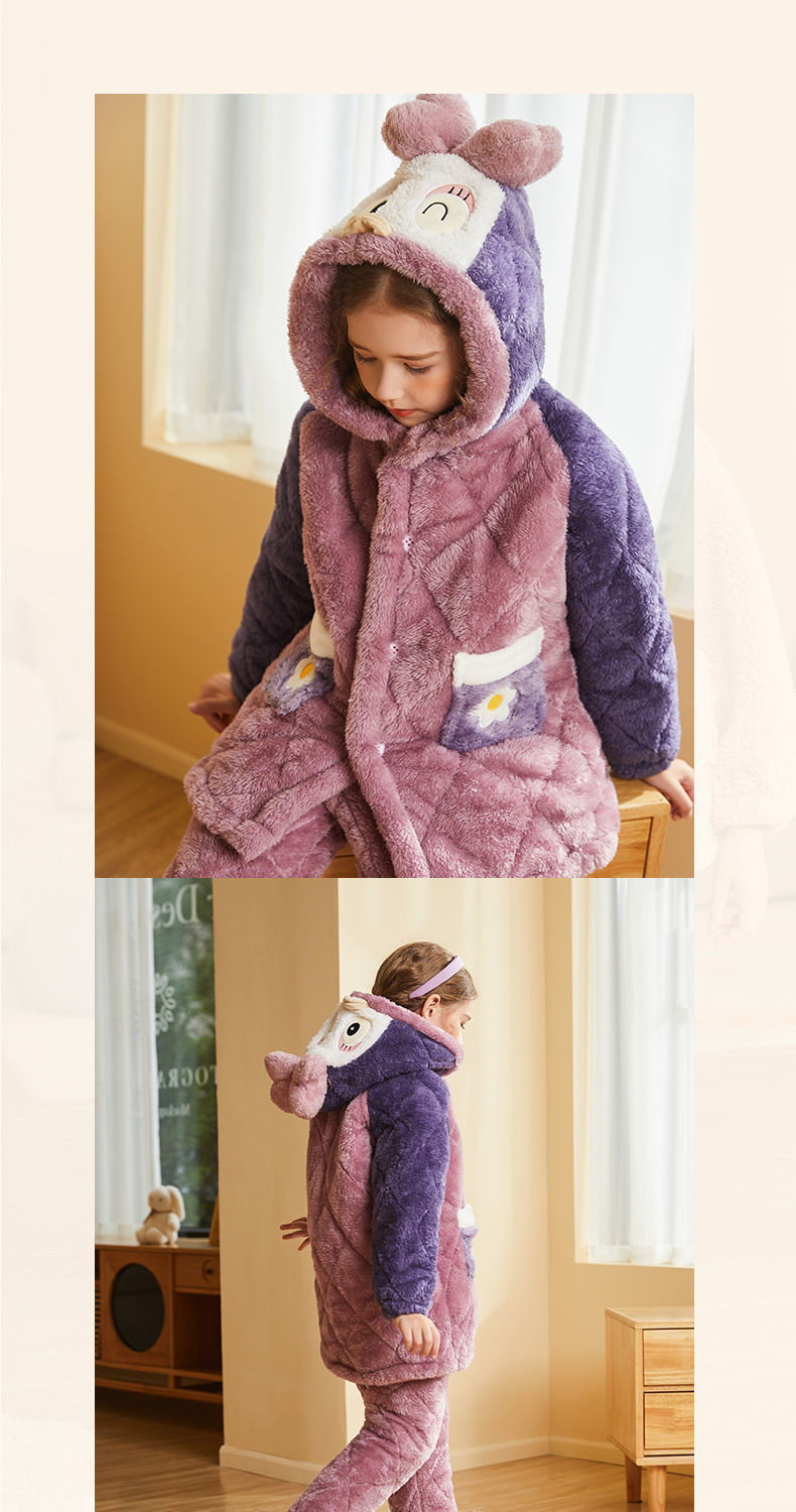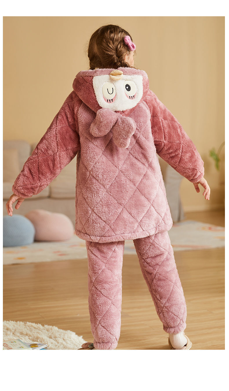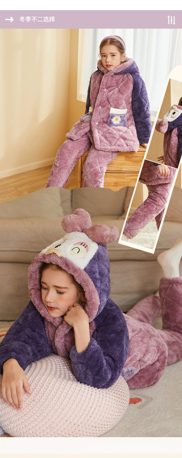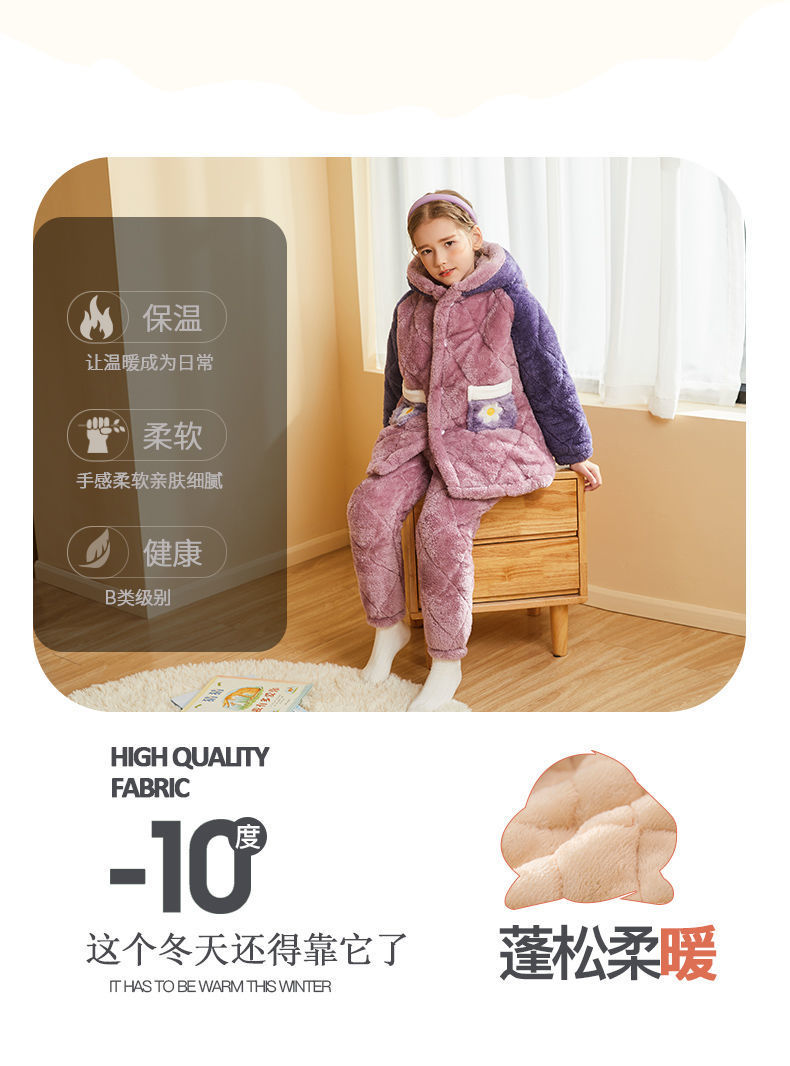 어린이 잠옷 2024 겨울 새 여학생 3 층 퀼트 산호 양털 홈웨어 따뜻한 긴 외모스토어 가기