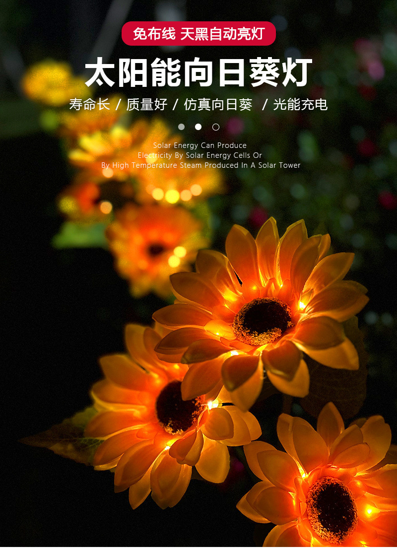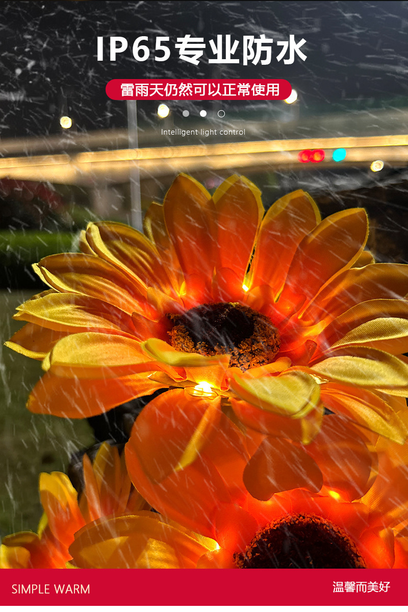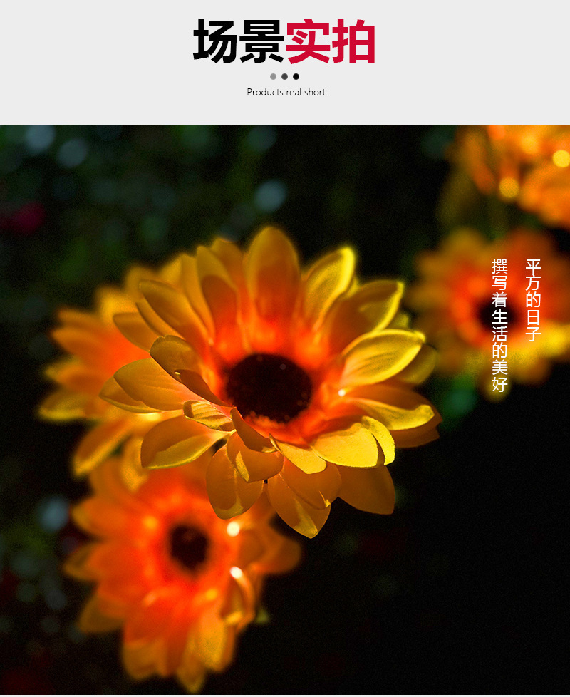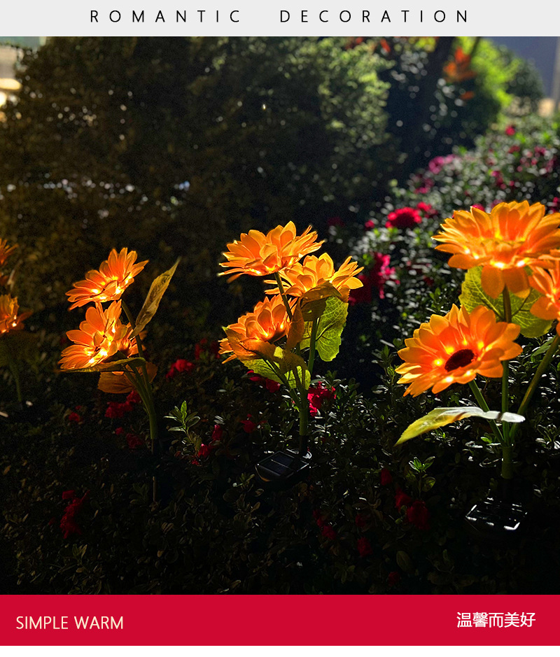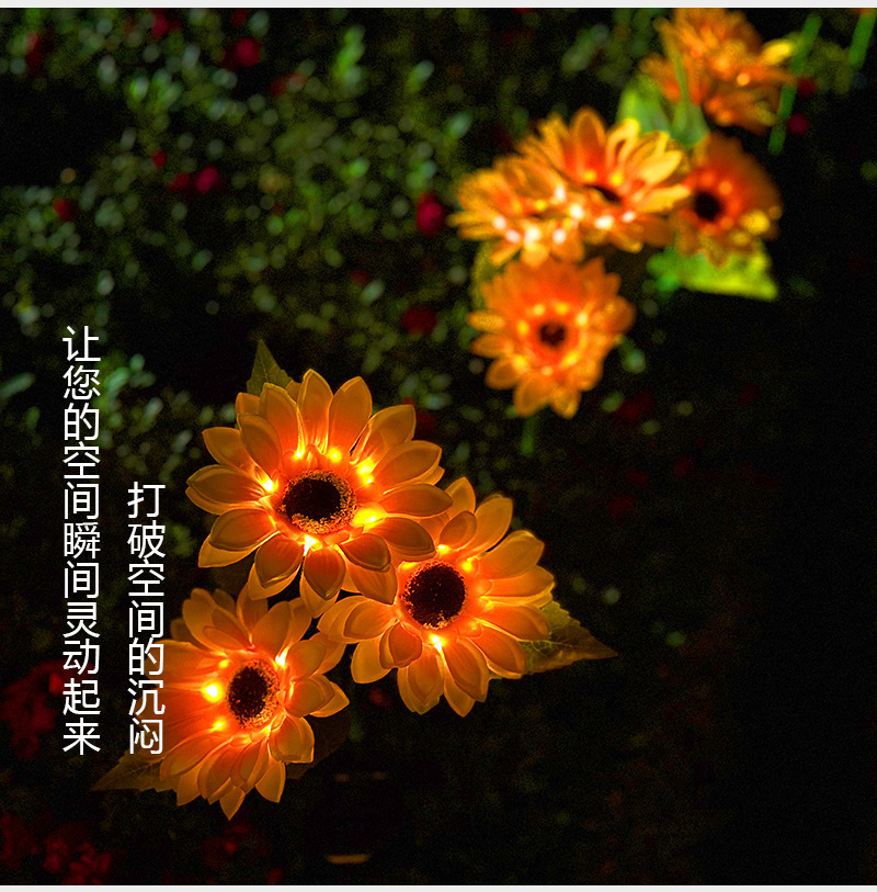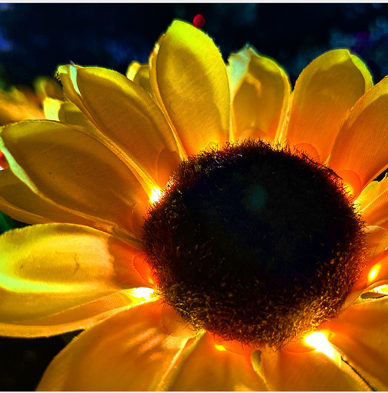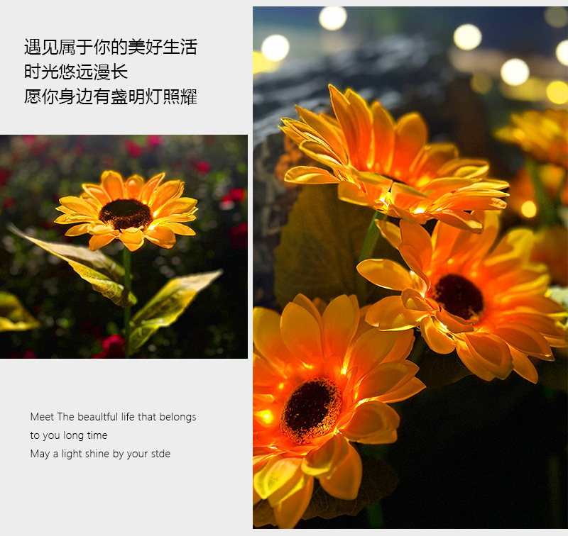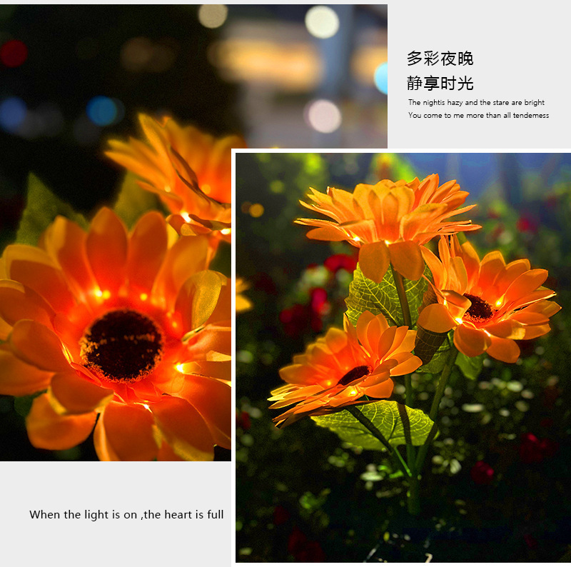 태양 해바라기 빛 야외 안뜰 빌라 발코니 정원 시뮬레이션 해바라기 장식 바닥 삽입 잔디 밤 빛
