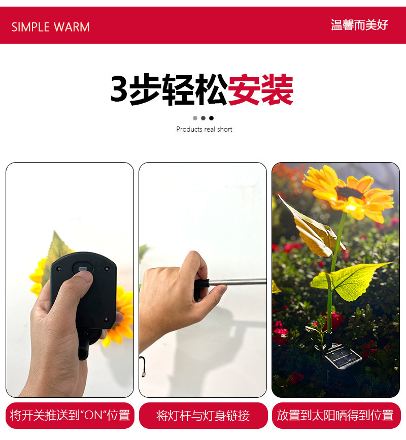 태양 해바라기 빛 야외 안뜰 빌라 발코니 정원 시뮬레이션 해바라기 장식 바닥 삽입 잔디 밤 빛스토어 가기