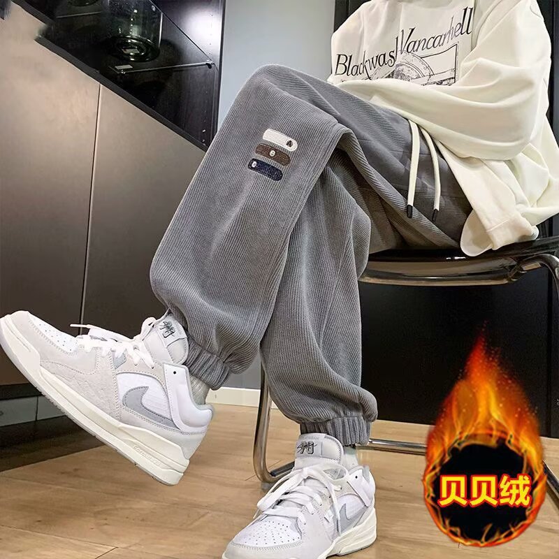 Corduroy 바지 남자 겨울 기모 두꺼운 스포츠 바지 미국식 레트로 헤비 웨이트 운동복 바지 다리 발가락 Harlan 캐주얼 바지