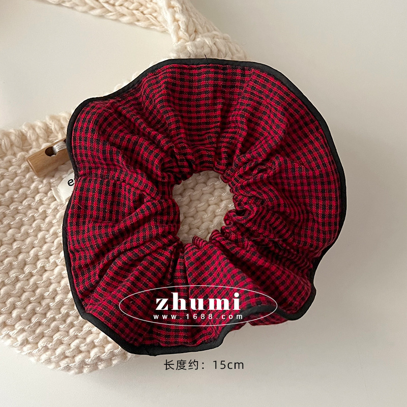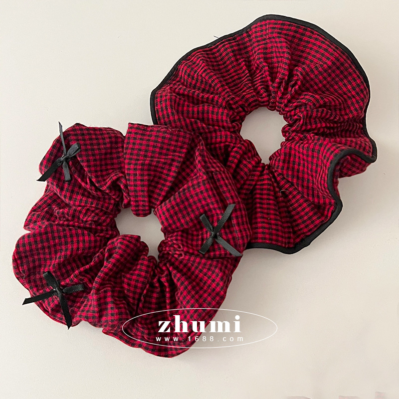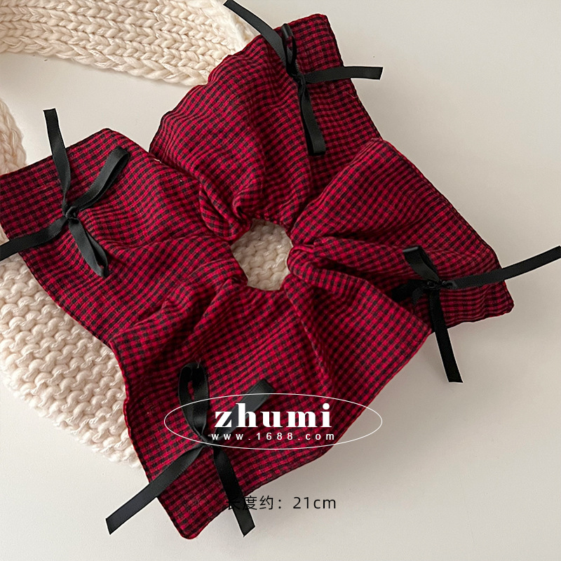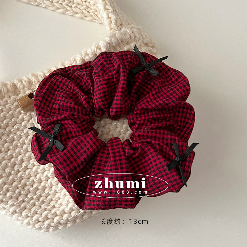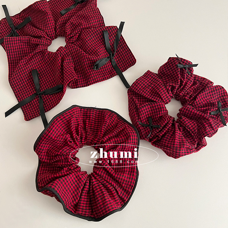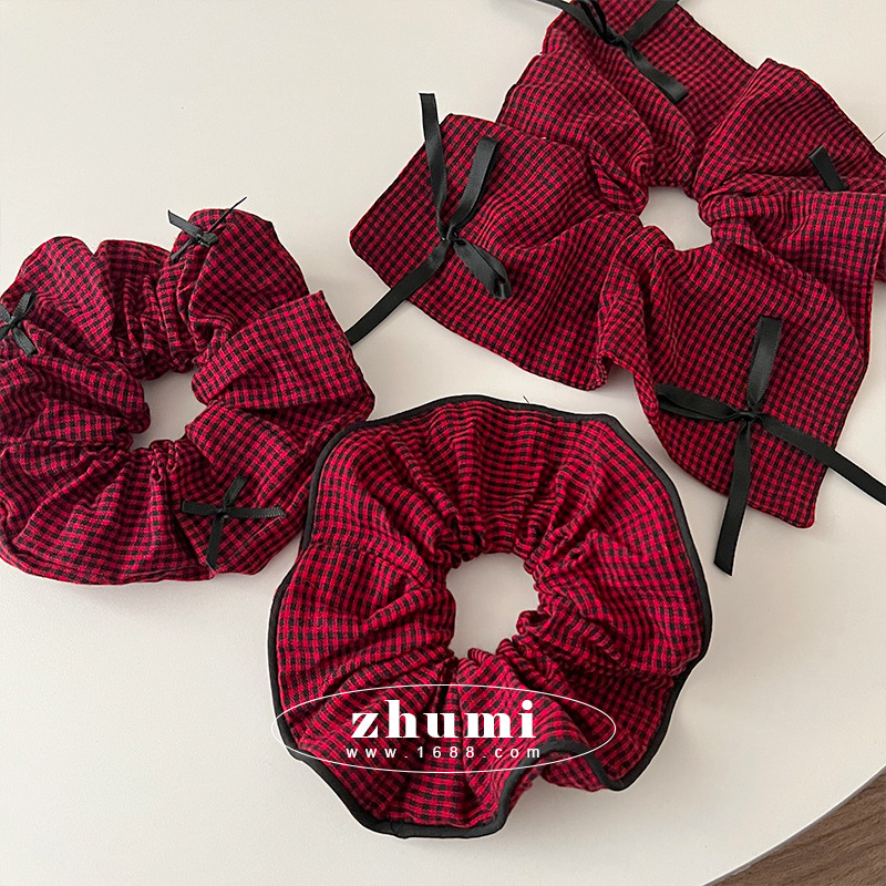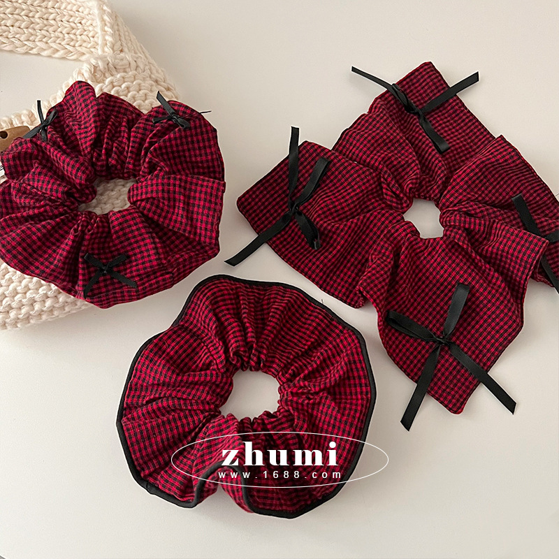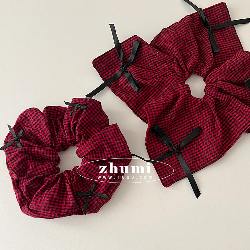 빨간 격자 무늬 활 스퀘어 스퀘어 대형 직분 헤어 링 여성 한국식 하이 엔드 스퀘어 대형 게으른 스타일 헤어 액세서리스토어 가기