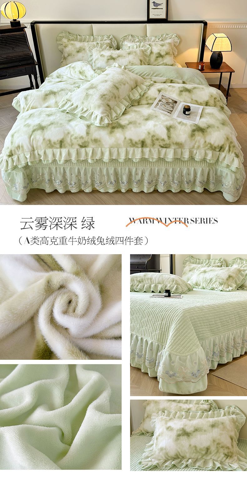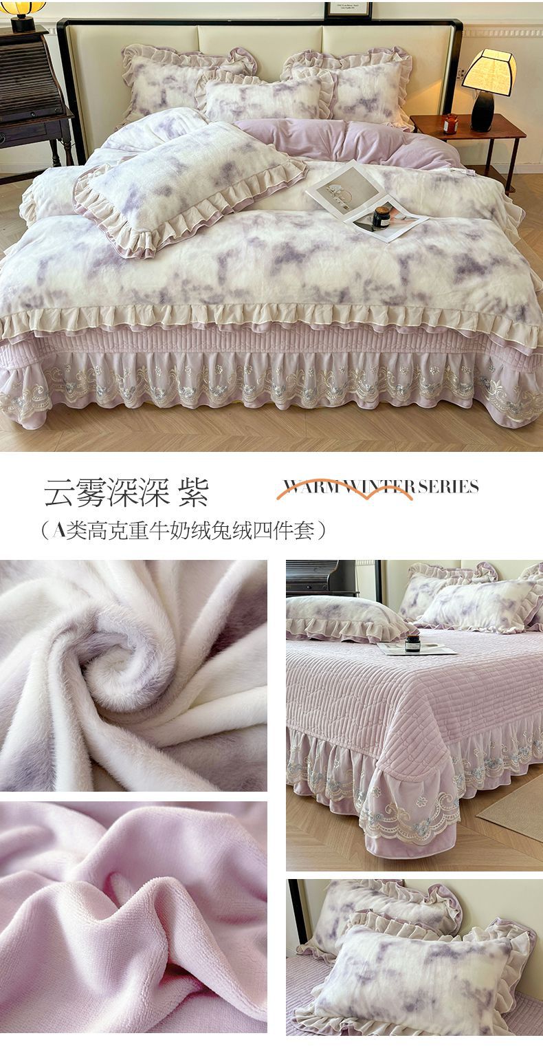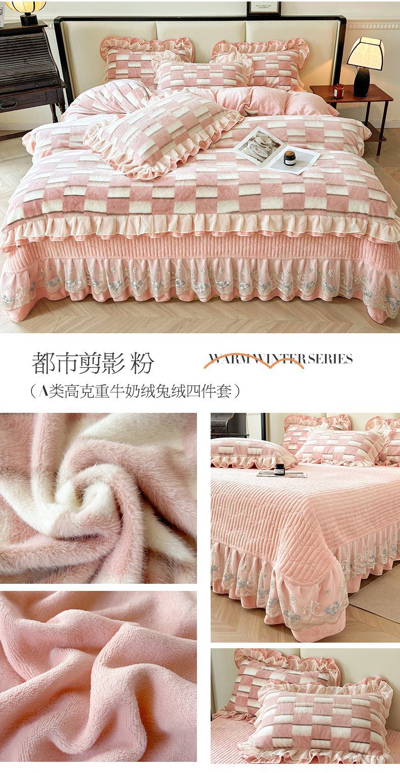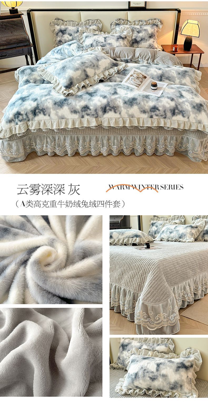 클래스 A 밀크 벨벳 4 피스 퀼트 커버 시트 기모 두꺼운 양면 벨벳 플란넬 침구 침대 스커트