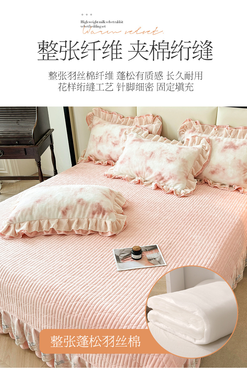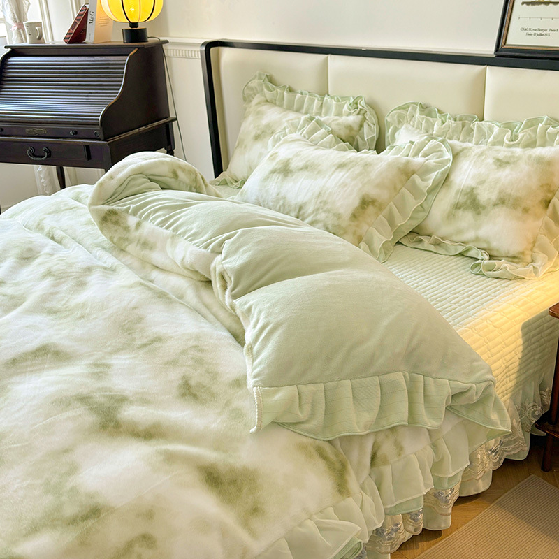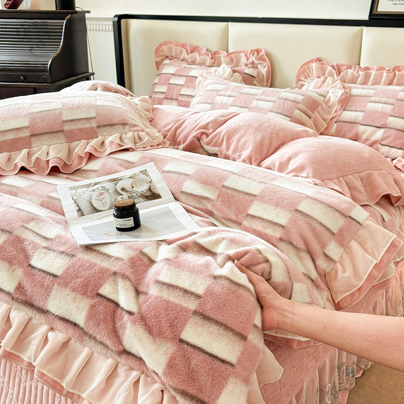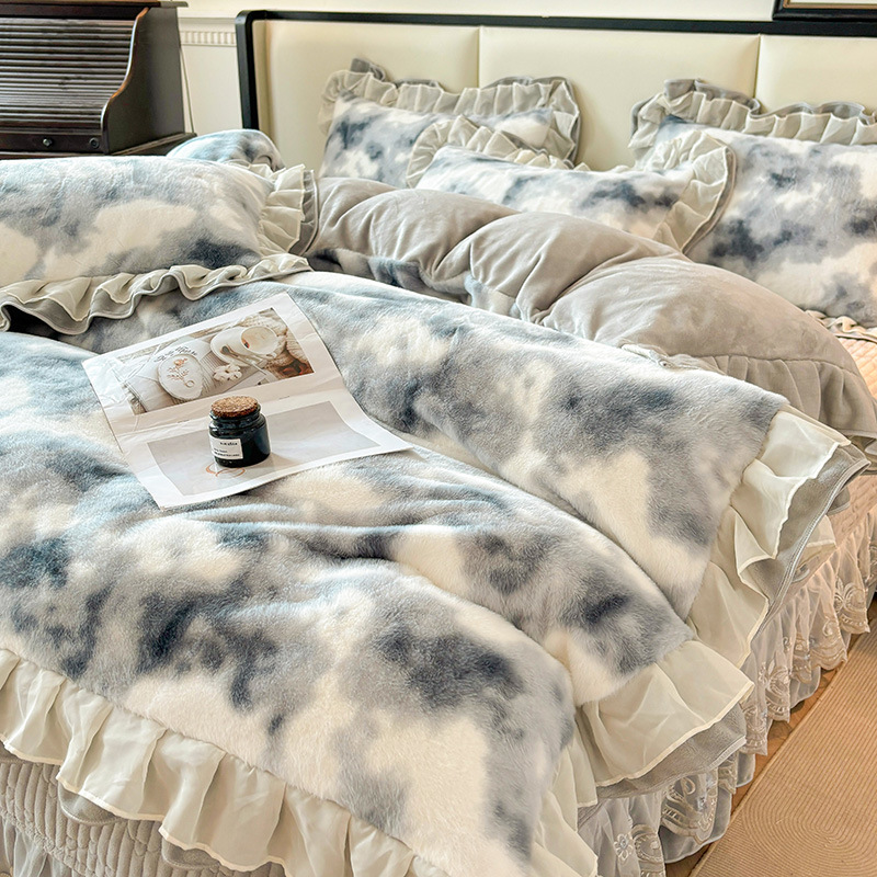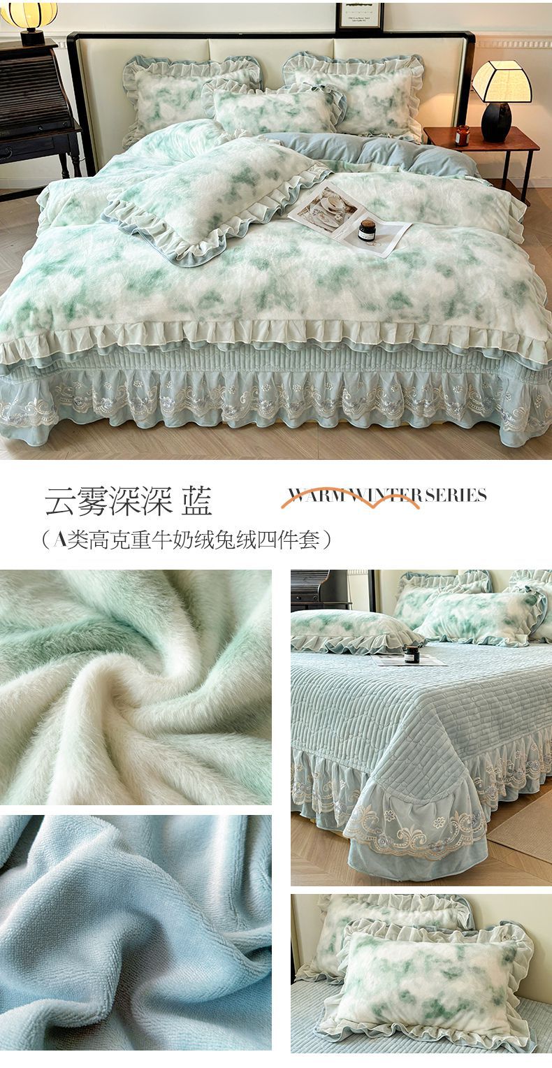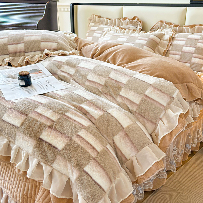 클래스 A 밀크 벨벳 4 피스 퀼트 커버 시트 기모 두꺼운 양면 벨벳 플란넬 침구 침대 스커트