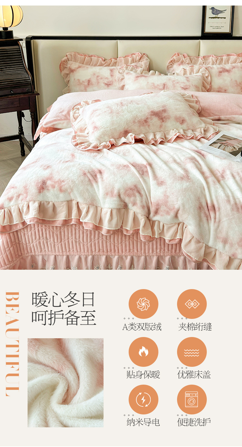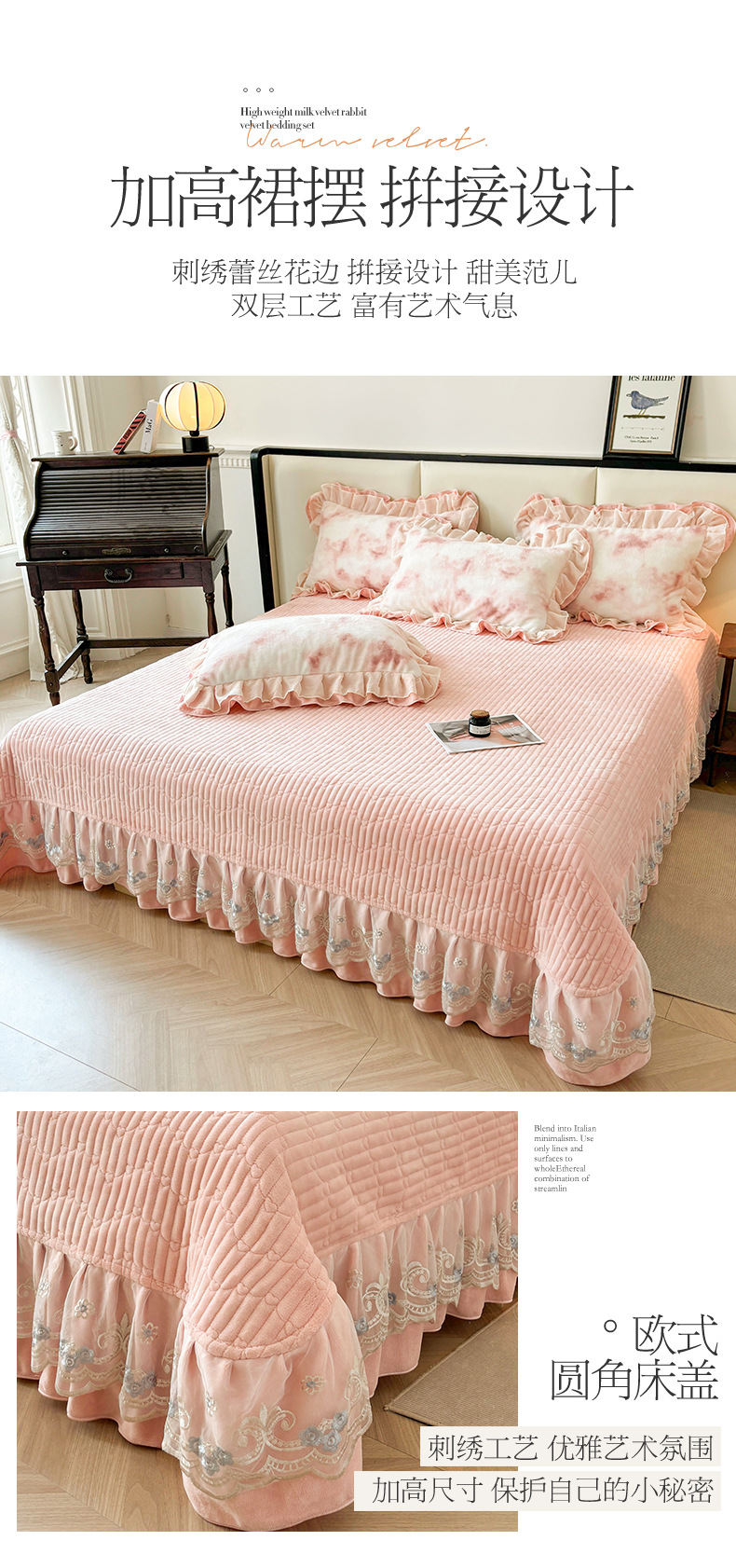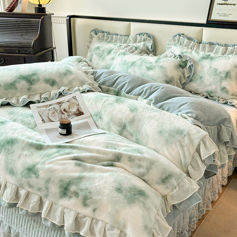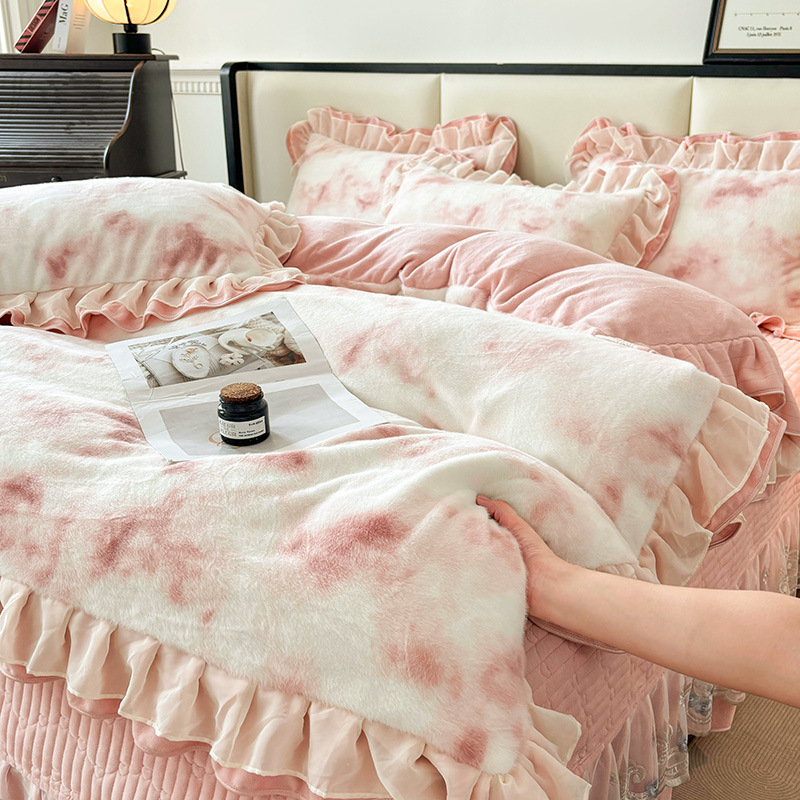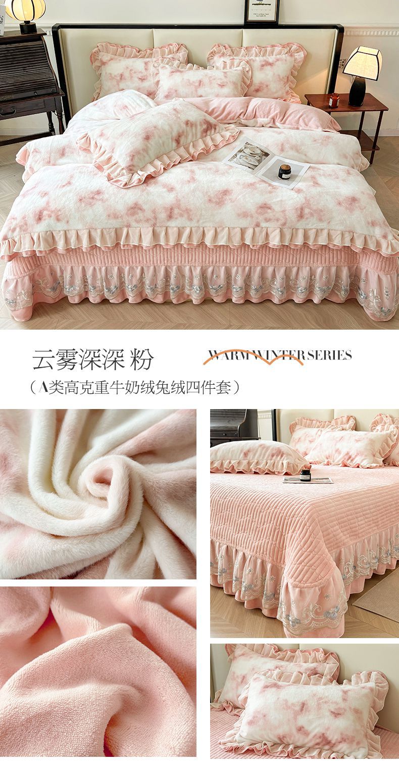 클래스 A 밀크 벨벳 4 피스 퀼트 커버 시트 기모 두꺼운 양면 벨벳 플란넬 침구 침대 스커트