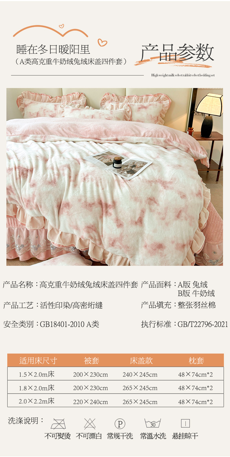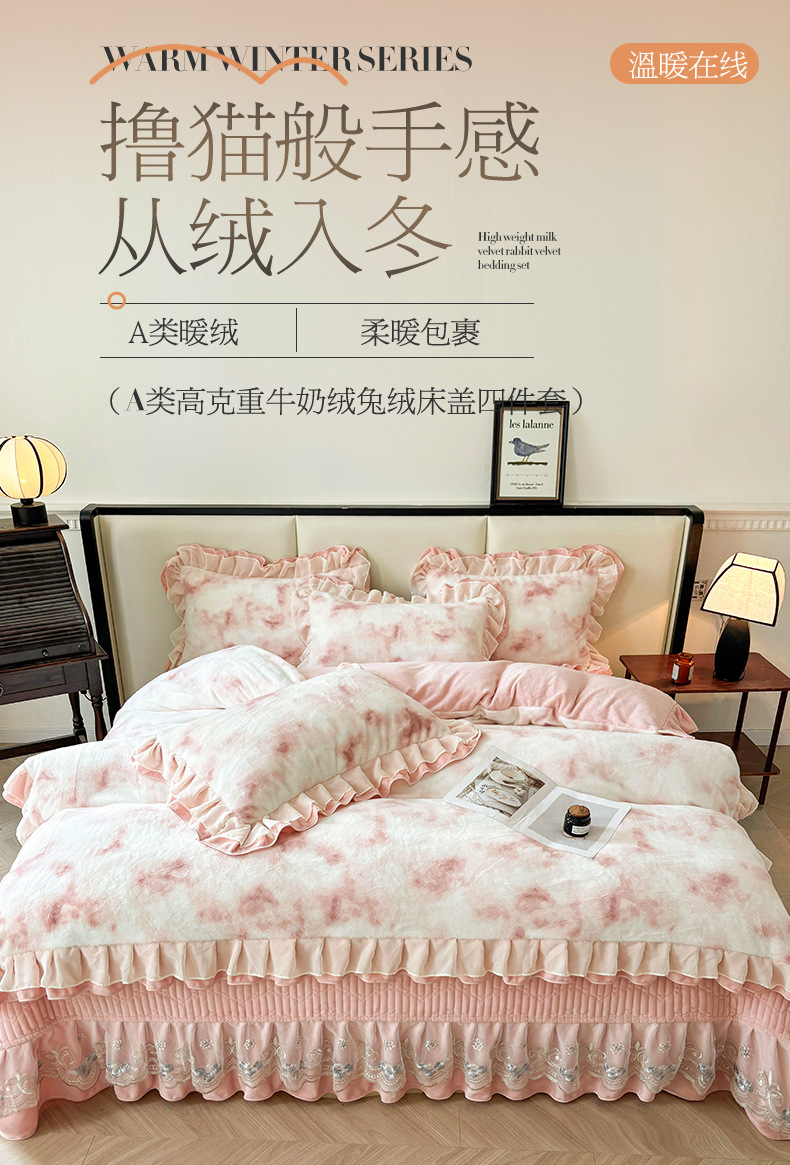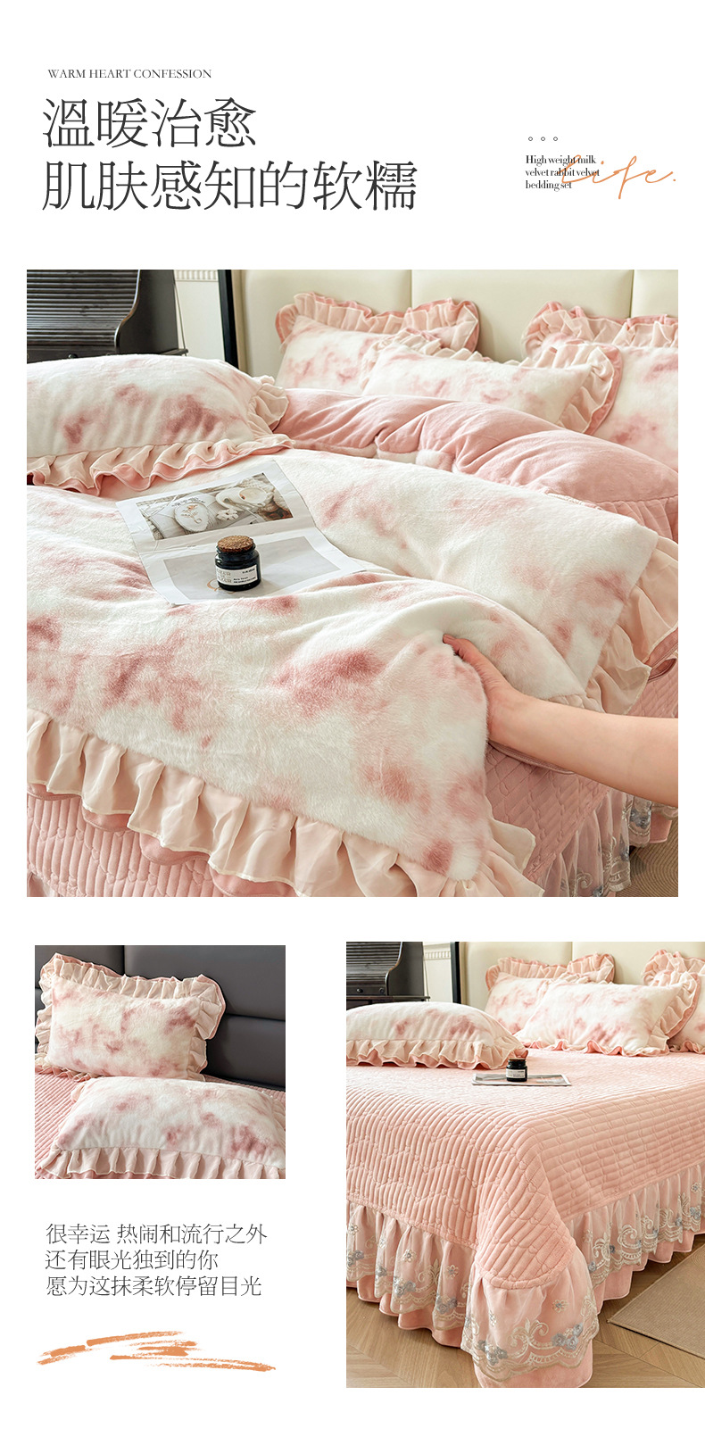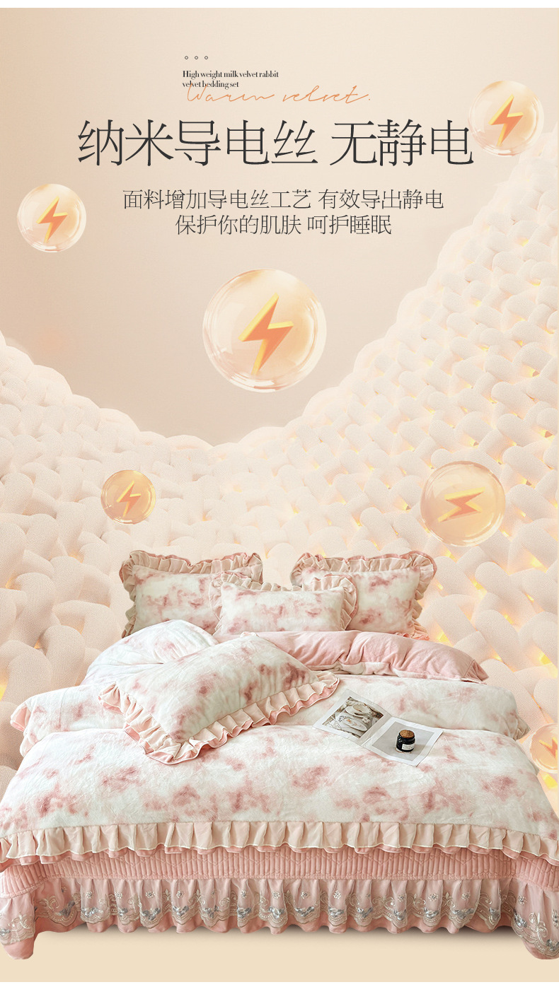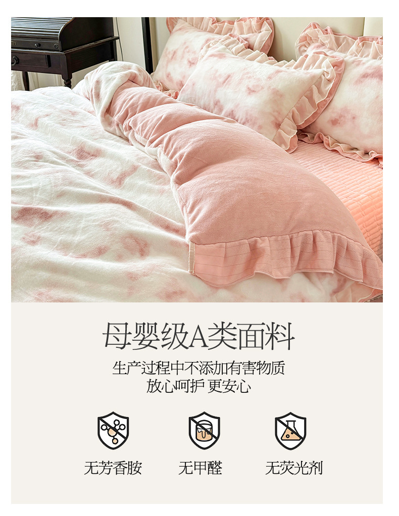 클래스 A 밀크 벨벳 4 피스 퀼트 커버 시트 기모 두꺼운 양면 벨벳 플란넬 침구 침대 스커트