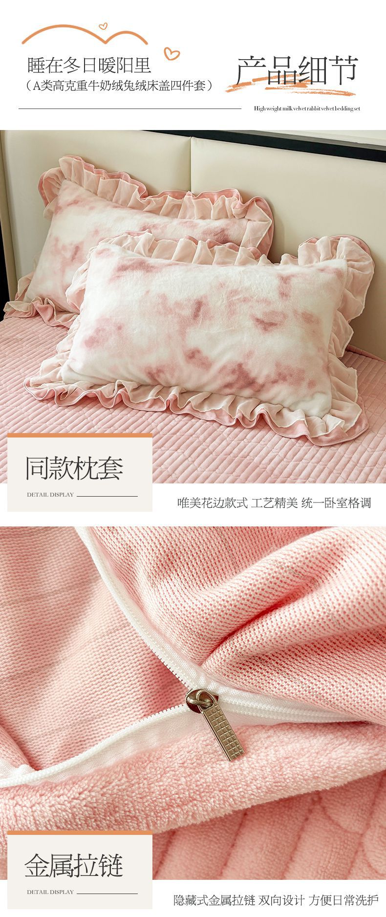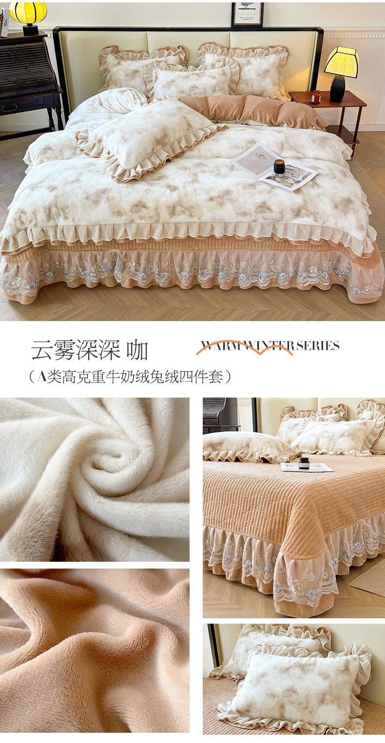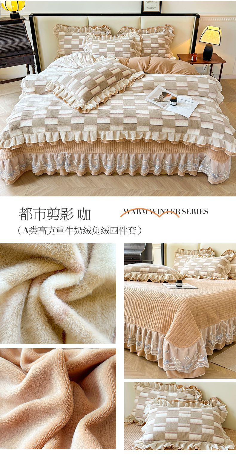 클래스 A 밀크 벨벳 4 피스 퀼트 커버 시트 기모 두꺼운 양면 벨벳 플란넬 침구 침대 스커트스토어 가기