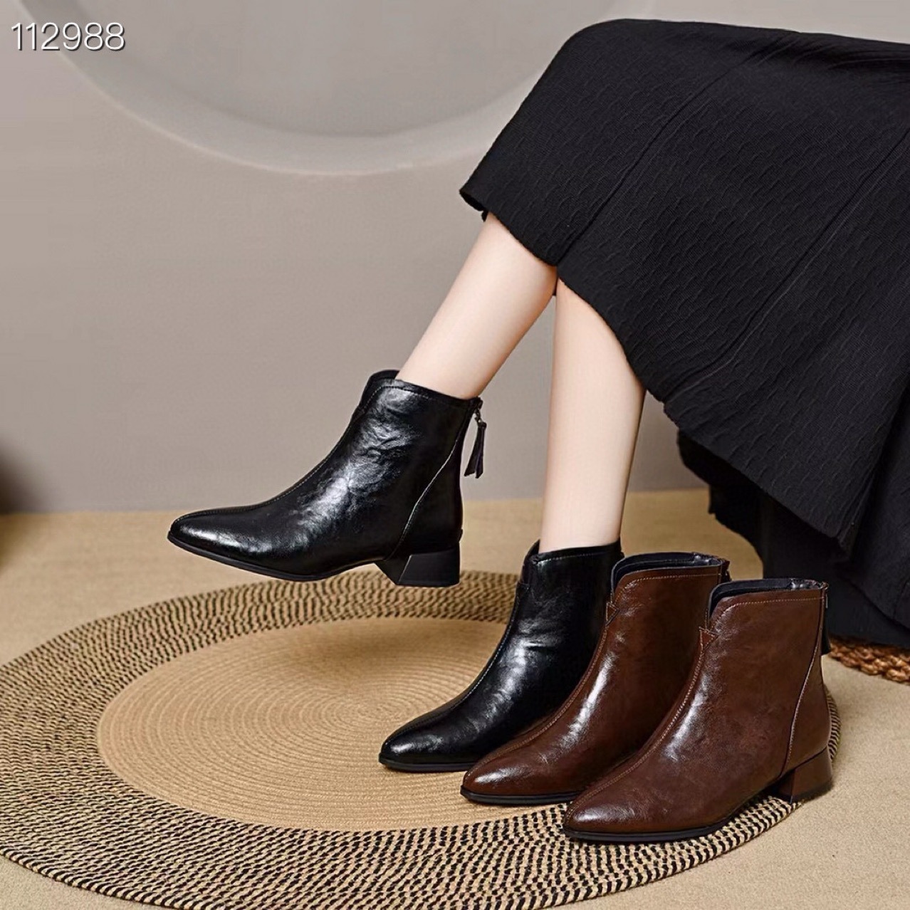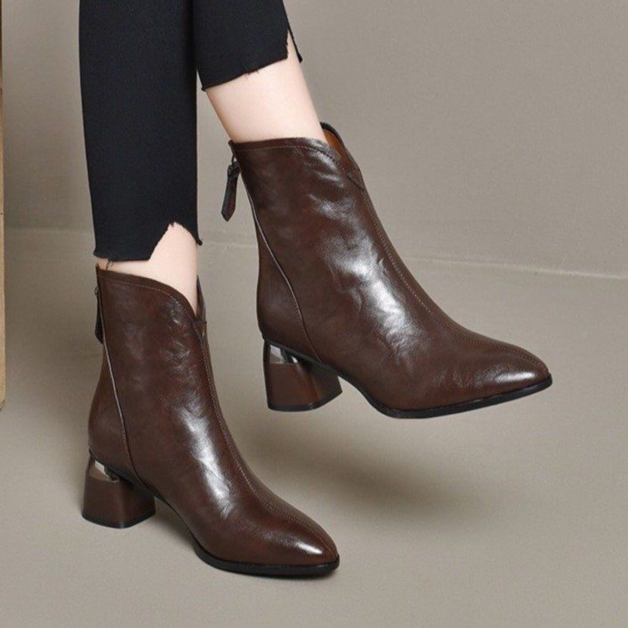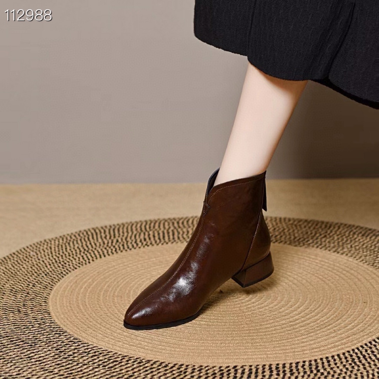 2024 새로운 소프트 가죽 짧은 부츠 두꺼운 힐 기모 가을 겨울 소프트 가죽 뾰족한 마틴 부츠 여성용 코튼 가죽 신발스토어 가기