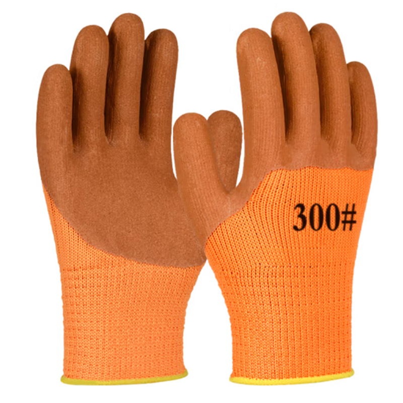 Helper Shi 300 # 면 단면 접착 장갑 딥 코팅 된 양모 장갑 내마모성 내한성 두껍게 한 다크 브라운 1 쌍