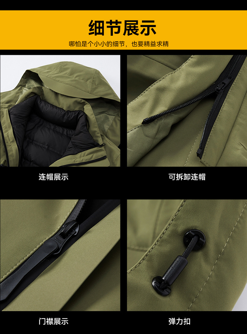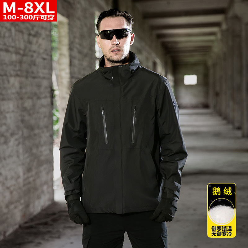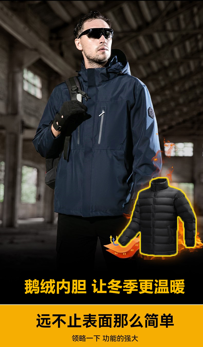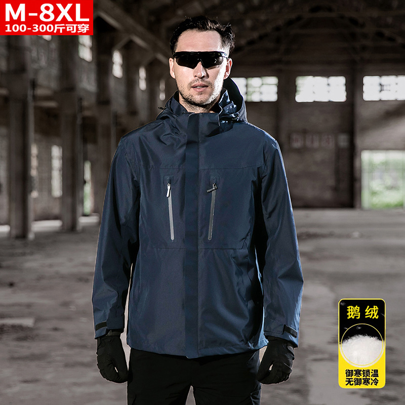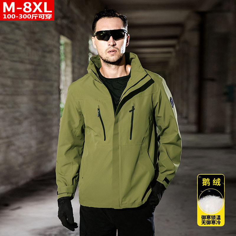겨울 트렌디 한 품질의 남성 3 대 1 후드 재킷 통통한 크기의 내한성 따뜻한 거위 다운 라이너 2 피스 재킷스토어 가기