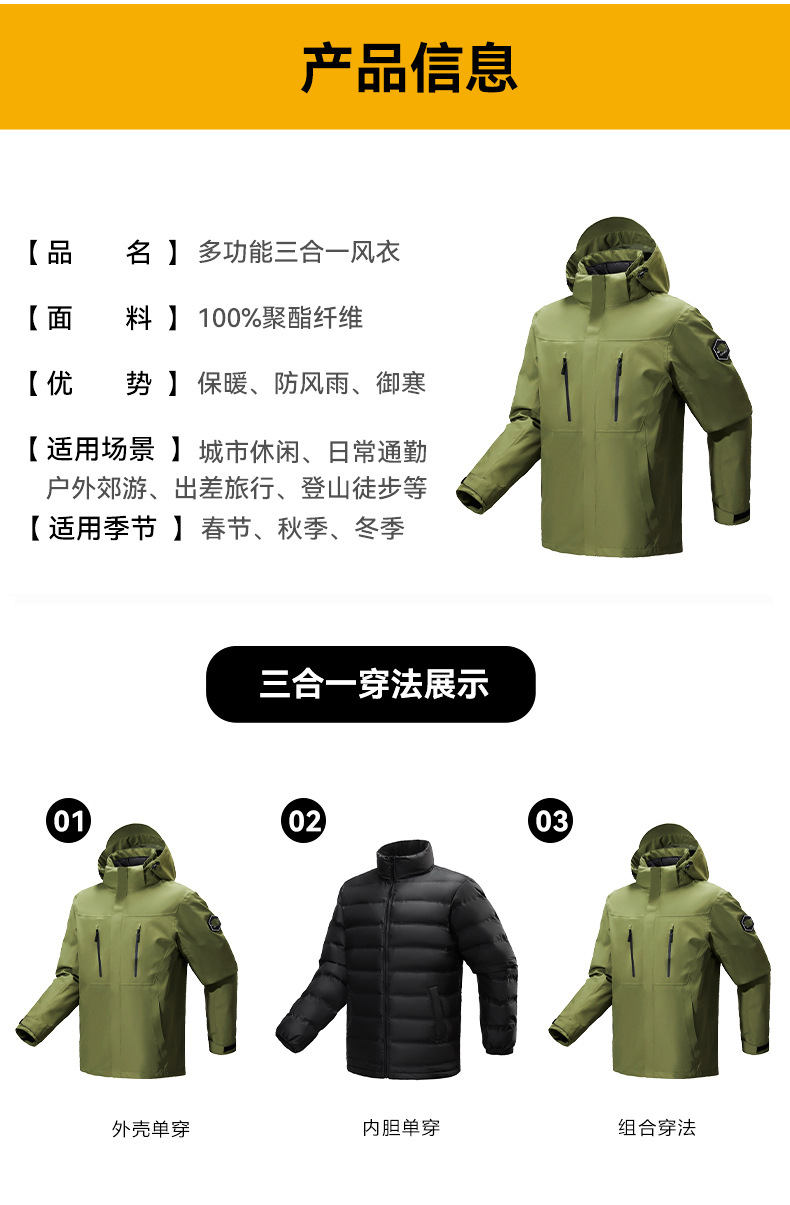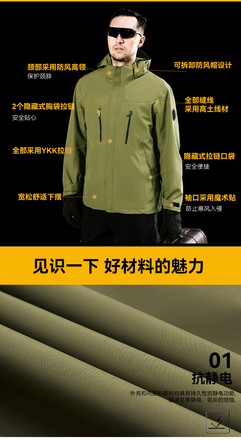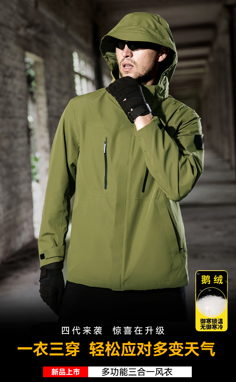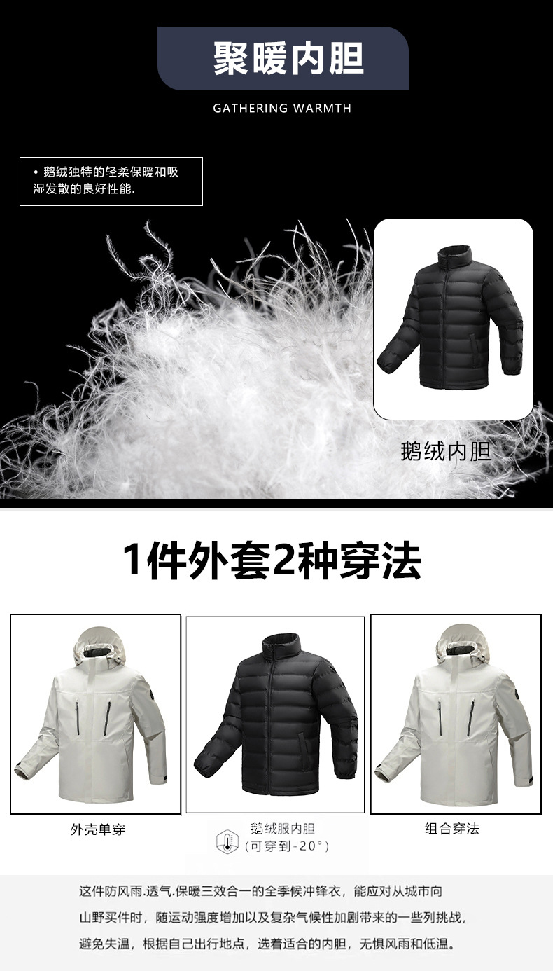 겨울 트렌디 한 품질의 남성 3 대 1 후드 재킷 통통한 크기의 내한성 따뜻한 거위 다운 라이너 2 피스 재킷스토어 가기