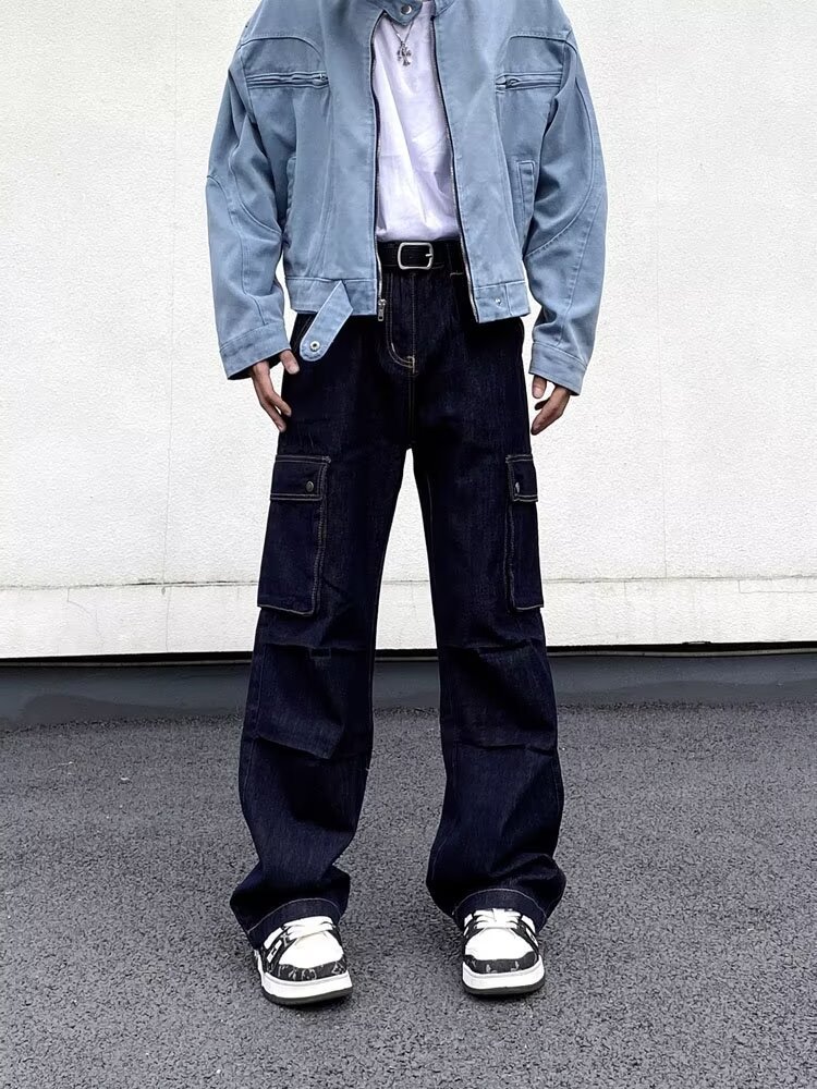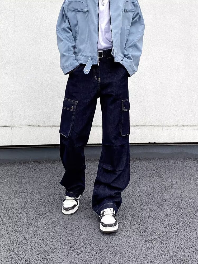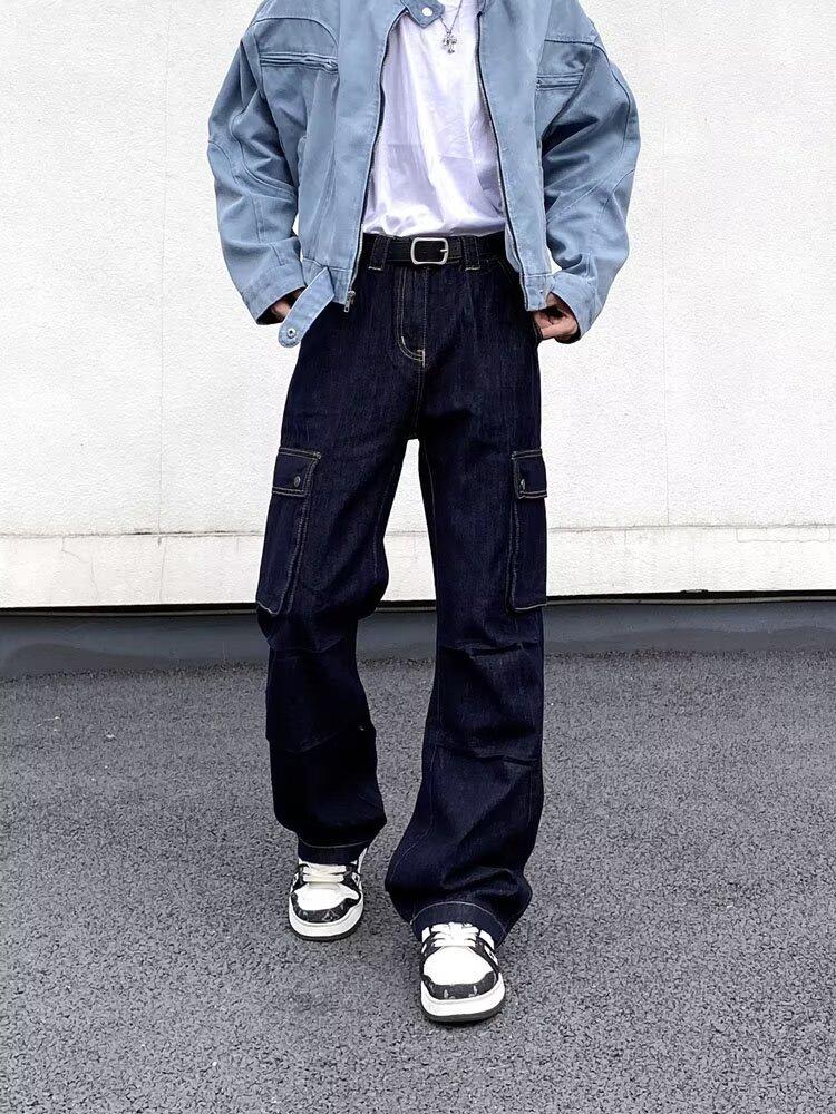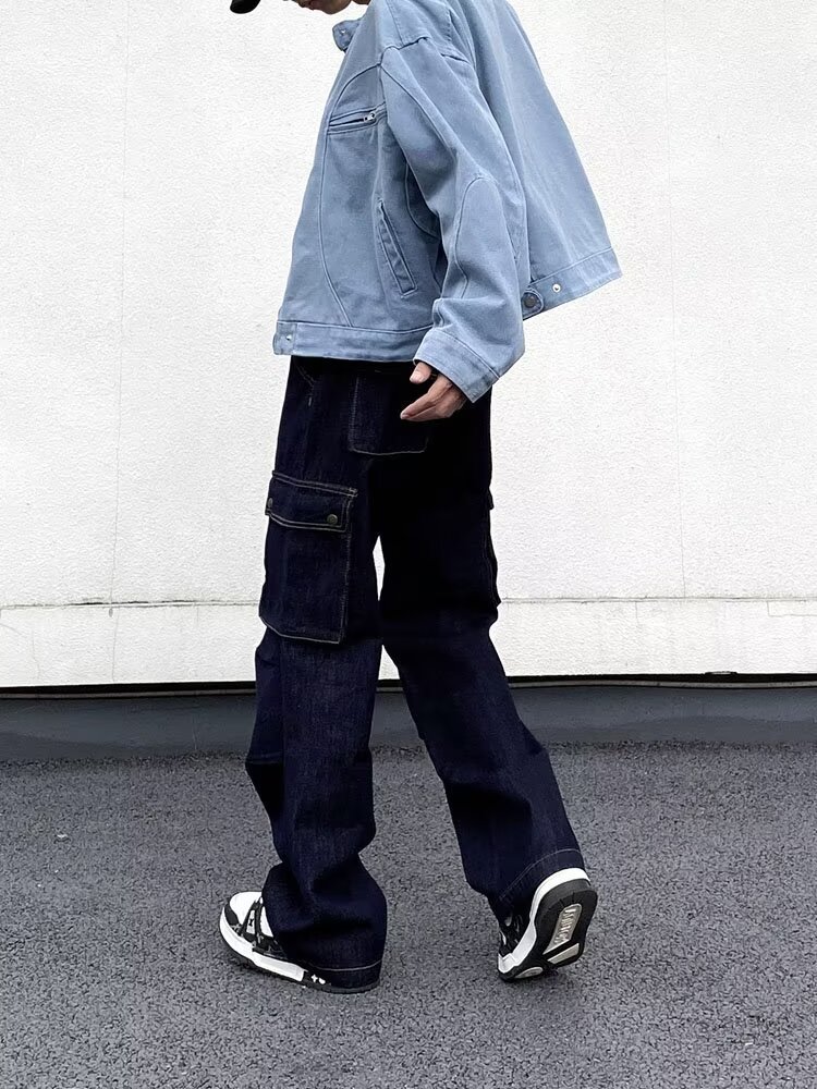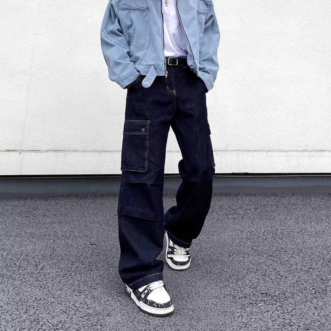 미국식 바이브 하이 스트리트 레트로 멀티 포켓 카고 청바지 남성 봄과 가을 느슨한 스트레이트 올 매치 캐주얼 트렌디 팬츠