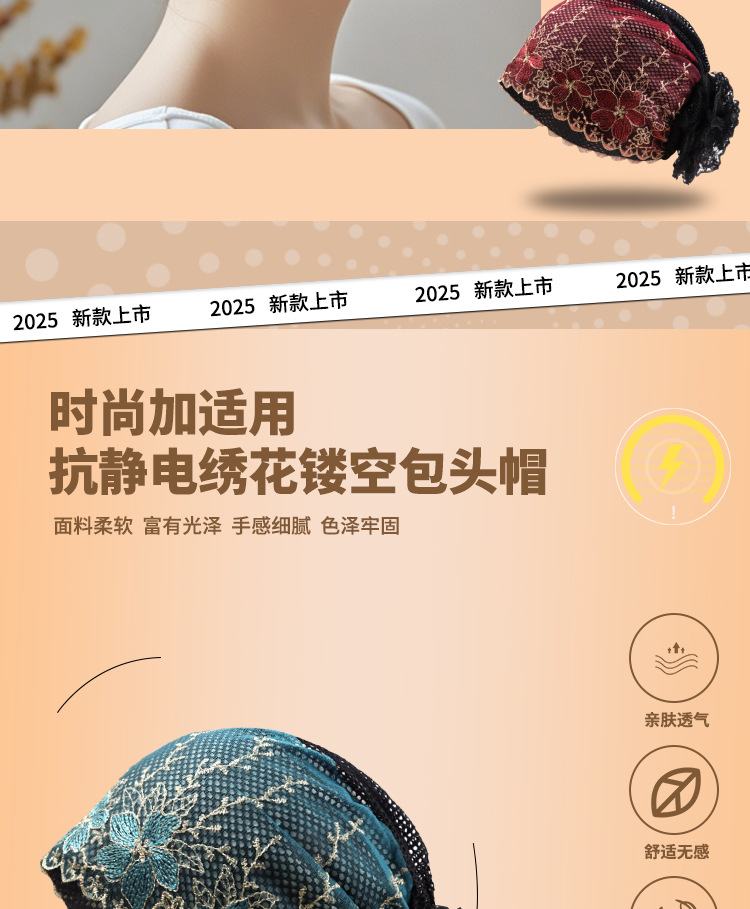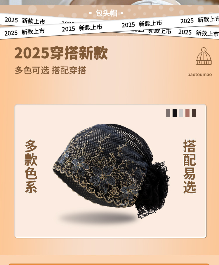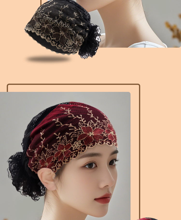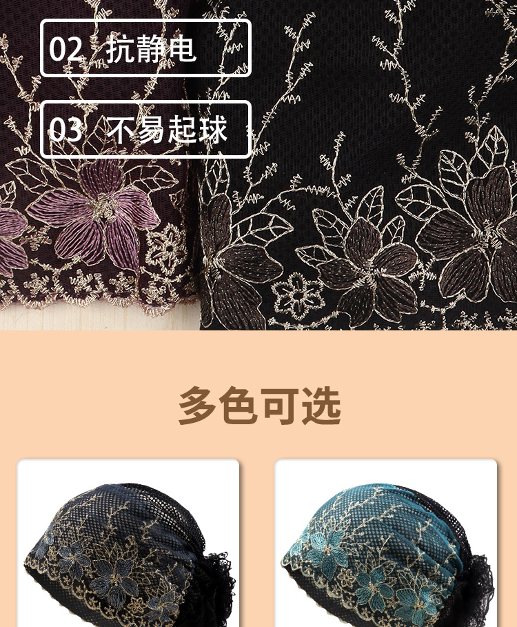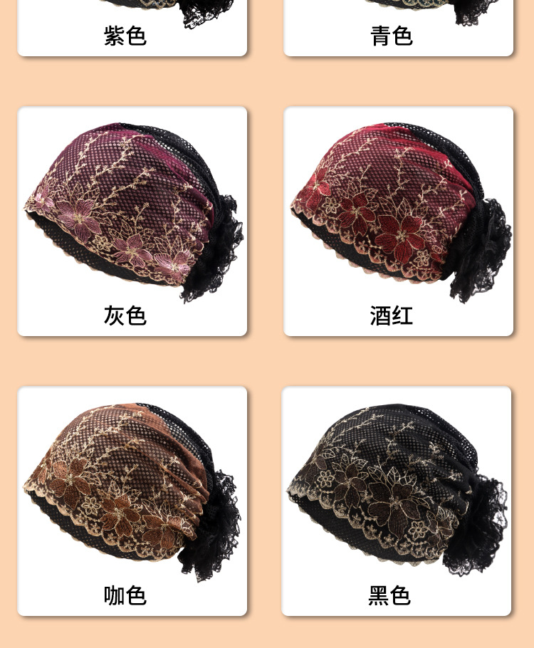 외국식 사계절 자수 화이트 헤어 플라워 바오터 비즈 올 매치 패션 레이스 어머니 모자 편리한 새 머리 스카프
