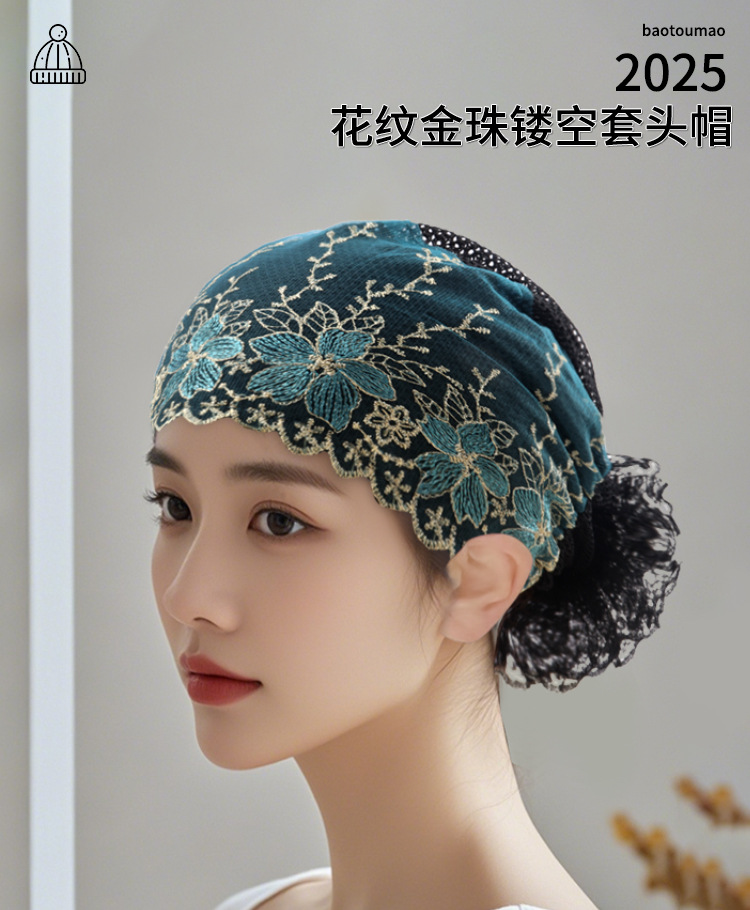 외국식 사계절 자수 화이트 헤어 플라워 바오터 비즈 올 매치 패션 레이스 어머니 모자 편리한 새 머리 스카프스토어 가기