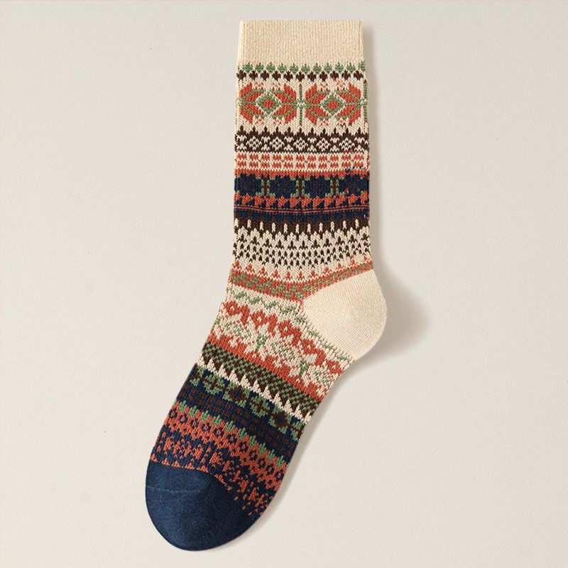2024 양말 여성의 가을과 겨울 뼈없는 민족 스타일 더블 웨이 더블 바늘 버켄 스톡 신발 여성용 양말 트렌디 콤비드 코튼 여성용 양말