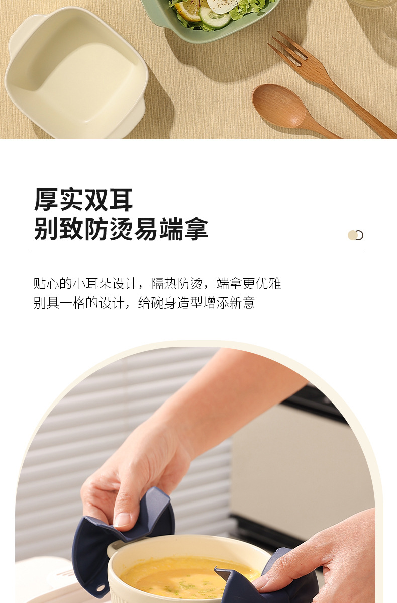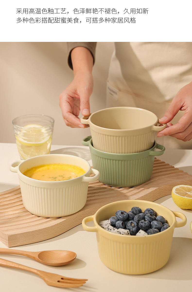 Shufulei 베이킹 보울 에어 프라이어 세라믹 더블 이어 보울 에그 커스터드 김이 나는 그릇 물 김이 나는 계란 그릇 아기 Qin Xuan