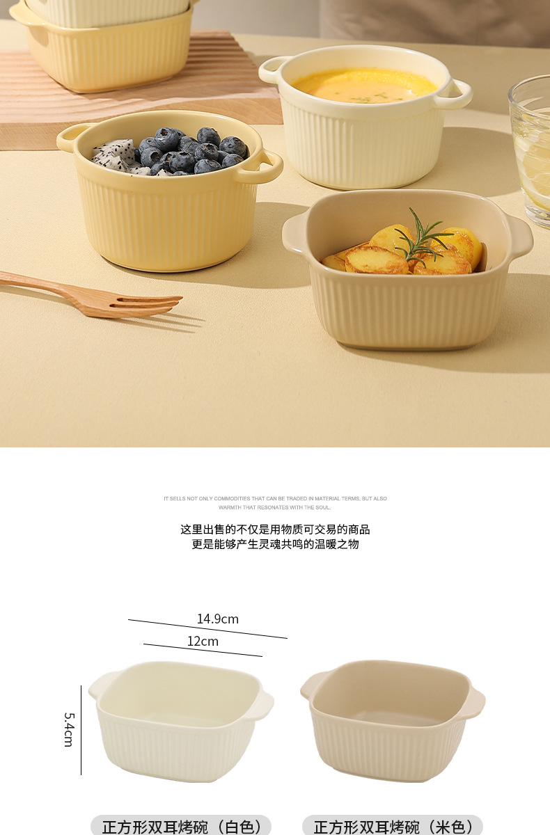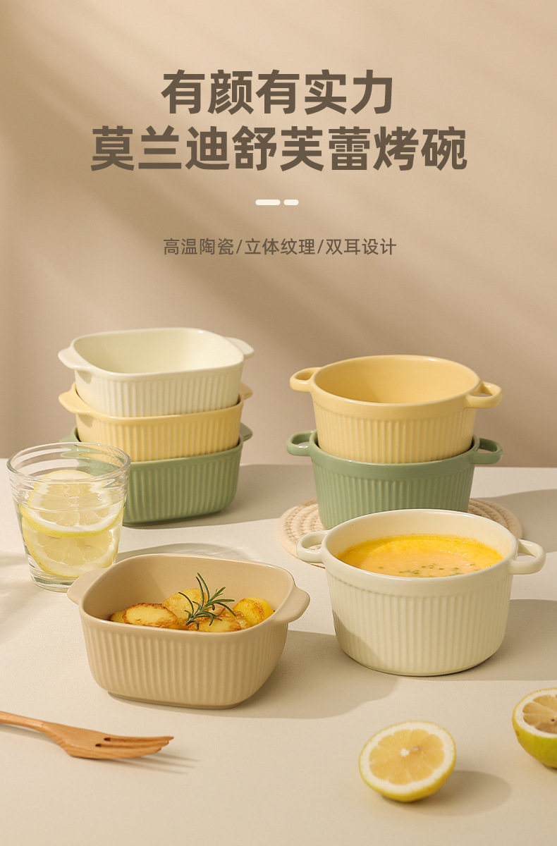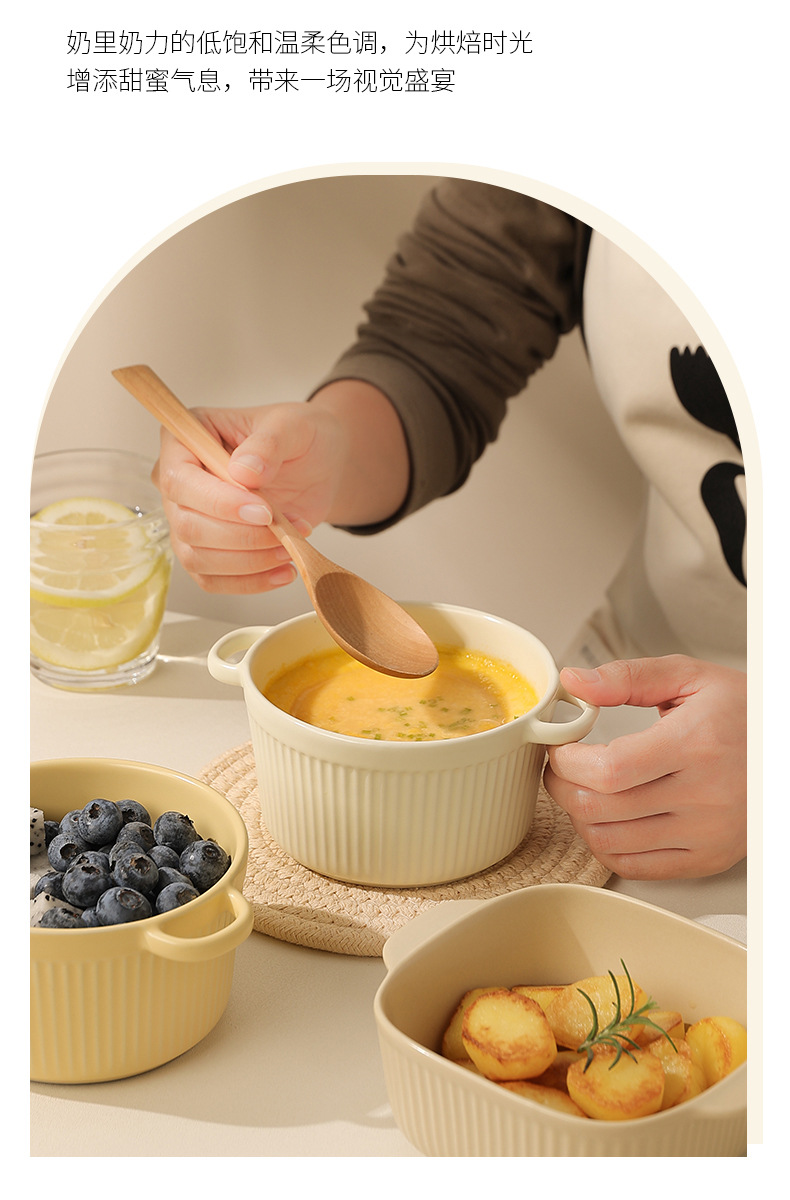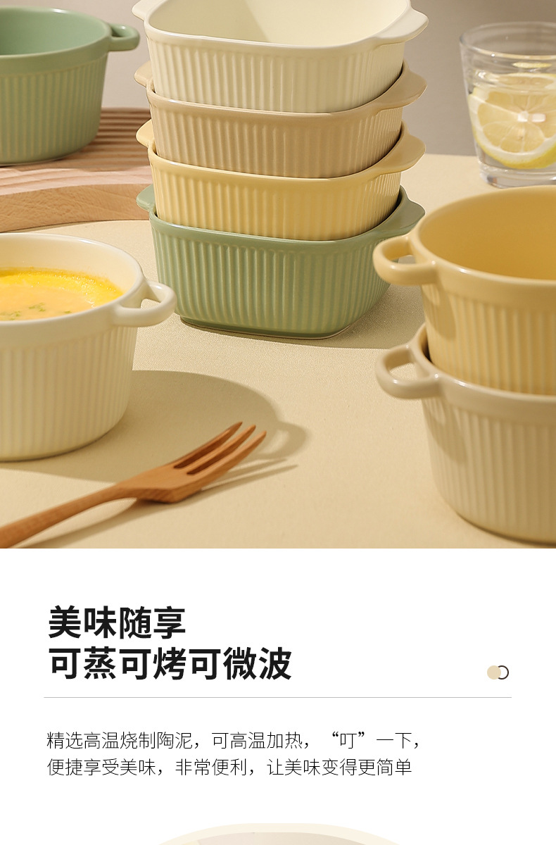 Shufulei 베이킹 보울 에어 프라이어 세라믹 더블 이어 보울 에그 커스터드 김이 나는 그릇 물 김이 나는 계란 그릇 아기 Qin Xuan스토어 가기