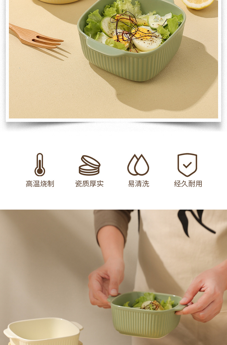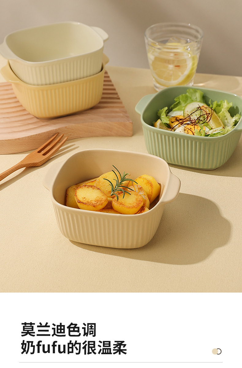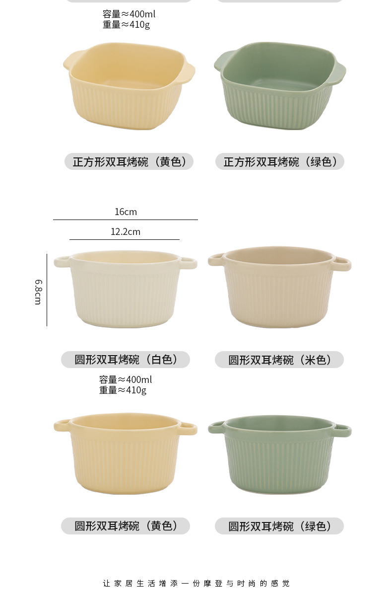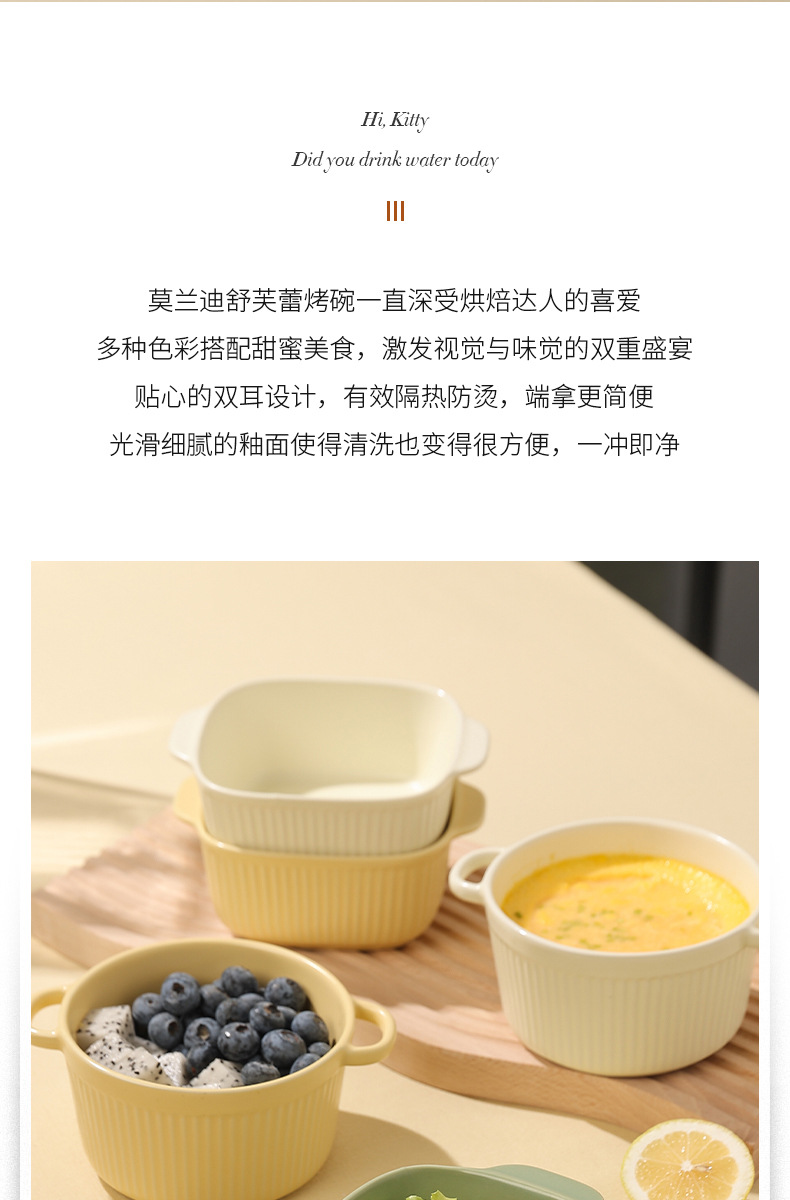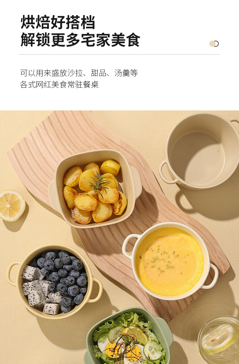 Shufulei 베이킹 보울 에어 프라이어 세라믹 더블 이어 보울 에그 커스터드 김이 나는 그릇 물 김이 나는 계란 그릇 아기 Qin Xuan스토어 가기