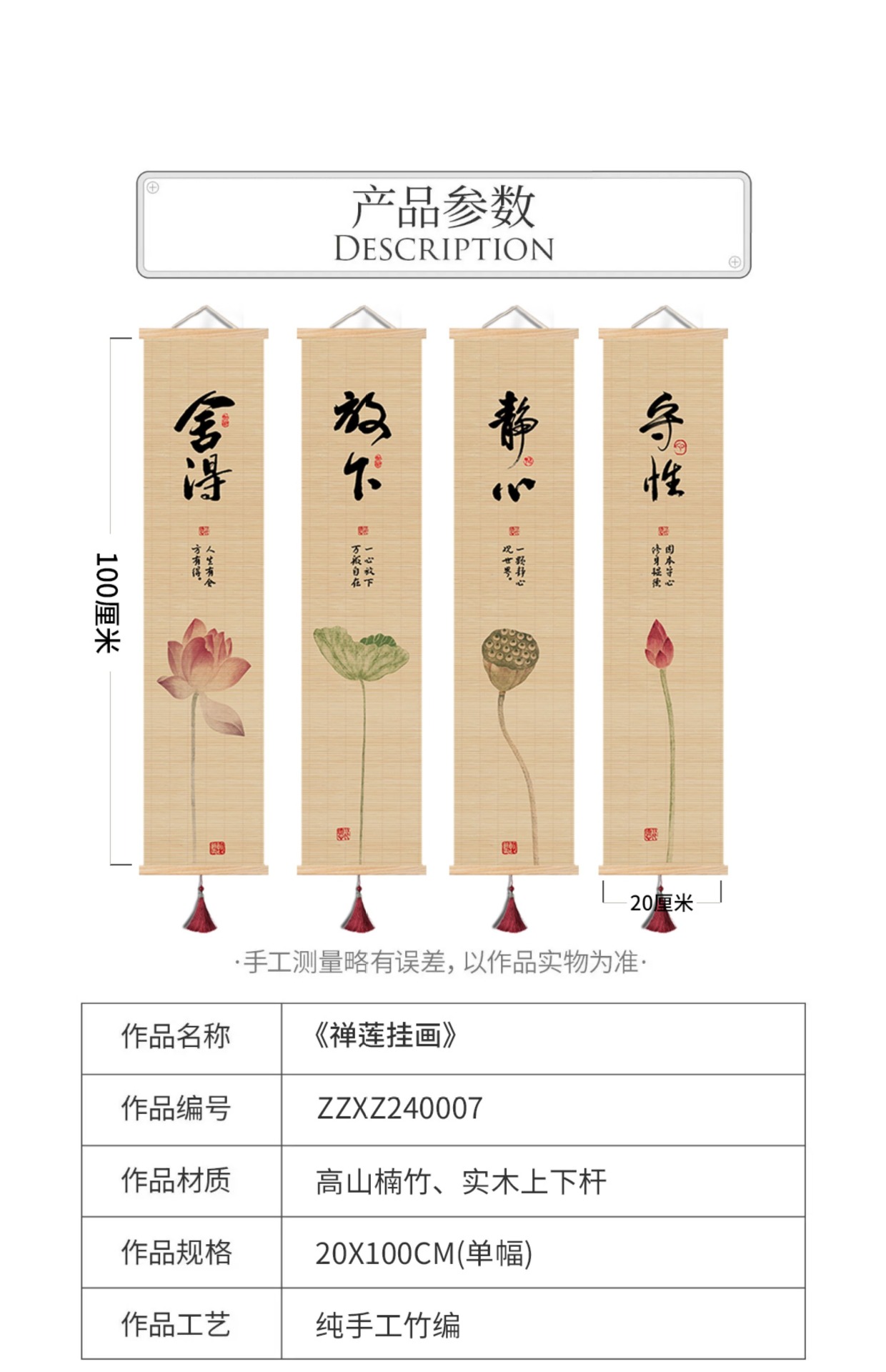 • 폭 35 * 높이 140 (cm - 독립 - 흔적 없는 못 + 끈 + 술 + 끈 포함)♜