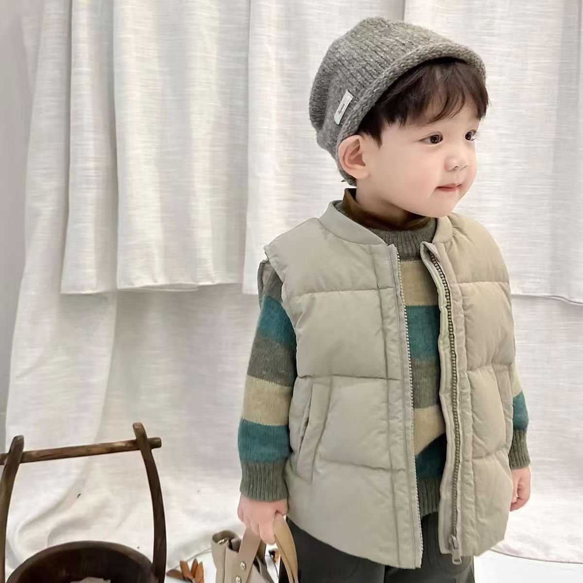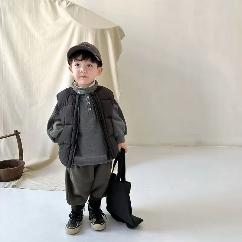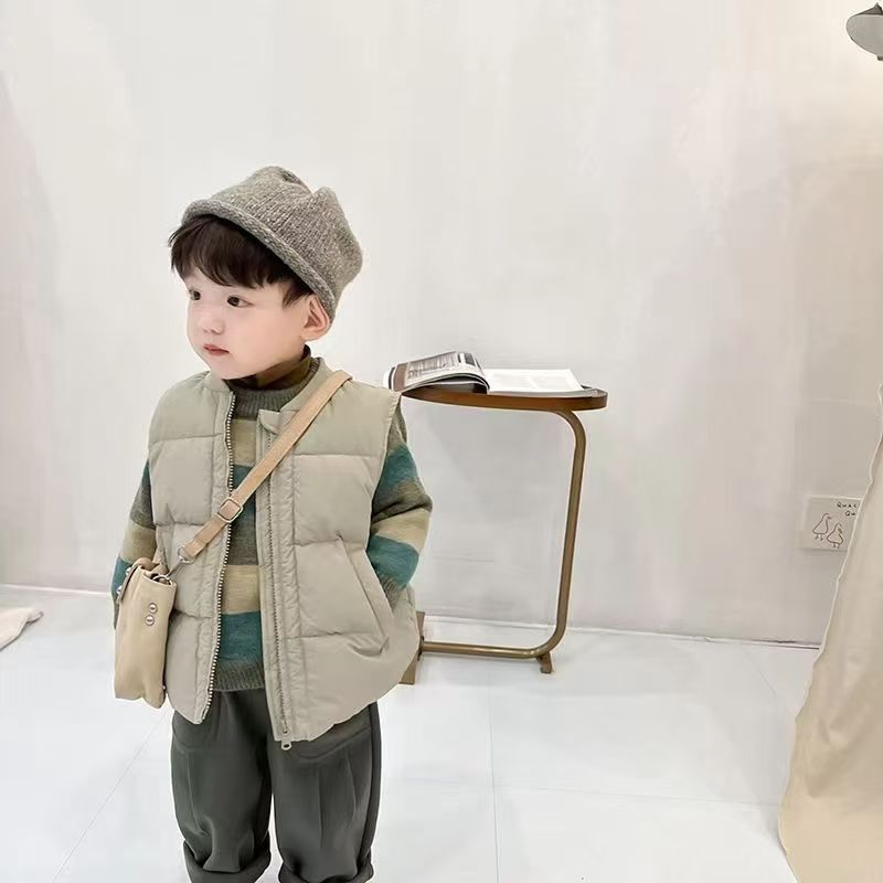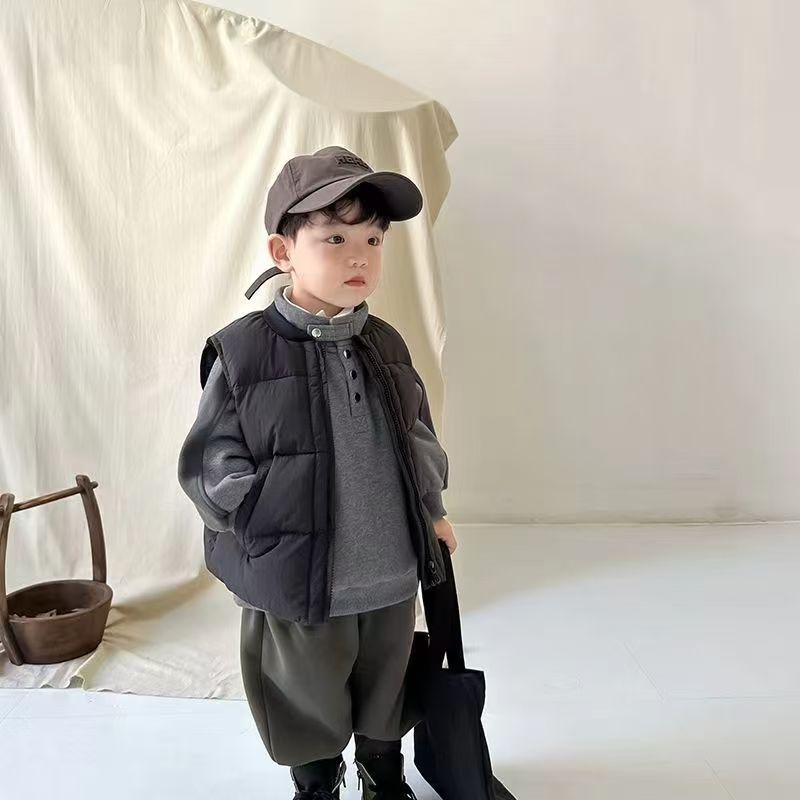 남학생 다운 코튼 조끼 2024 새로운 가을 및 겨울 아동복 아동용 외면 패딩 코트 겨울 옷 아기의 서양식 말 클립 트렌디스토어 가기