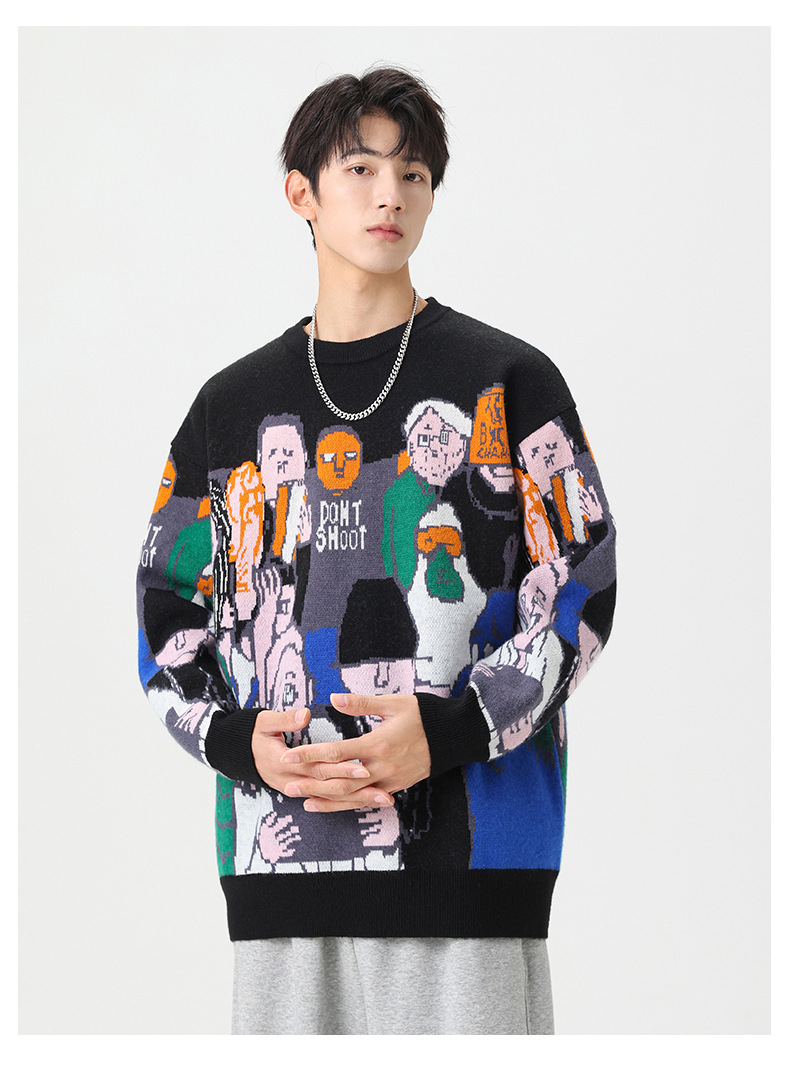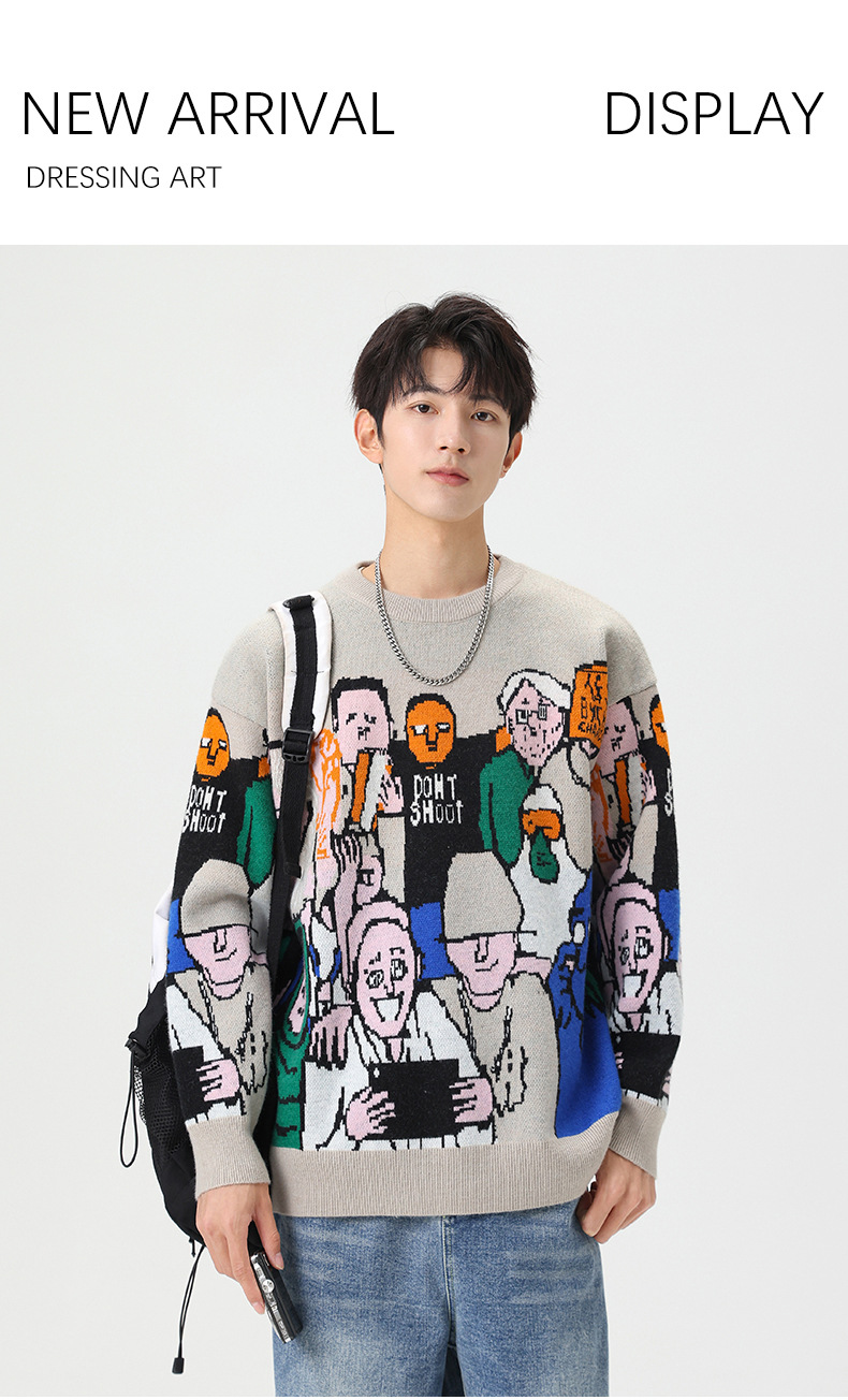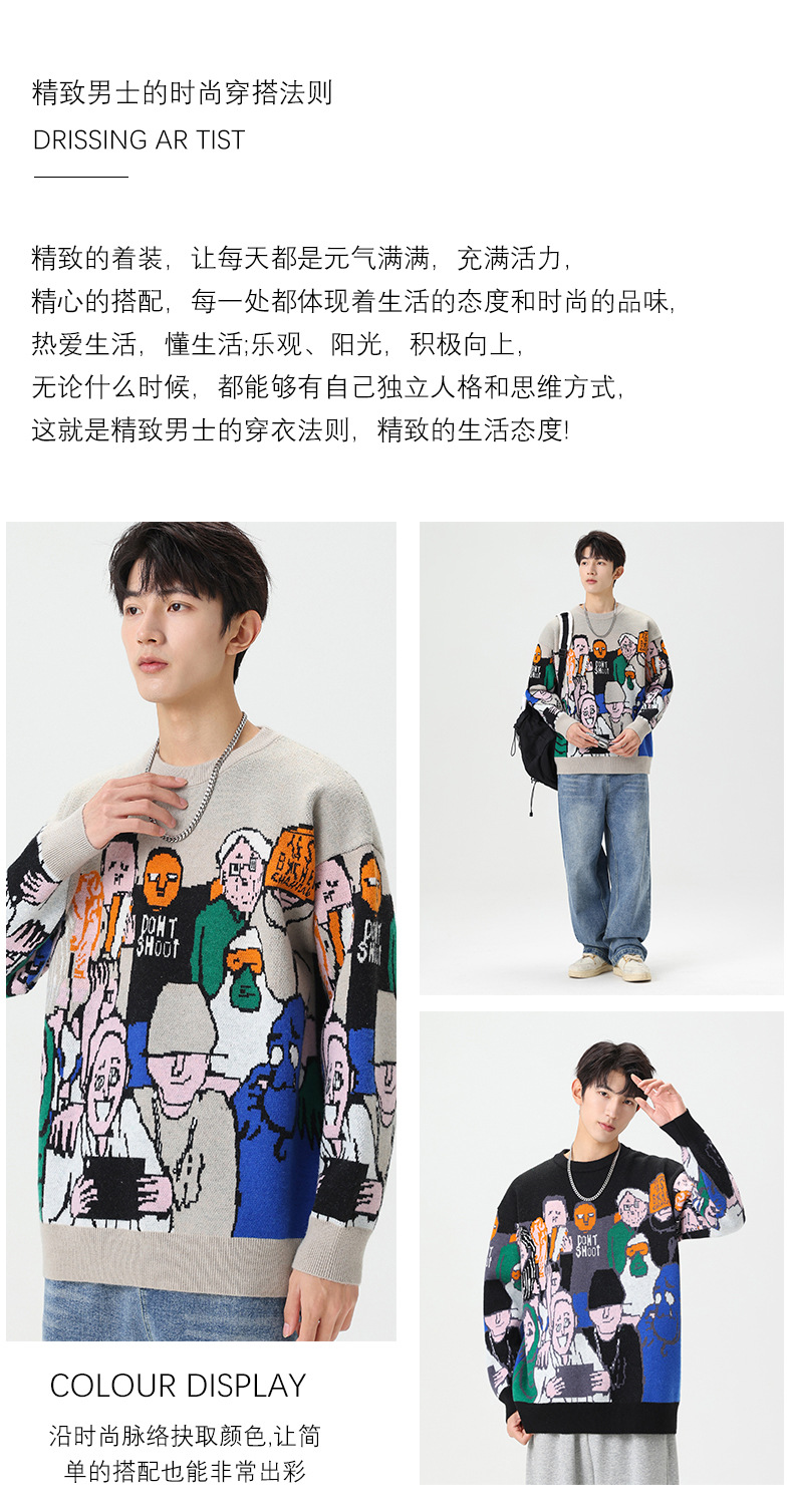 아마존 해외 무역 도매 2025 가을 패션 라운드넥 니트 스웨터 남성용스토어 가기
