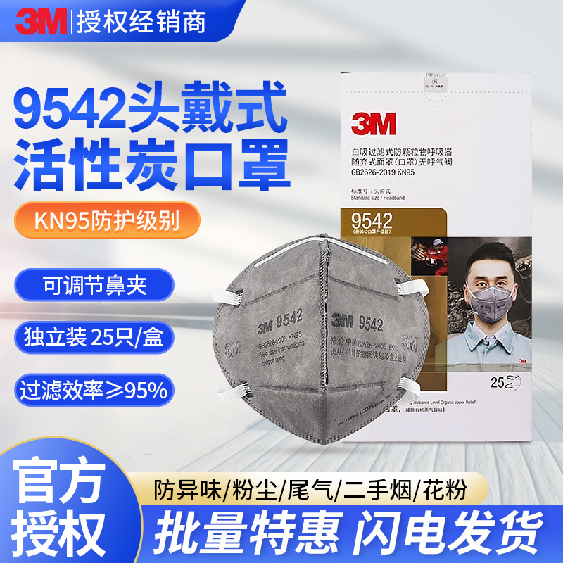 3M9542 활성탄 마스크 반대로 장식 포름알데히드 냄새 산업 먼지 머리 장착 KN95 일회용 마스크스토어 가기