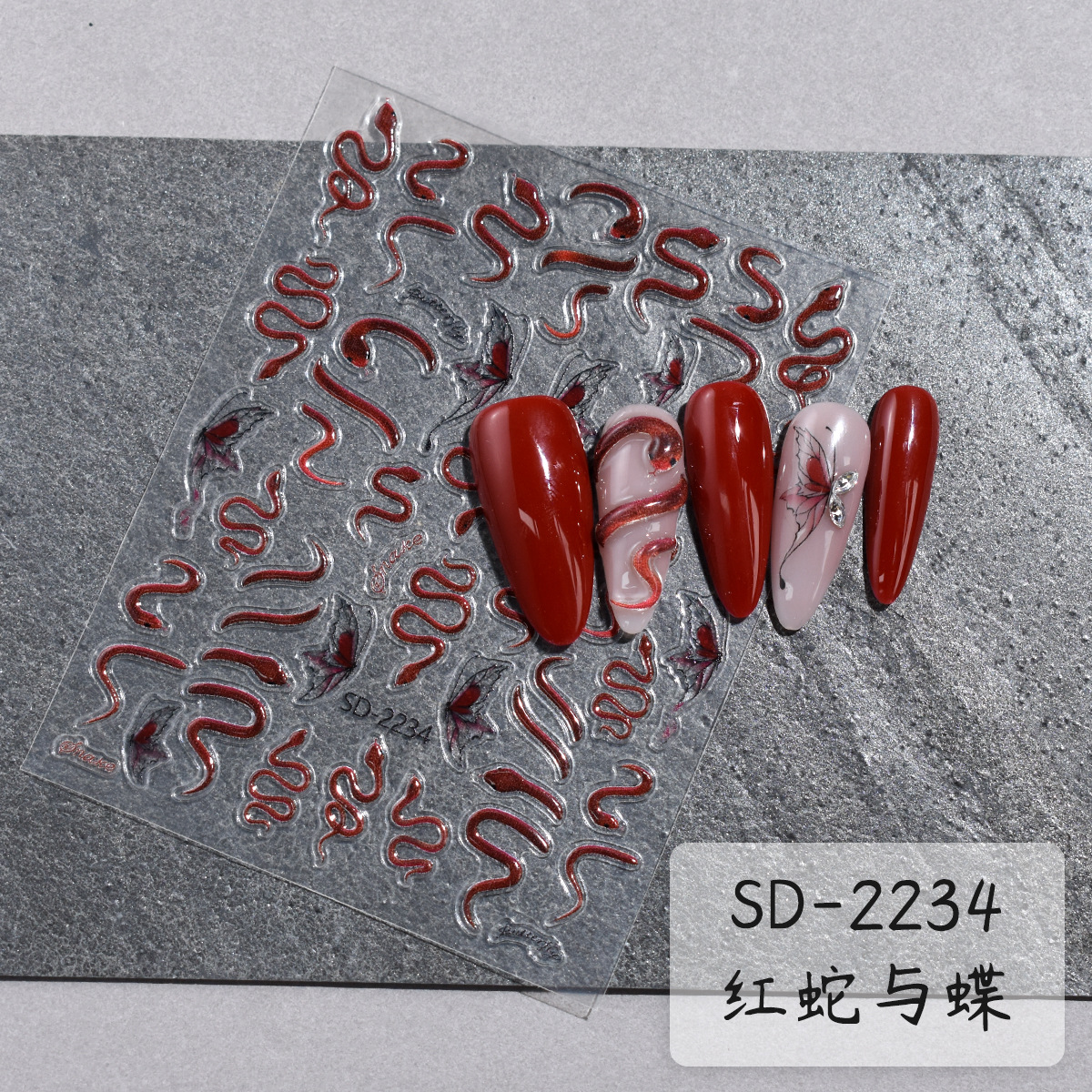 새해 스네이크 네일 아트 스티커 풍부하고 정직한 작은 빨간 뱀 구호 다크 쿨 블랙 스네이크 백 접착제 네일 스티커 장식 제품 인터넷 유명인 폭발스토어 가기