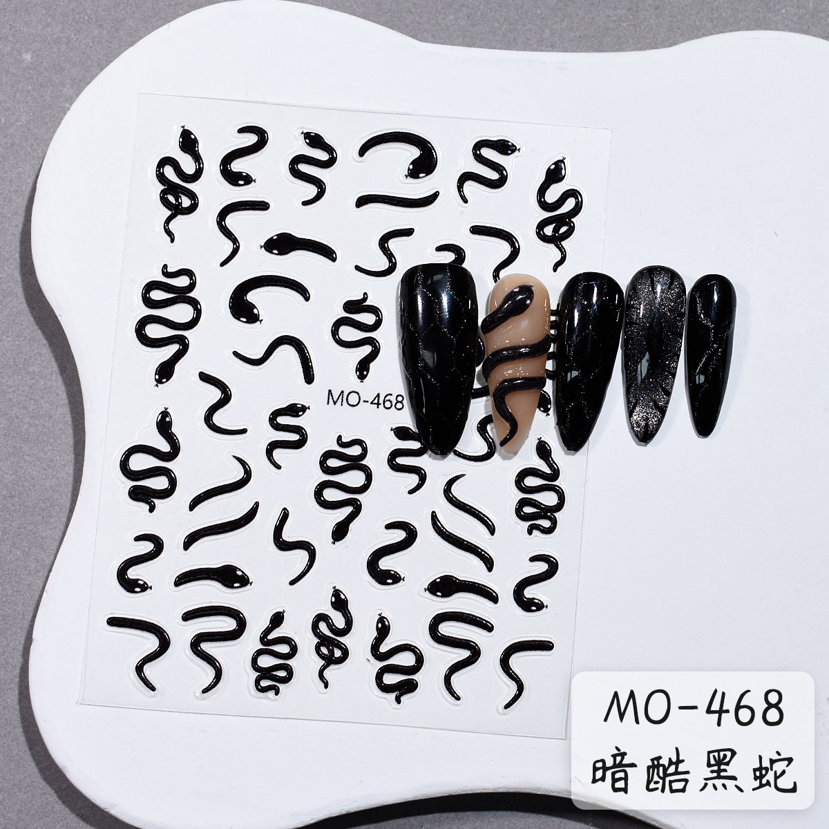 새해 스네이크 네일 아트 스티커 풍부하고 정직한 작은 빨간 뱀 구호 다크 쿨 블랙 스네이크 백 접착제 네일 스티커 장식 제품 인터넷 유명인 폭발
