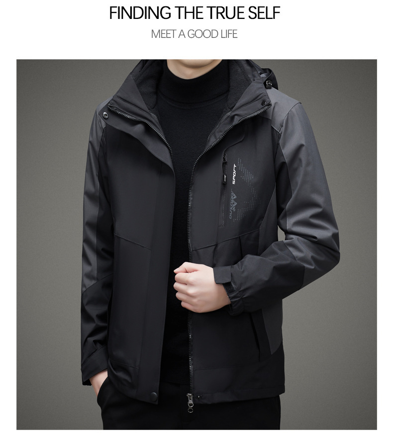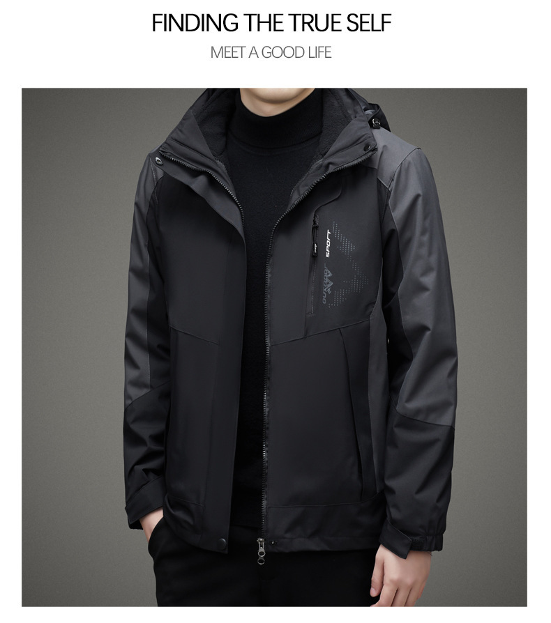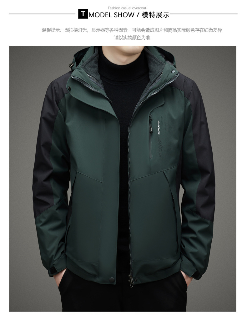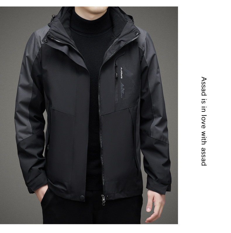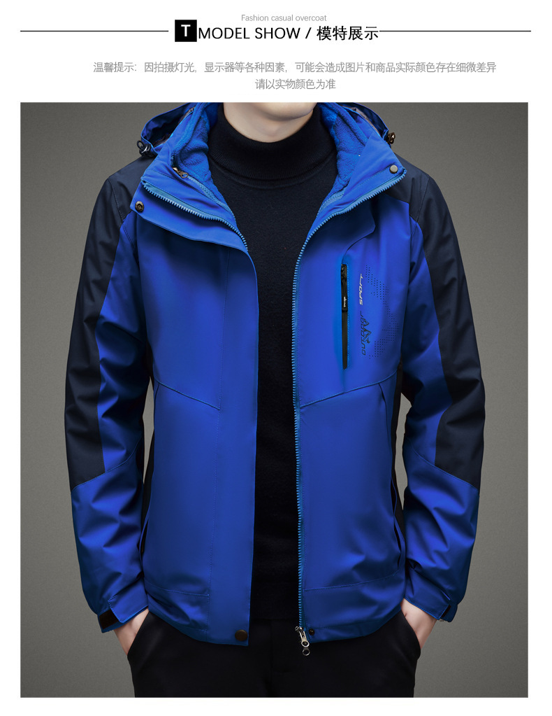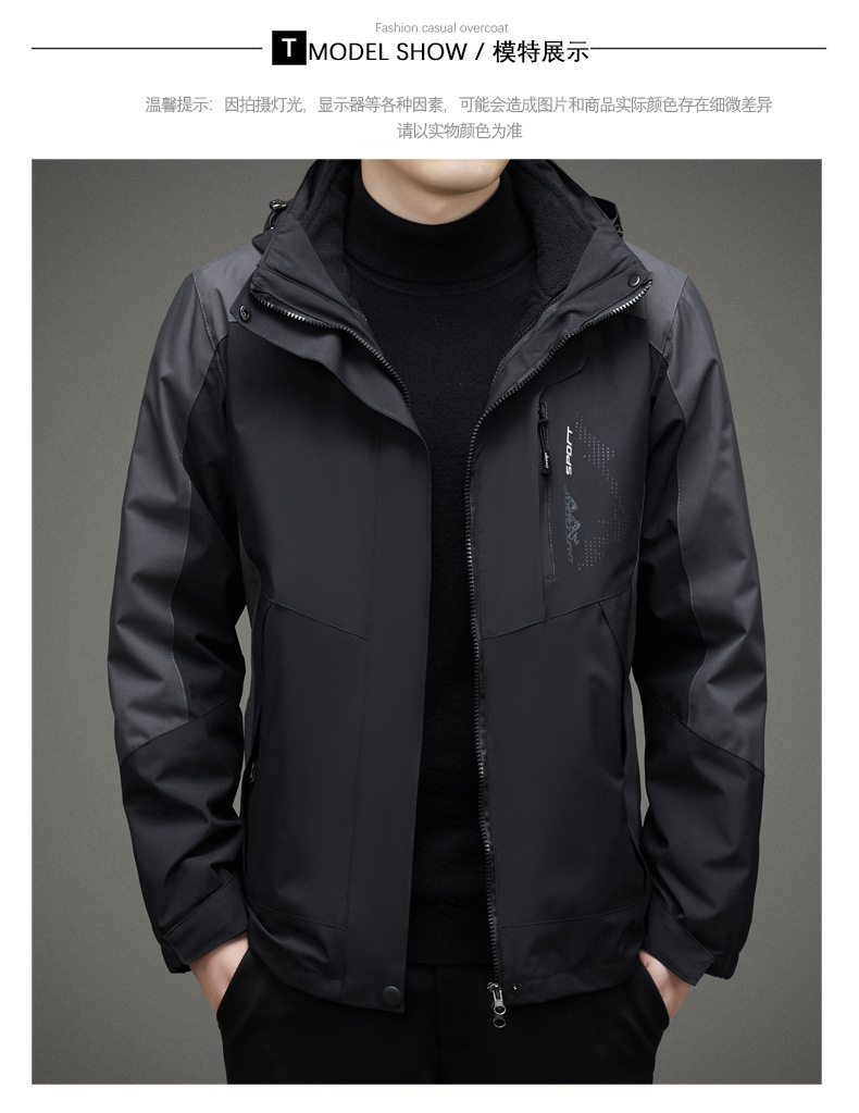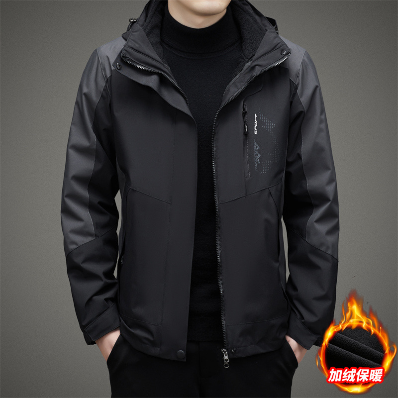 남자 가을과 겨울 새로운 3 대 1 기모 재킷 코트 청소년 캐주얼 야외 후드 스포츠 의류스토어 가기