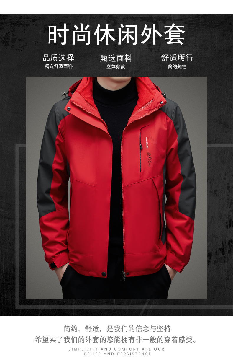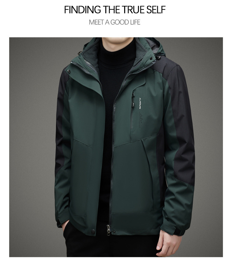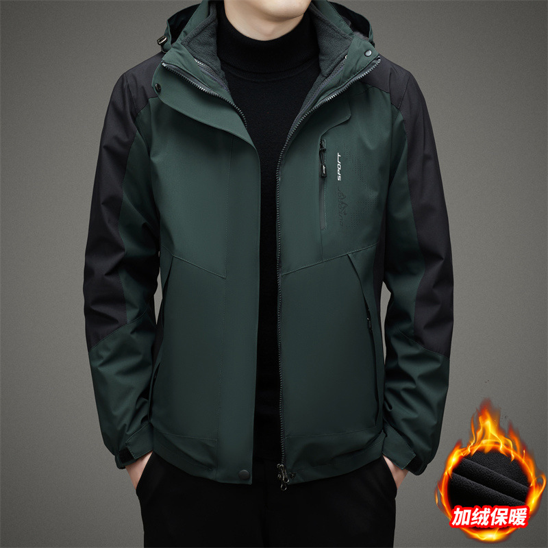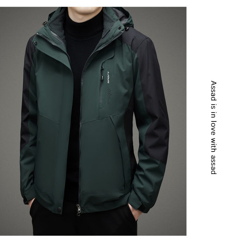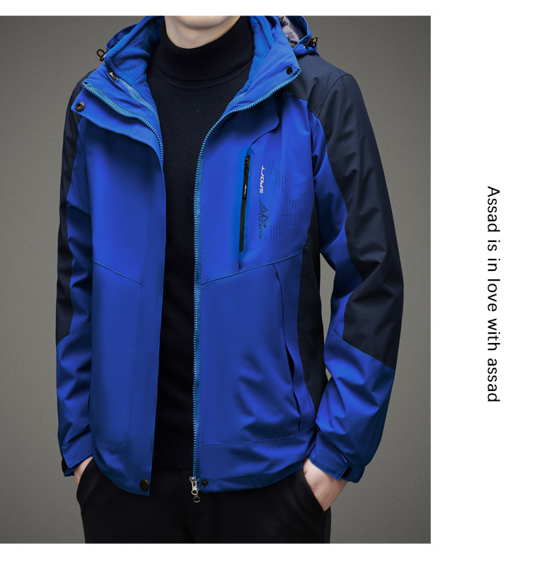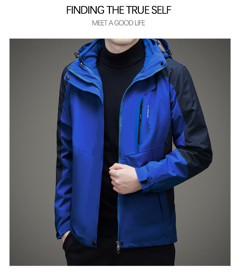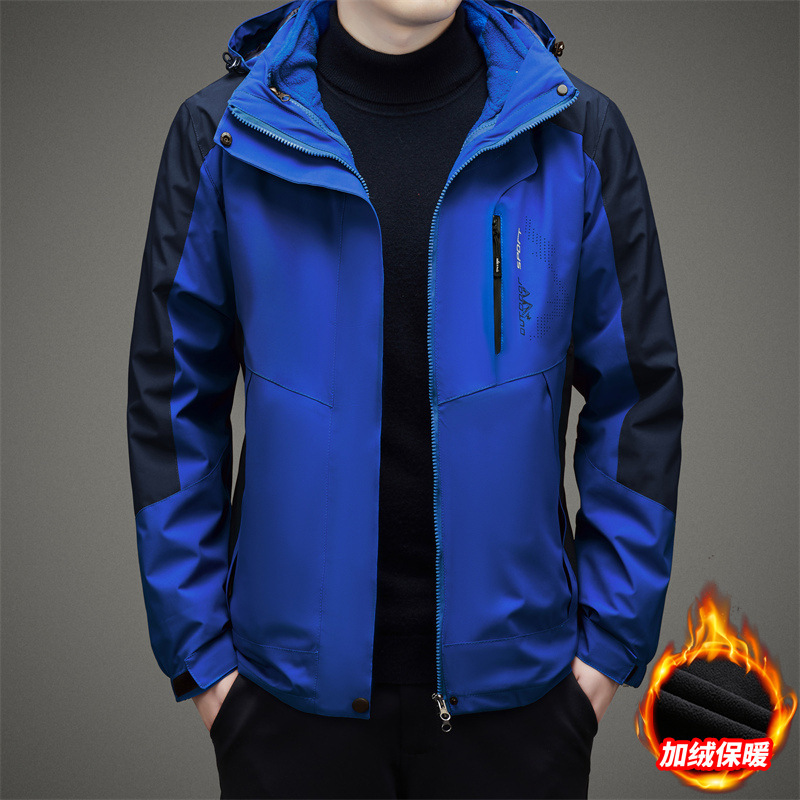 남자 가을과 겨울 새로운 3 대 1 기모 재킷 코트 청소년 캐주얼 야외 후드 스포츠 의류스토어 가기