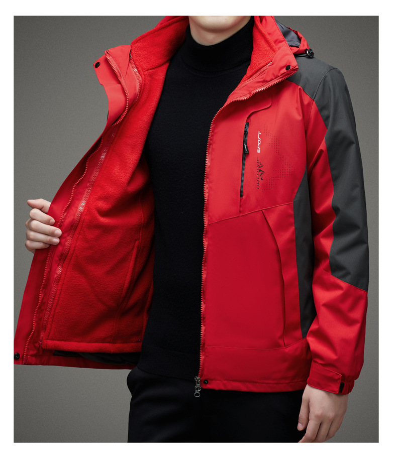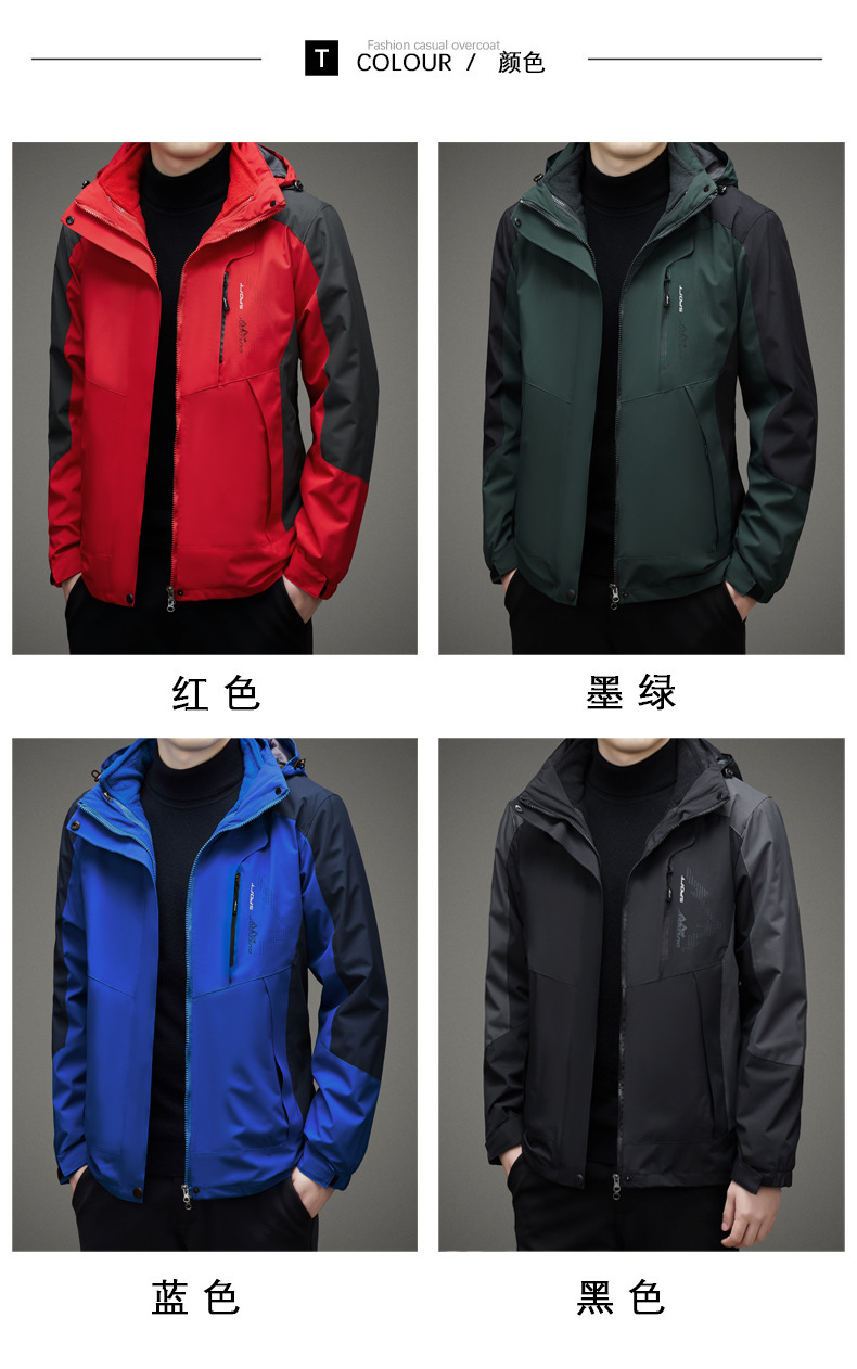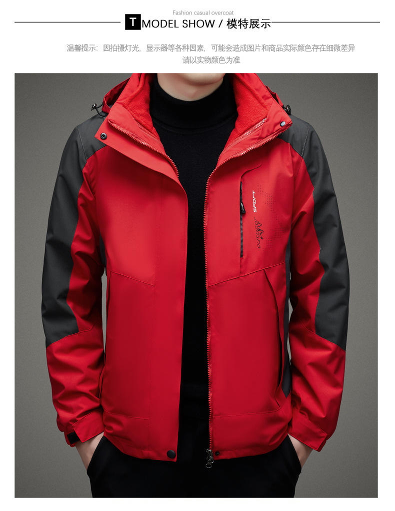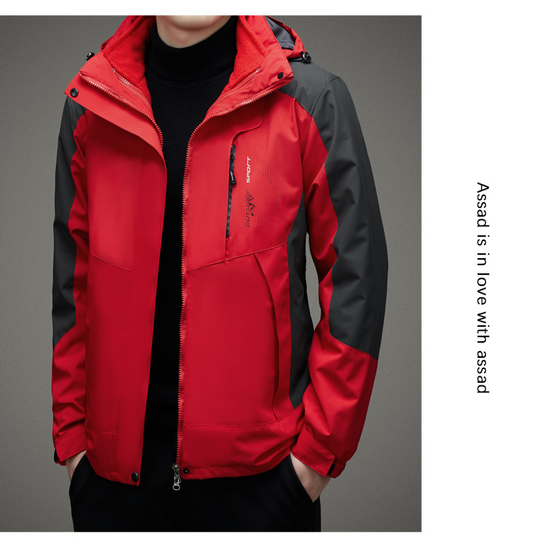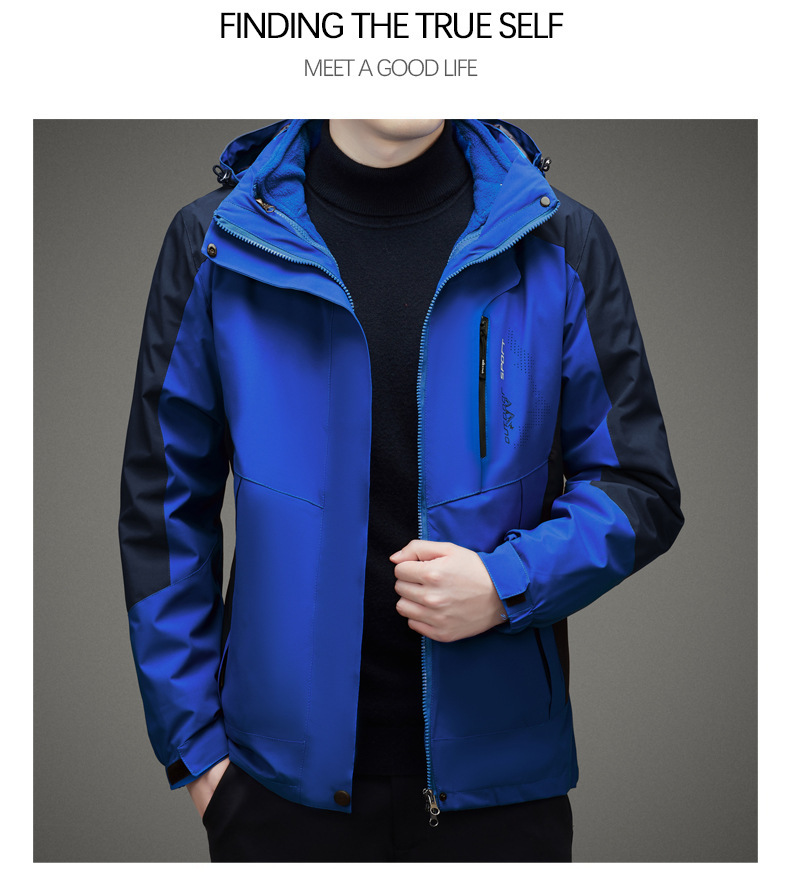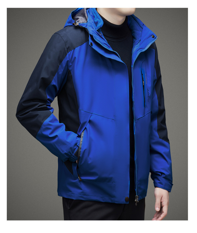 남자 가을과 겨울 새로운 3 대 1 기모 재킷 코트 청소년 캐주얼 야외 후드 스포츠 의류스토어 가기