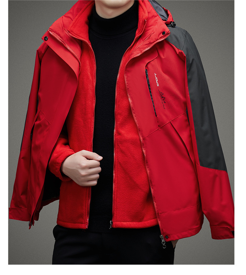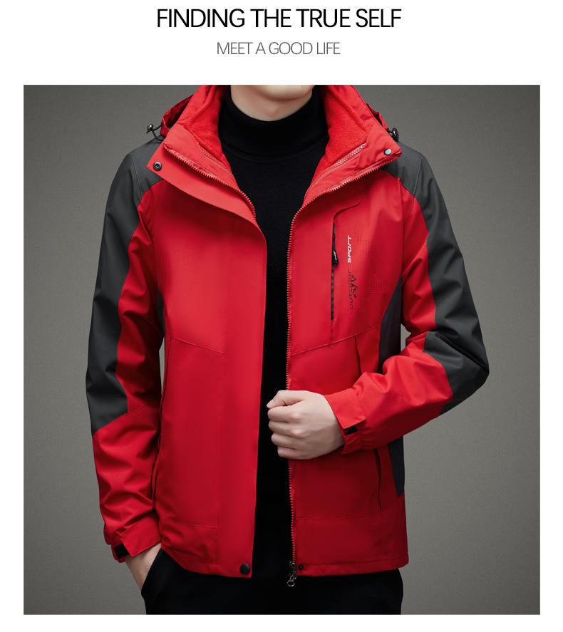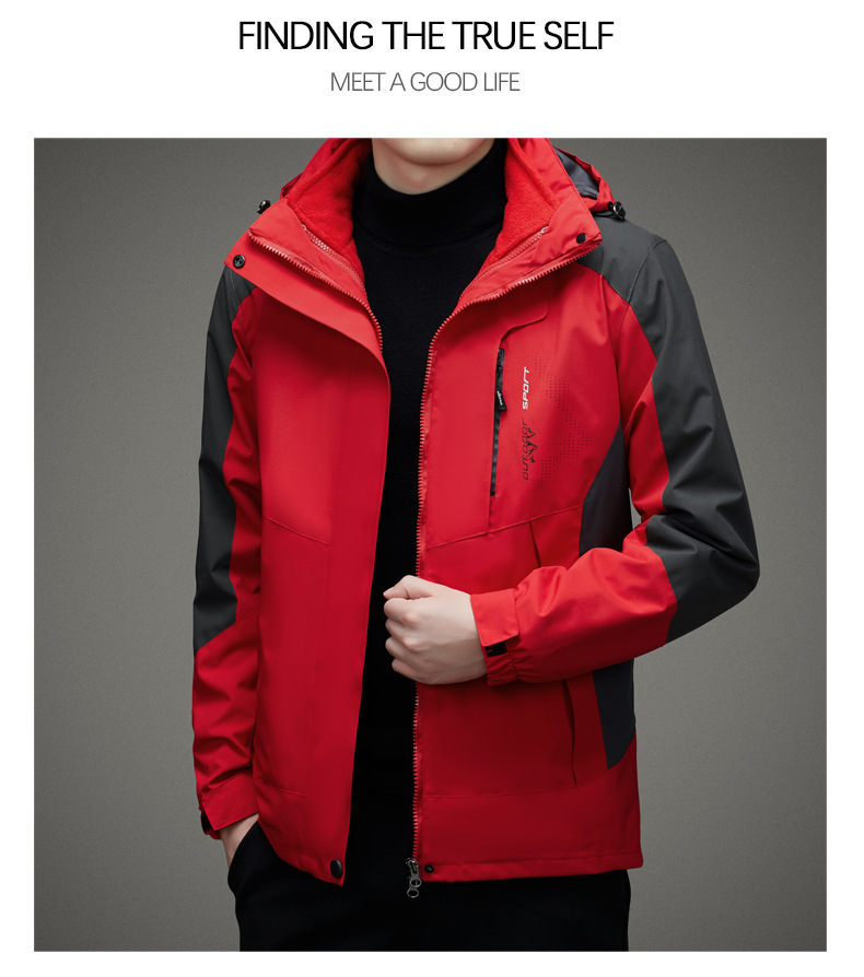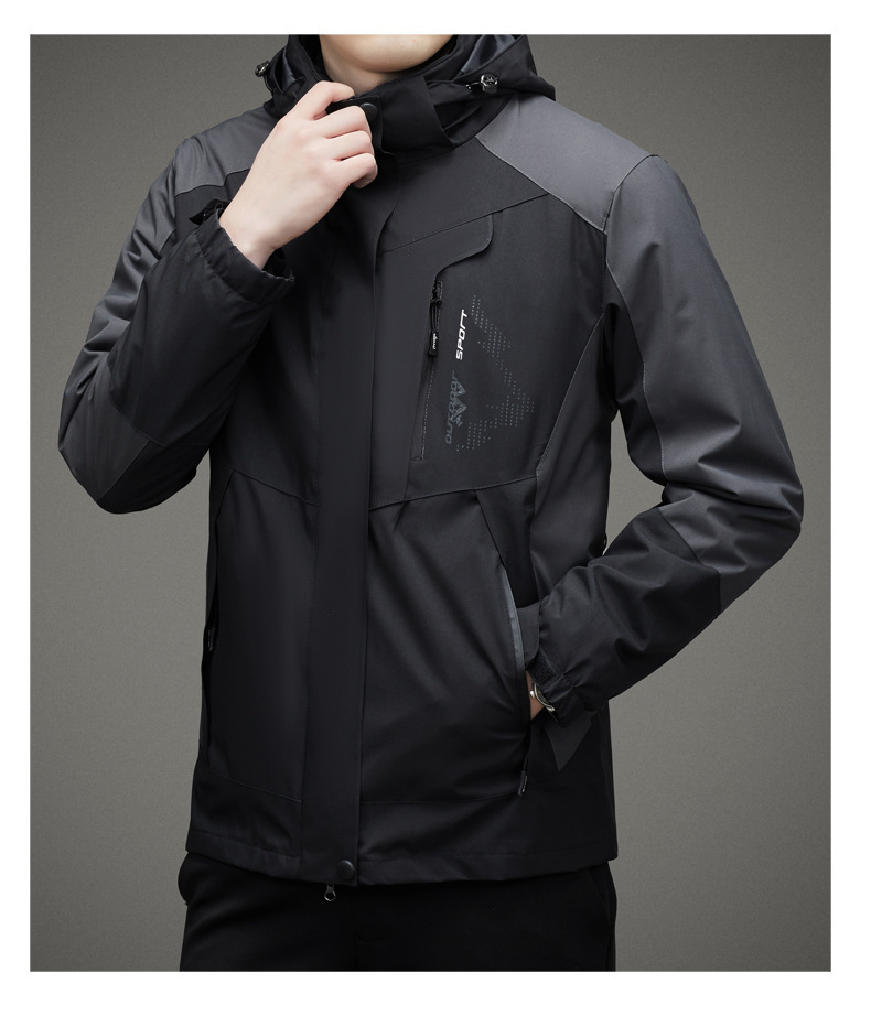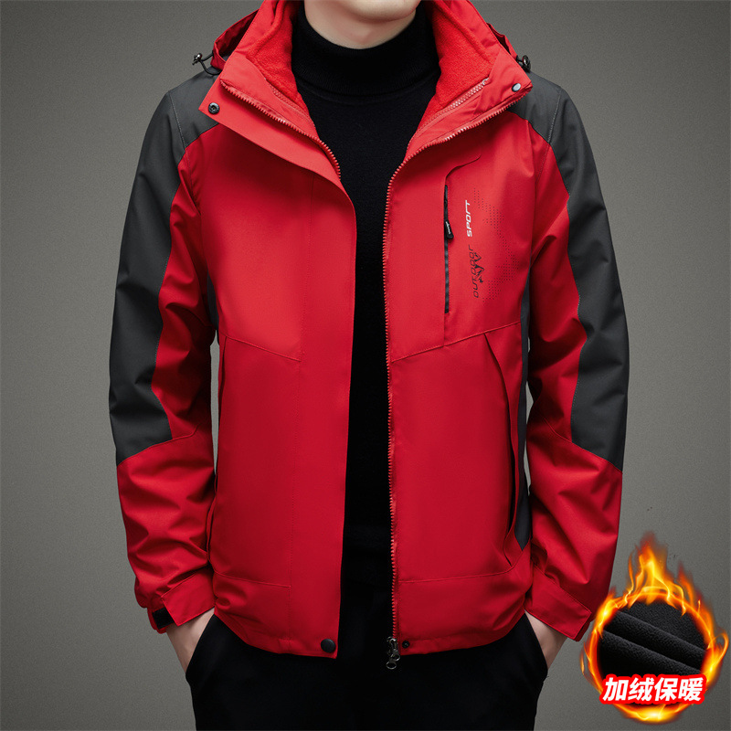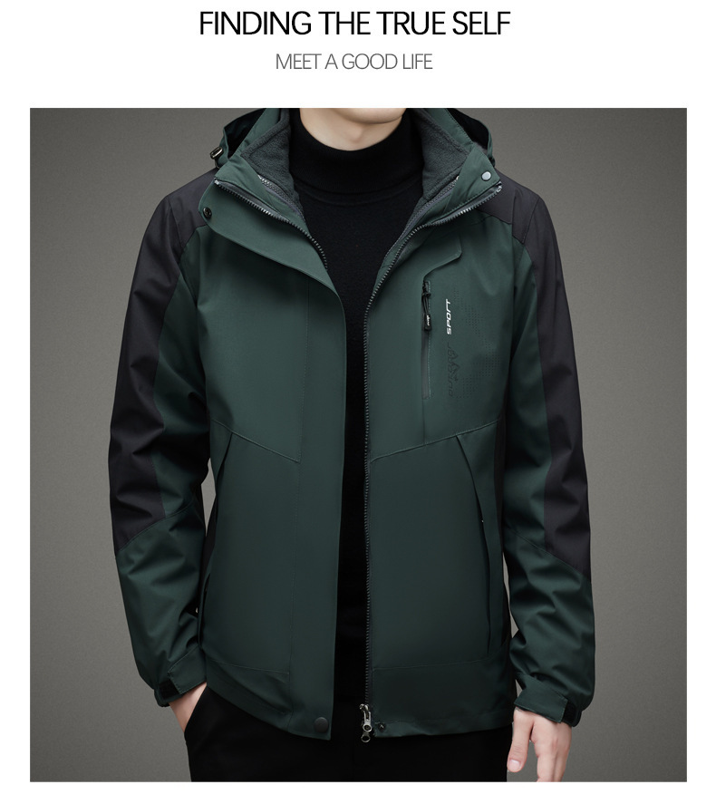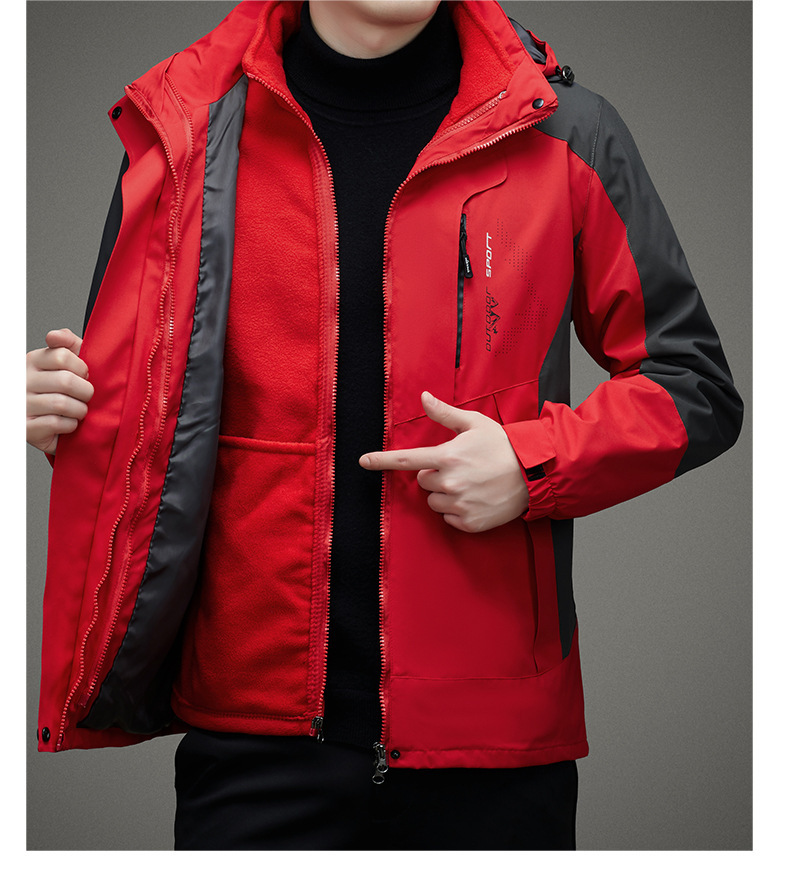 남자 가을과 겨울 새로운 3 대 1 기모 재킷 코트 청소년 캐주얼 야외 후드 스포츠 의류스토어 가기