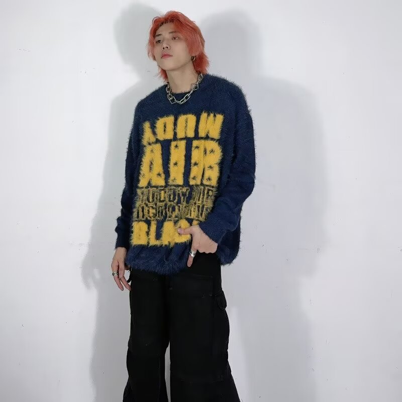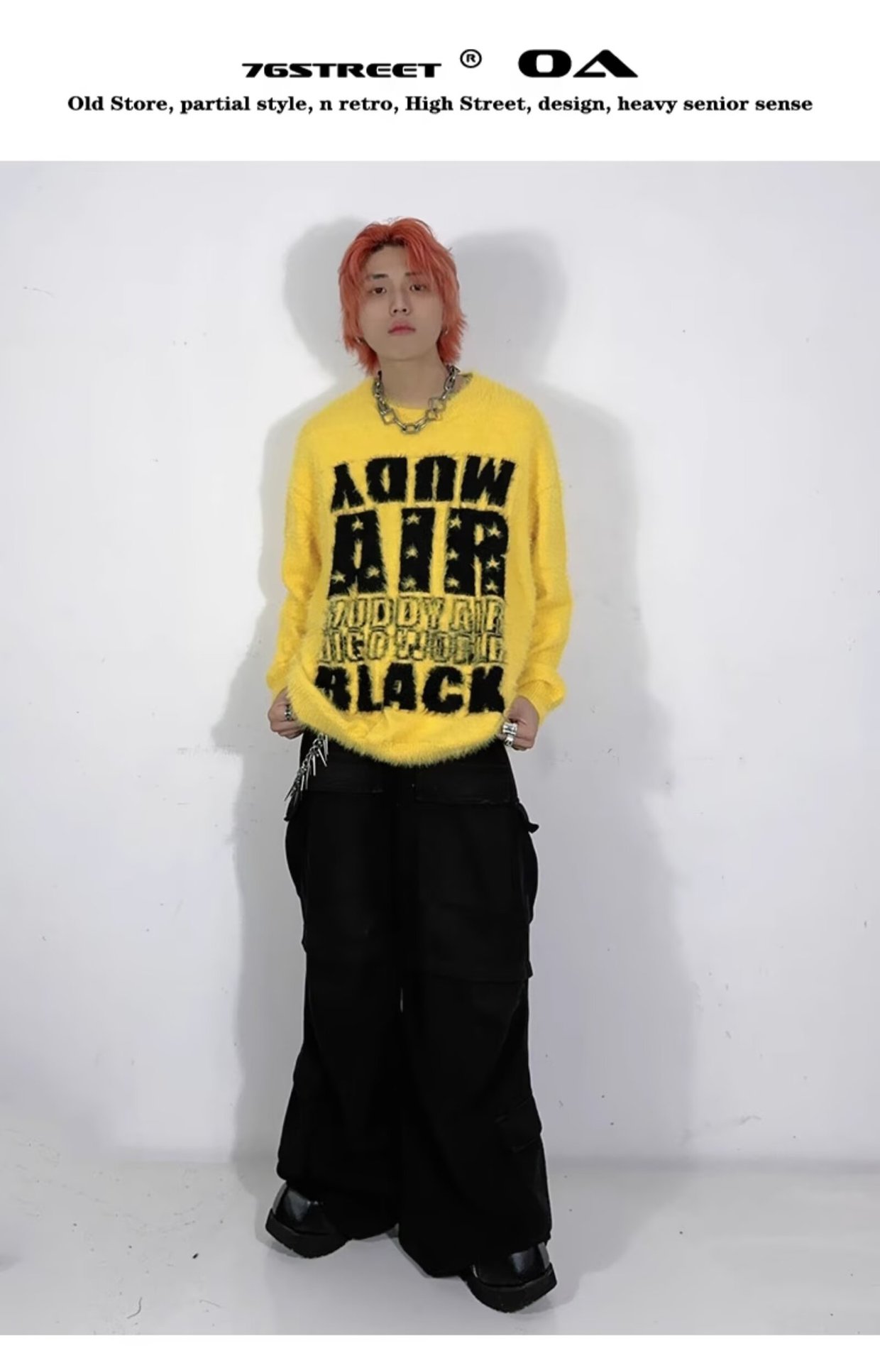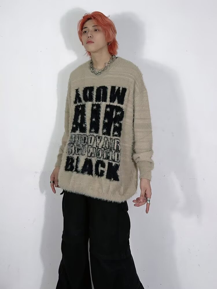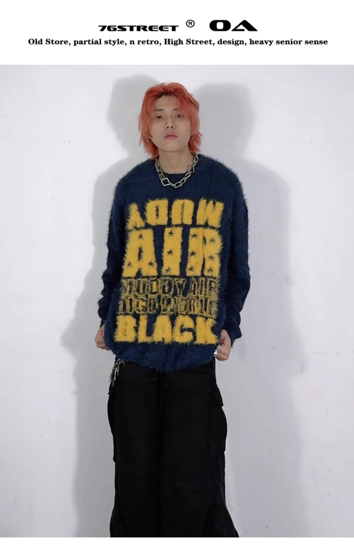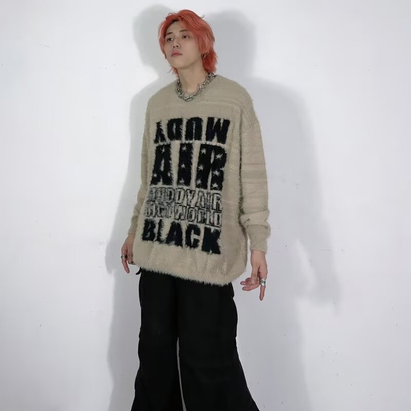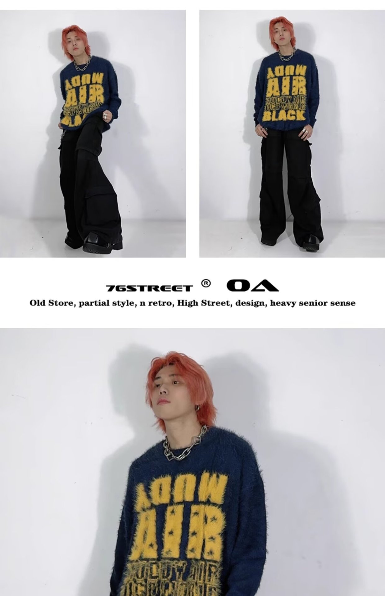 가을과 겨울 자카드 밍크 벨벳 스웨터 남자 크루 넥 풀오버 캐주얼 트렌디 브랜드 학생 학술 스타일 따뜻한 복고풍 스웨터스토어 가기